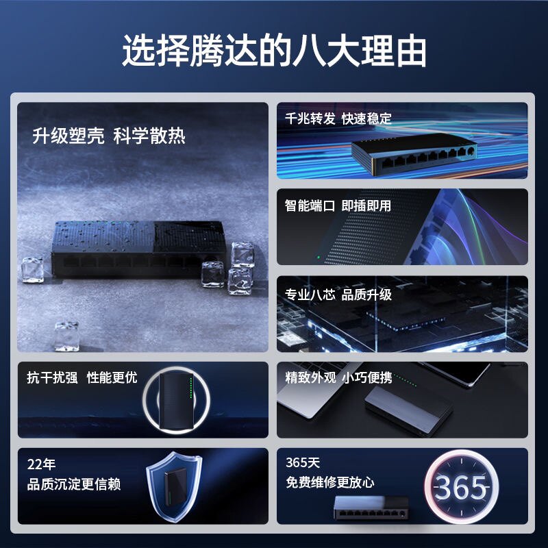 Tenda Gigabit Switch Sg105M Sg108M Eight-Port Gigabit Switch Network Hub Stable and High-Speed
