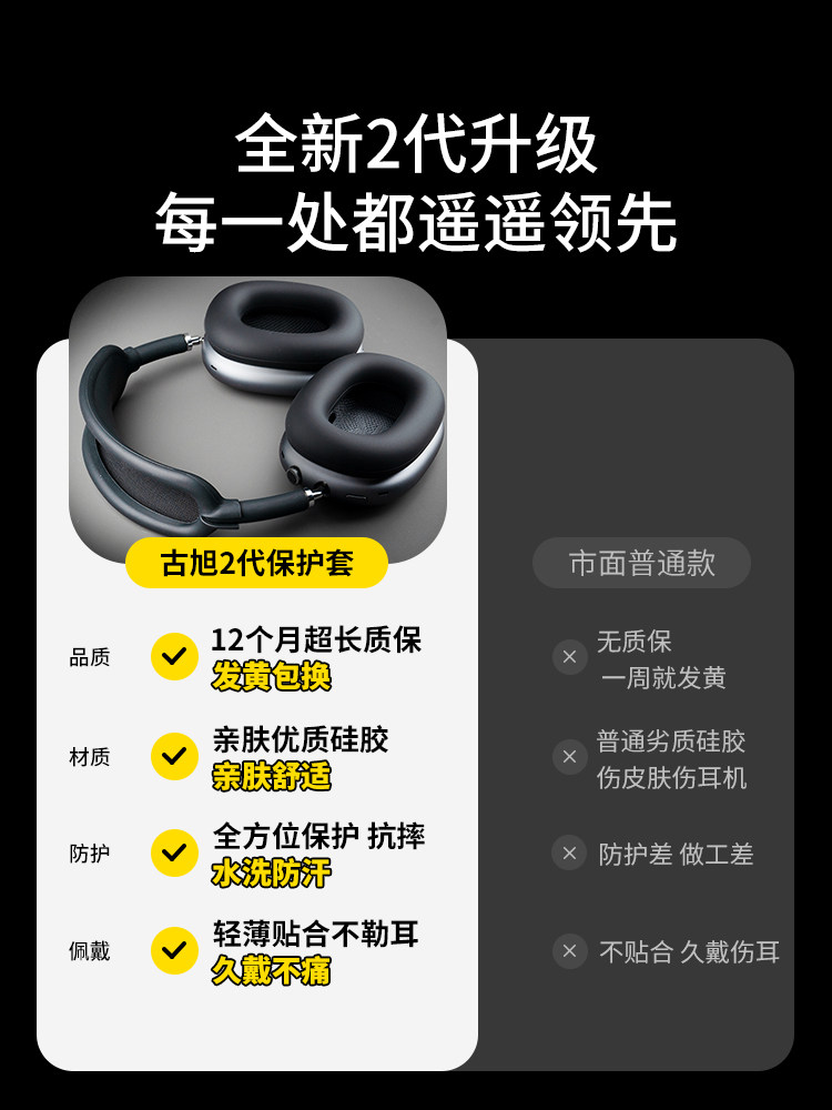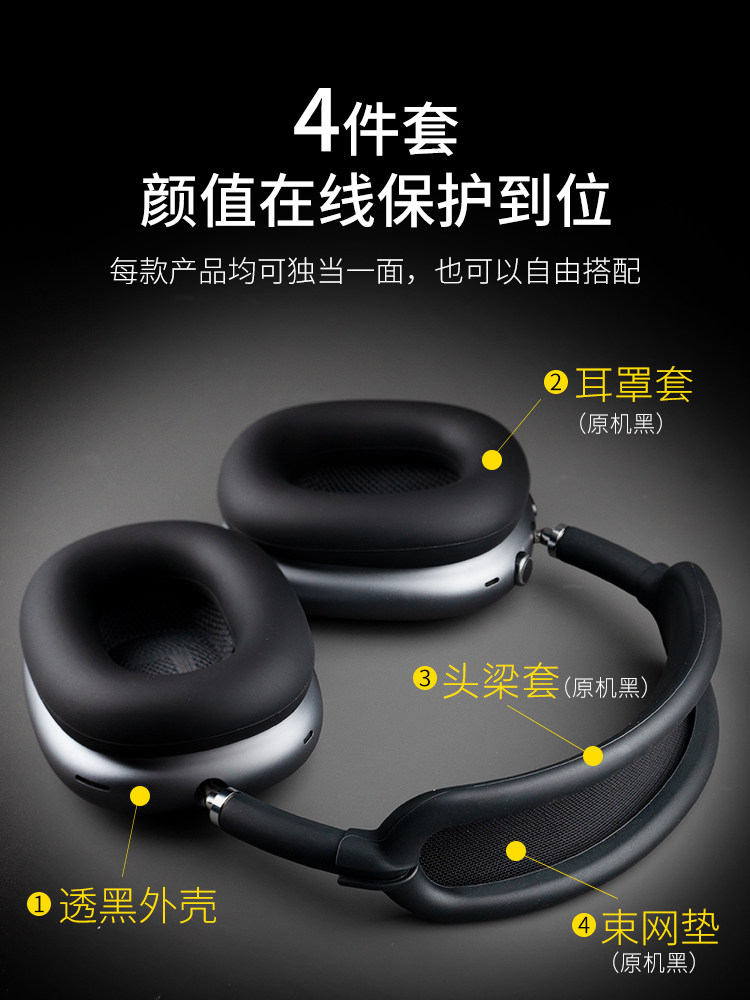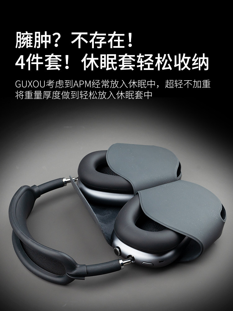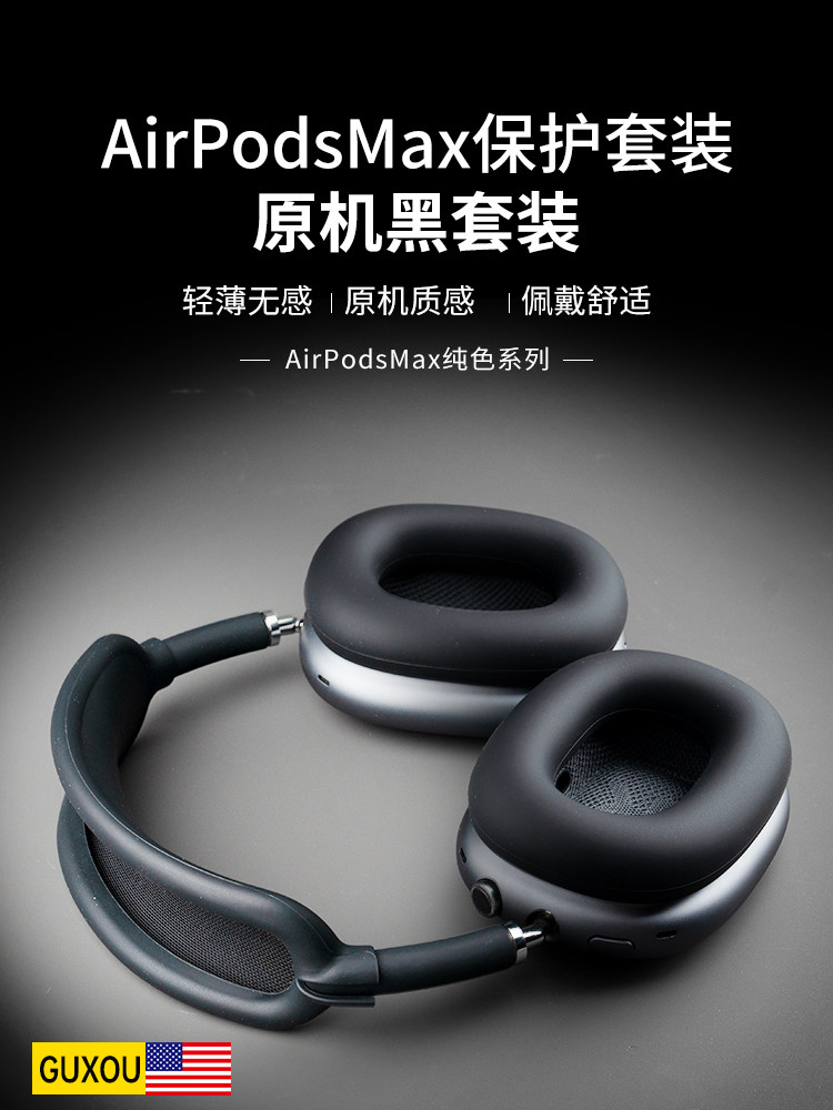 [Guxou New Model]Suitable for AirPods Max Space Gray Black Protective Set Apple Bluetooth Over-Ear Headphones Silicone Headband Apm Midnight Protective Case Max2 Accessories Earpads