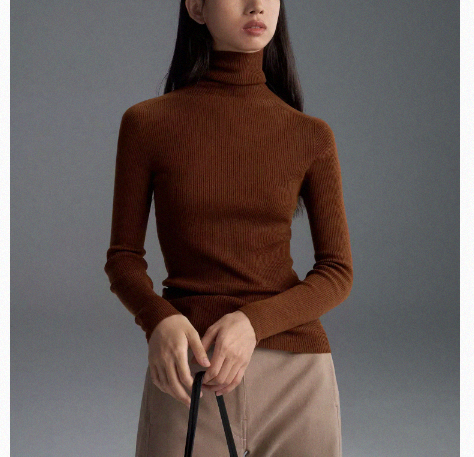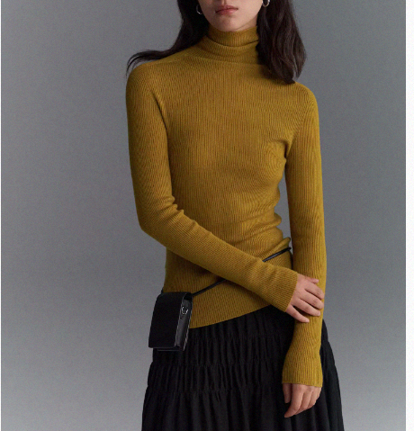 Australian Pure Wool Slim-Fit High-Neck Base Knit Sweater Pink Top for Women Autumn and Winter
