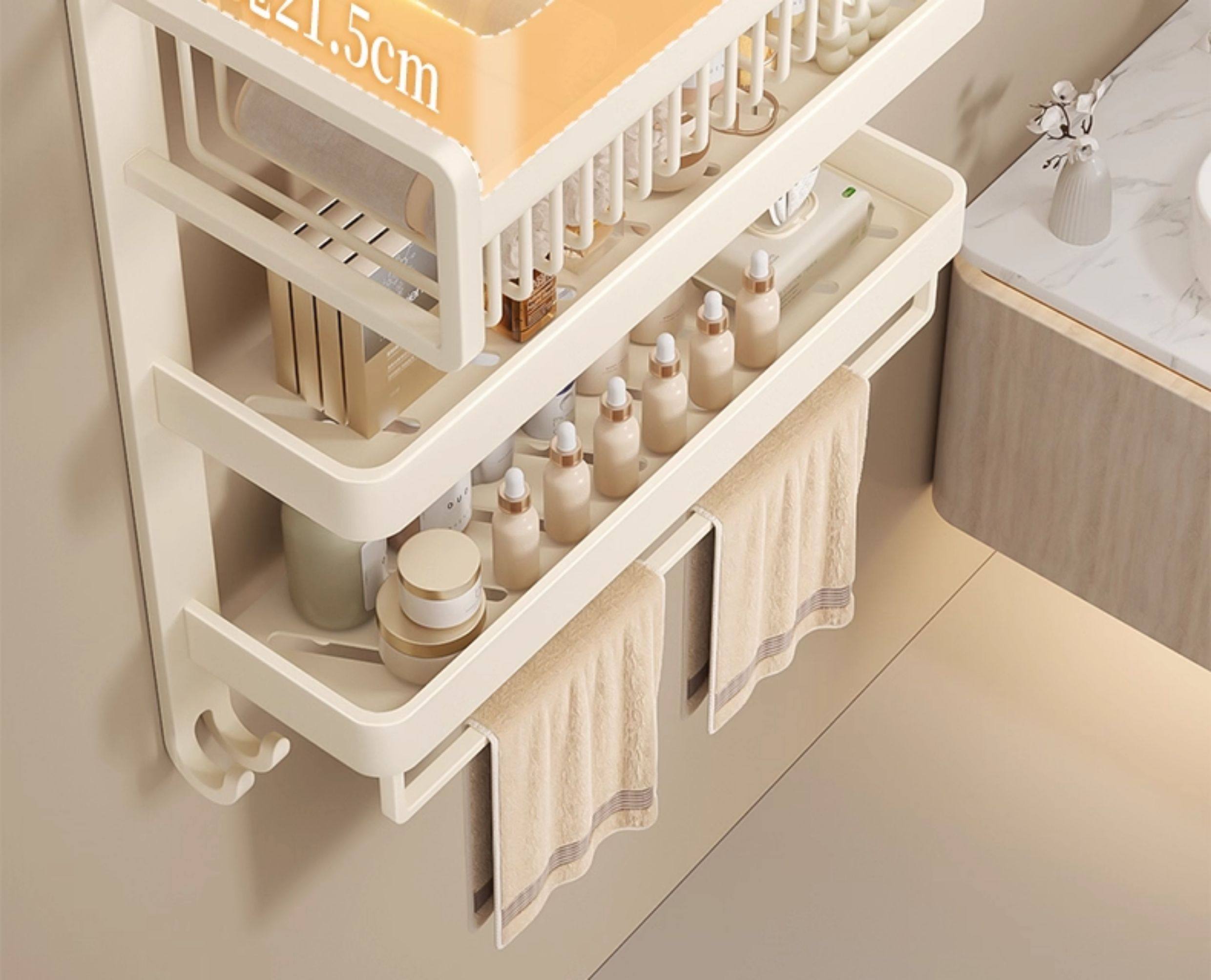 Bathroom Storage Rack and Towel Rack Combo, No-Drill Wall-Mounted, Space Aluminum Cream-Style Bath Towel Rack for Bathroom/Toilet