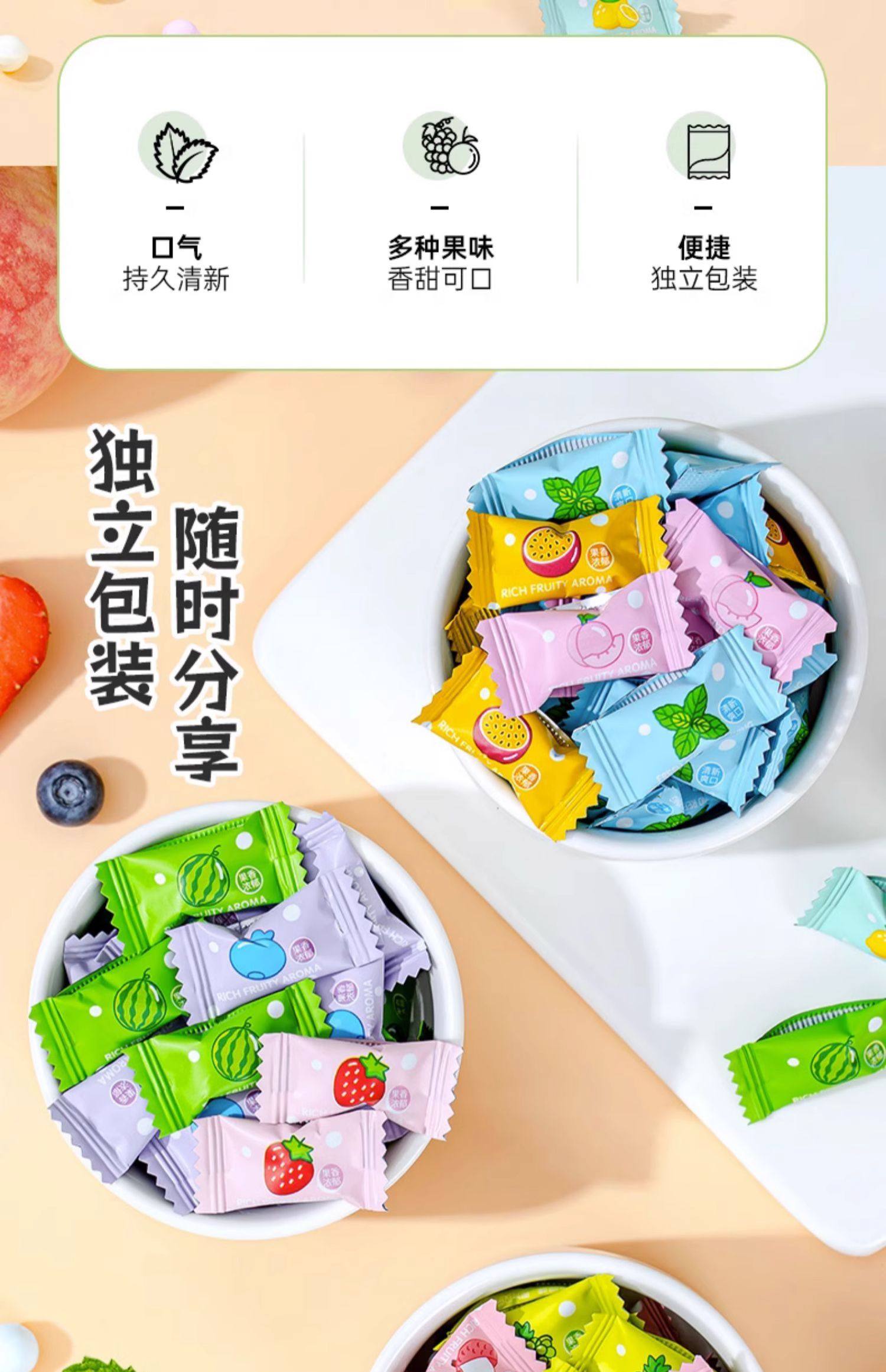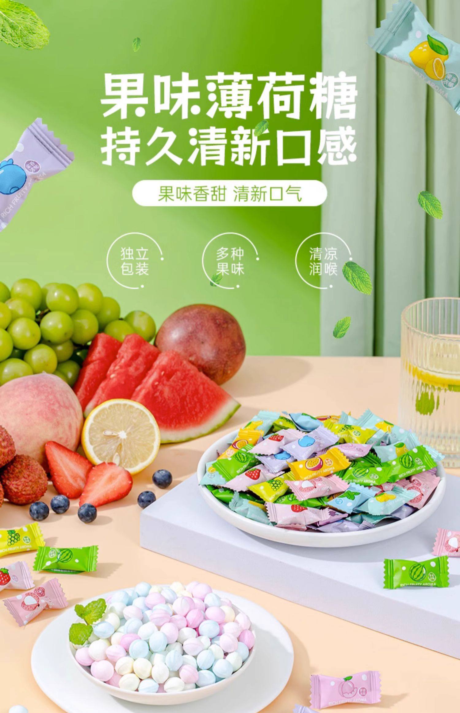 Sugar-Free Mint Candies for Fresh Breath, Refreshing Mint Fruit Flavor, Vitamin C, Commercial Popular Candy, Portable Wholesale