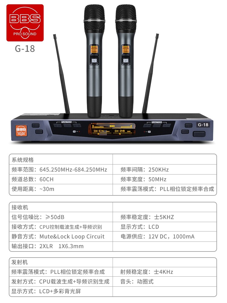 Bbs G18 F80 Vp36 Wireless Microphone Ktv Microphone for Home Karaoke Singing Stage One-To-Two