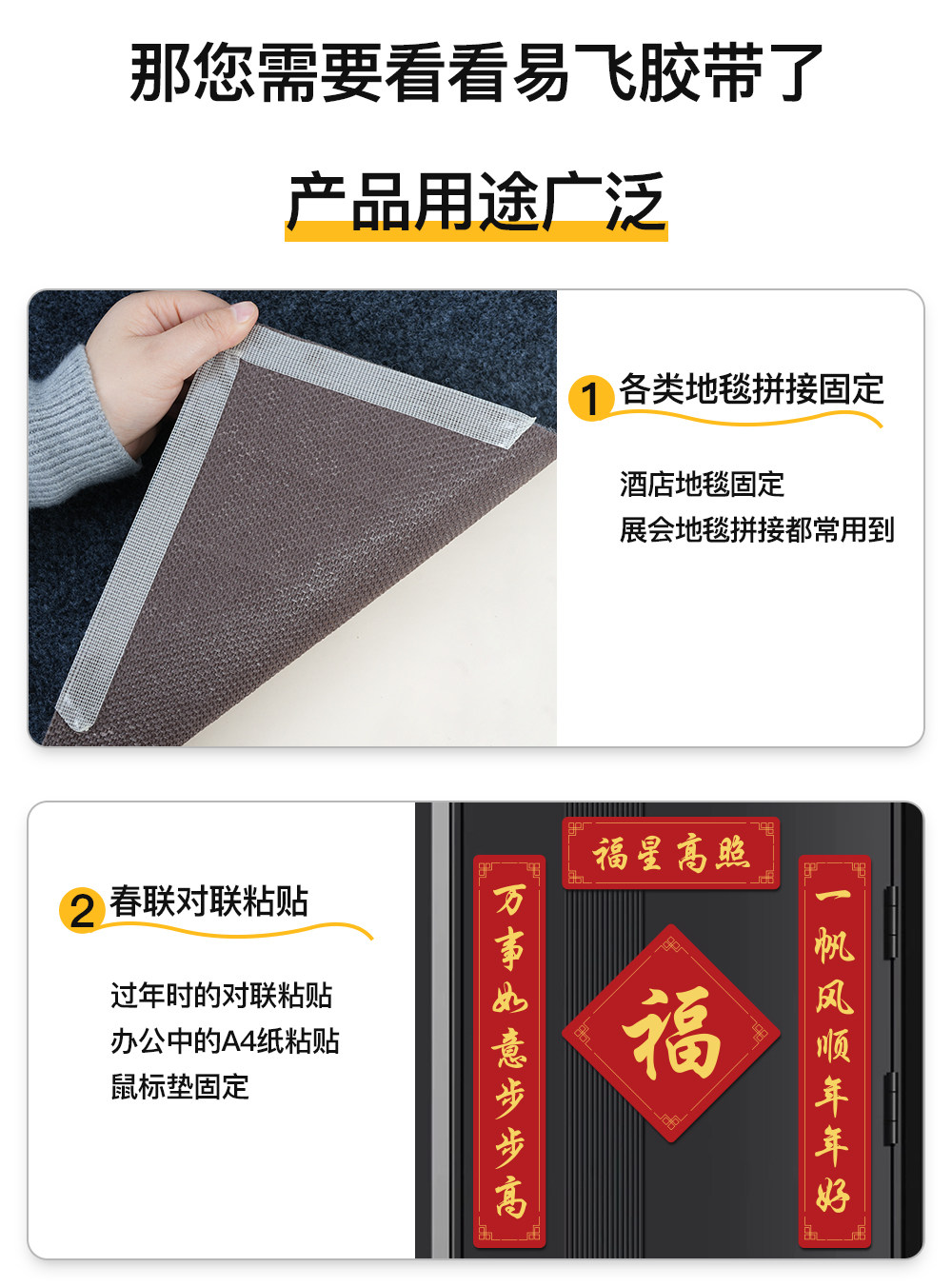 Yifei Double-Sided Adhesive Tape with High Viscosity for Wedding Red Carpet Splicing, Anti-Slip Mat, Floor Leather Fixing, Super Sticky Tape, Wide Double-Sided Waterproof Wallpaper Balloon Strong Grid Double-Sided Adhesive Tape