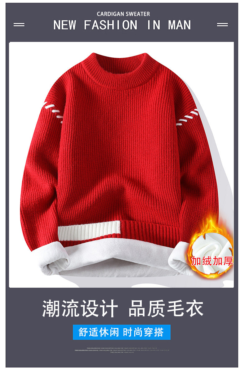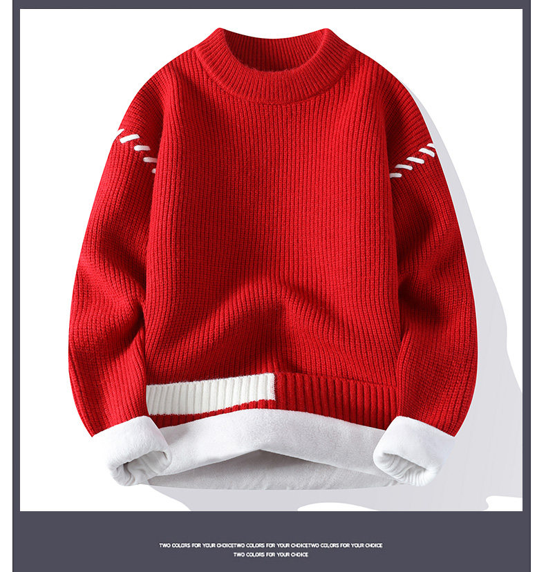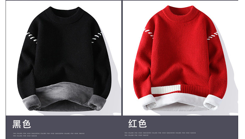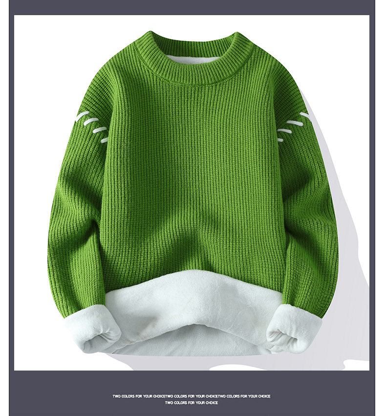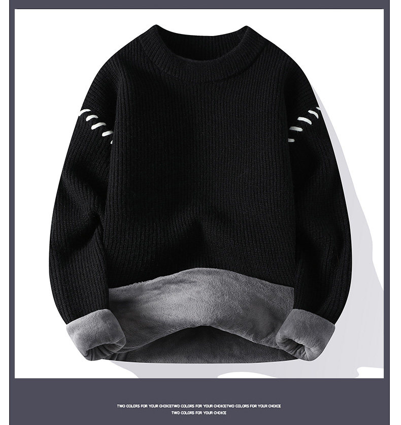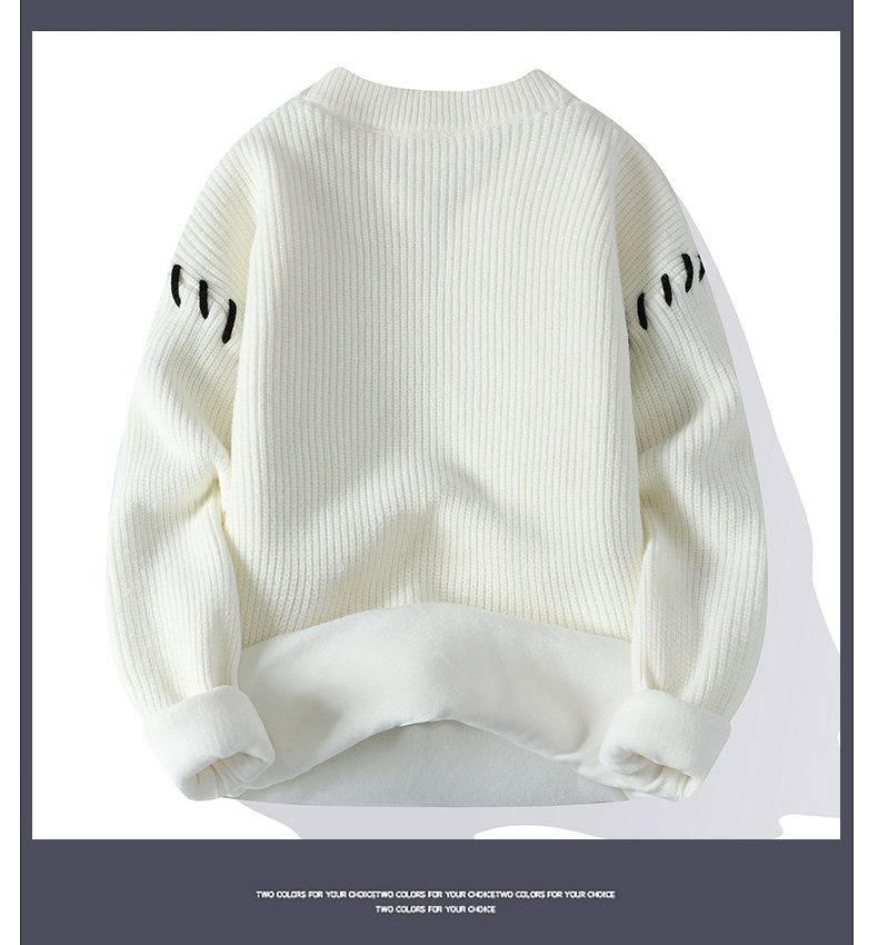 Personalized Patchwork Sweater for Men, Winter Fleece-Lined and Thickened Knit Base Shirt, Cool and Stylish Warm Sweater for Teenagers