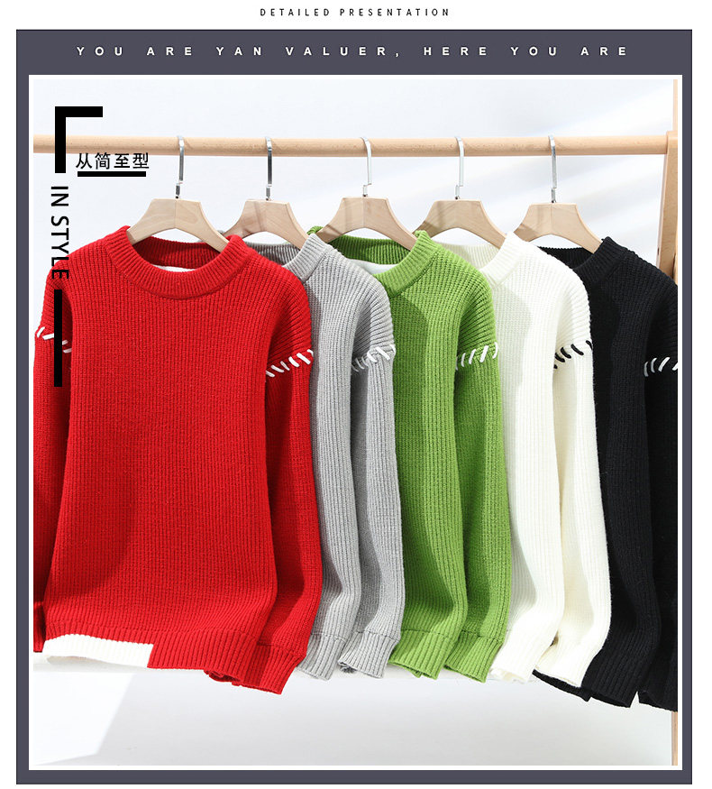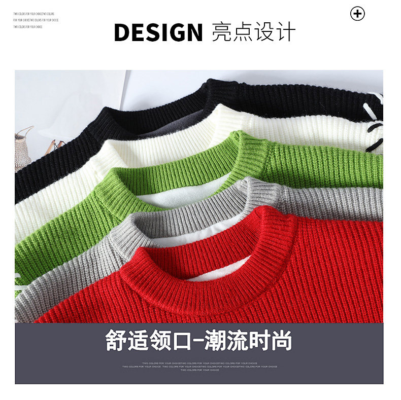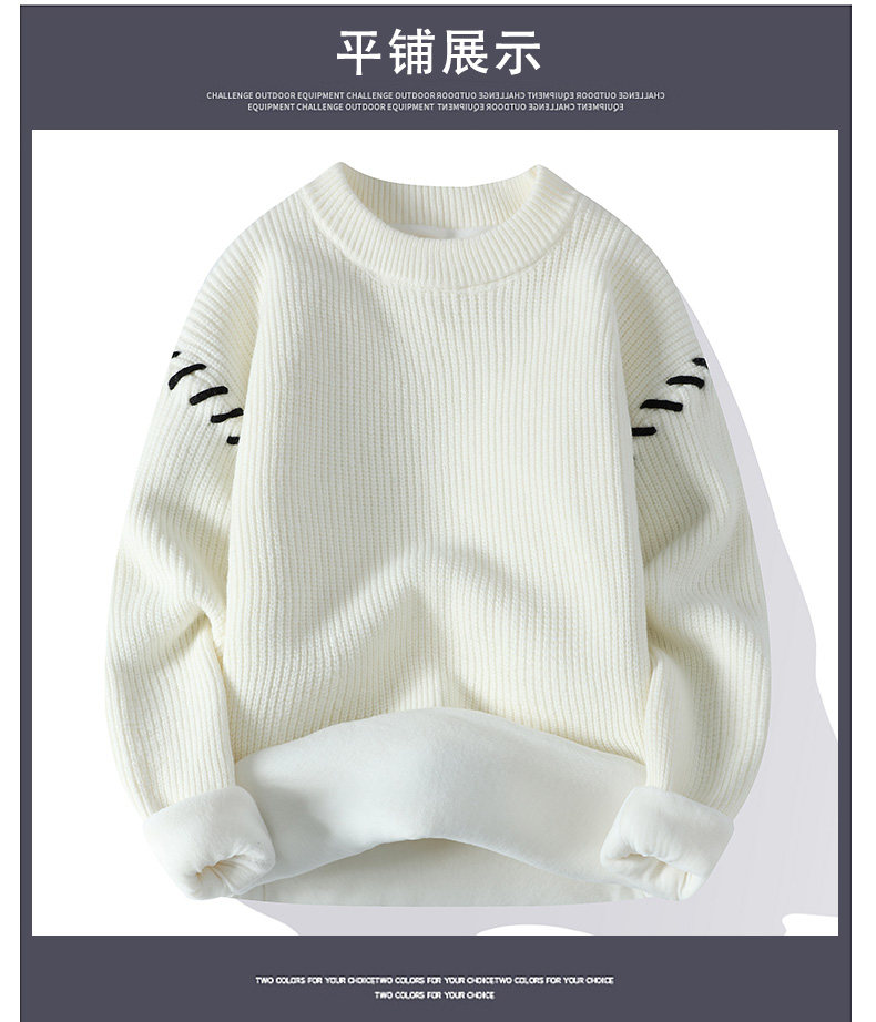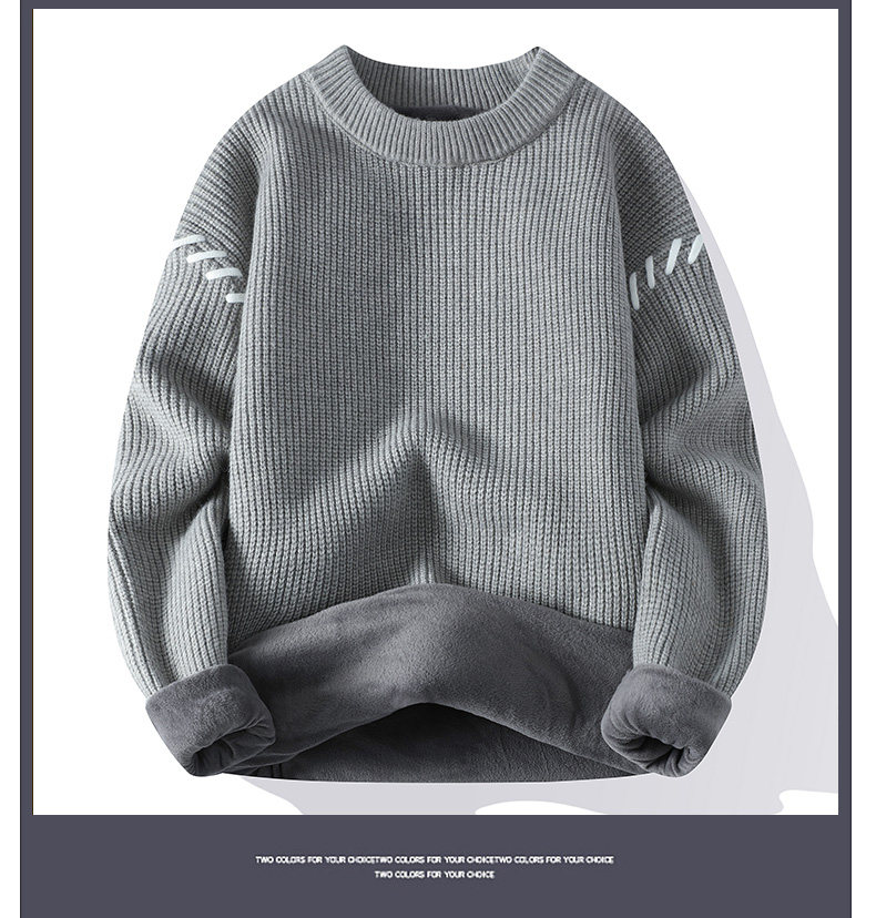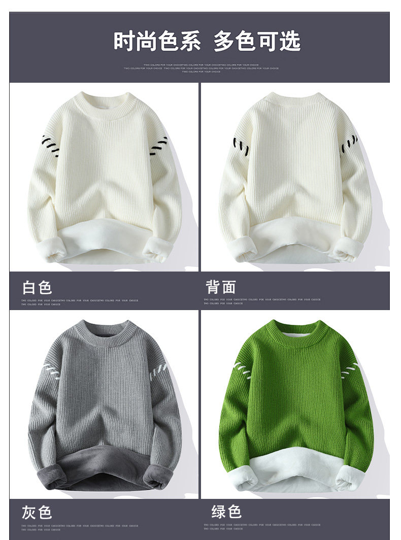 Personalized Patchwork Sweater for Men, Winter Fleece-Lined and Thickened Knit Base Shirt, Cool and Stylish Warm Sweater for Teenagers