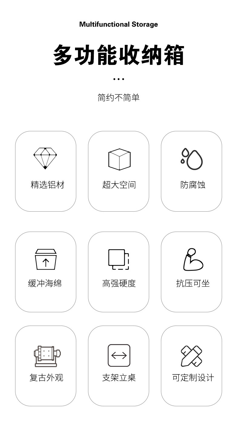 Lubu Outdoor Aluminum-Magnesium Alloy Storage Box Can Stand Upright, Multifunctional Camping Car-Mounted Pressure-Resistant Leather Hand-Held Organizer Box
