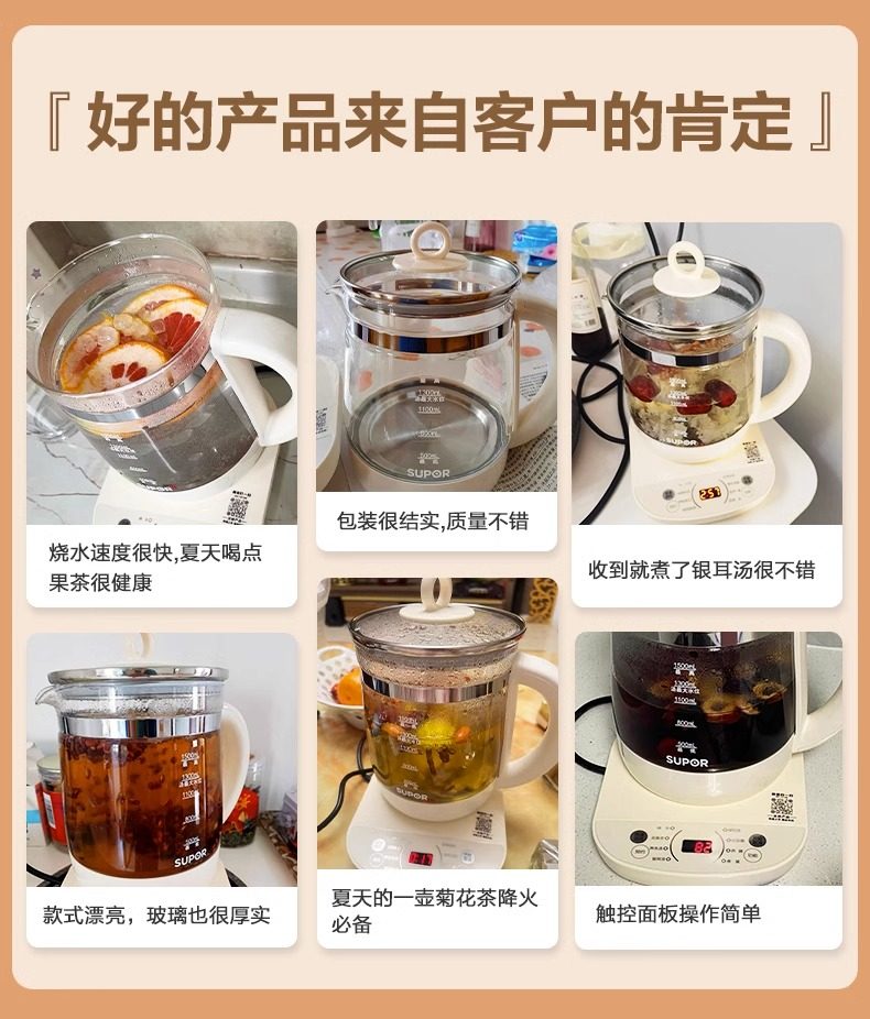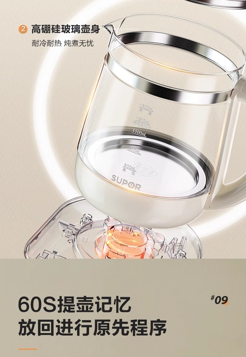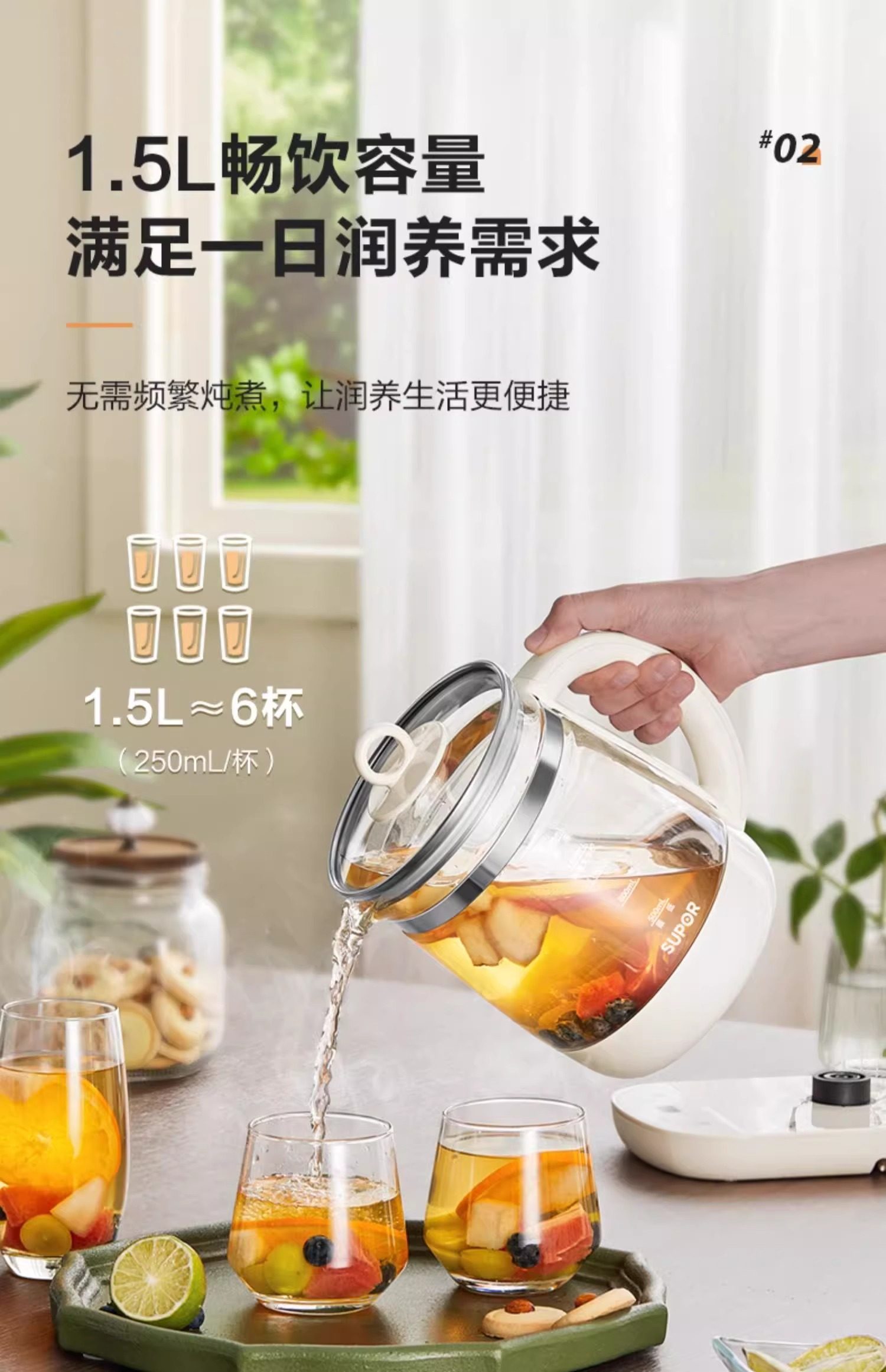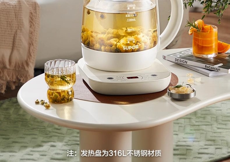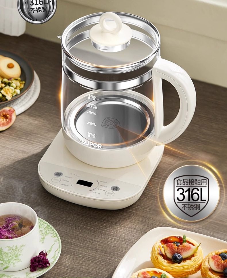Supor Multifunctional Health Pot for Home Use, Glass Decoction and Tea Brewing Kettle, 2023 New Model, Small Office Water Boiling Kettle