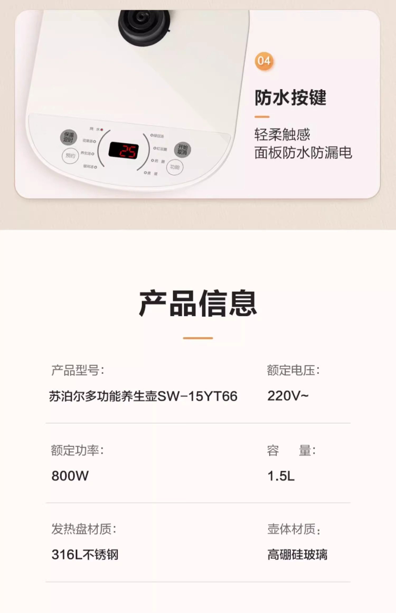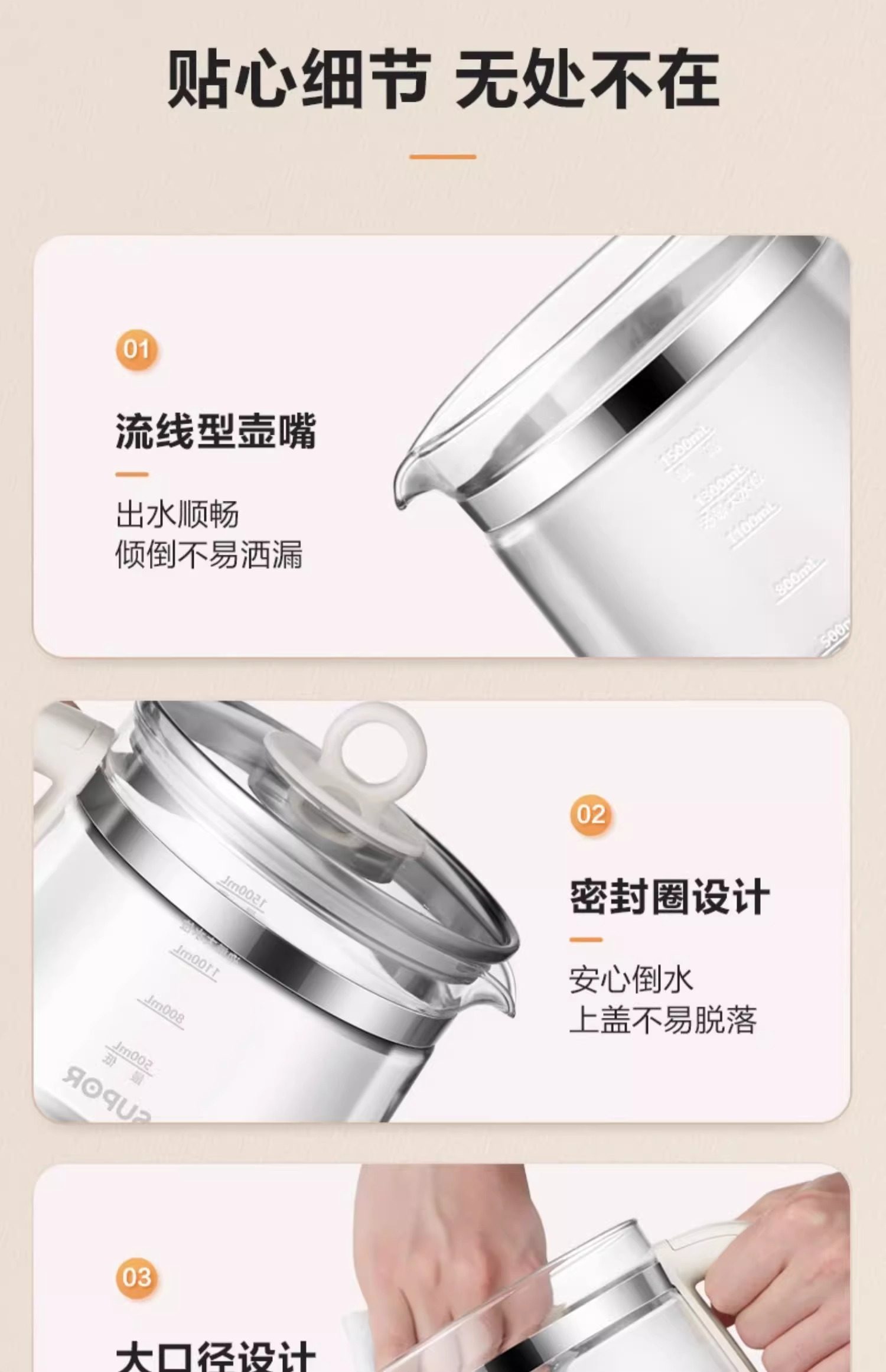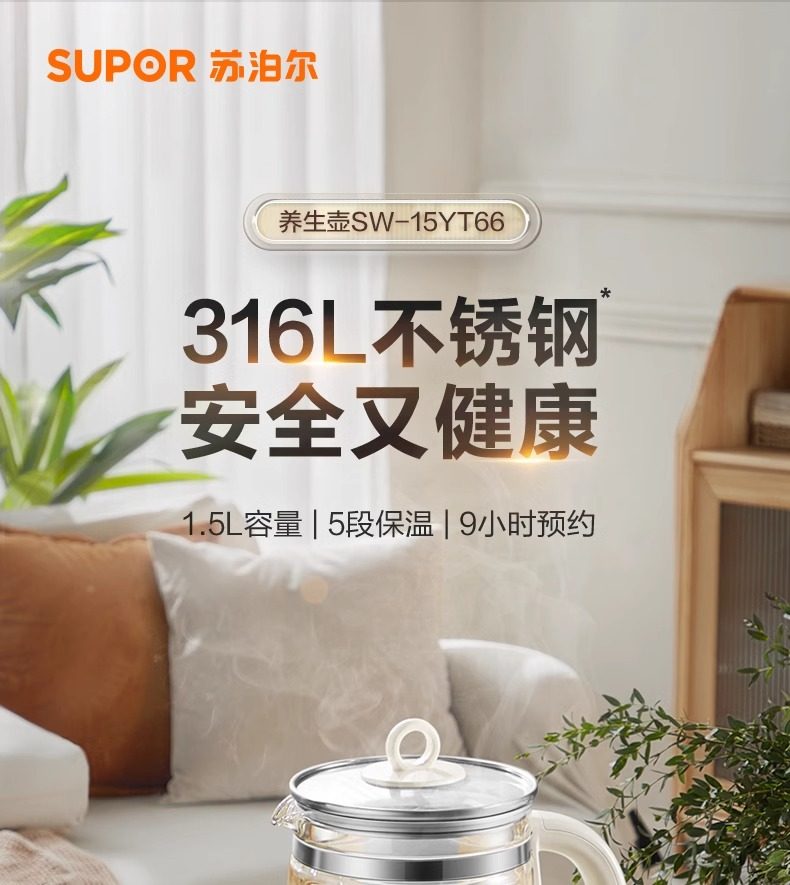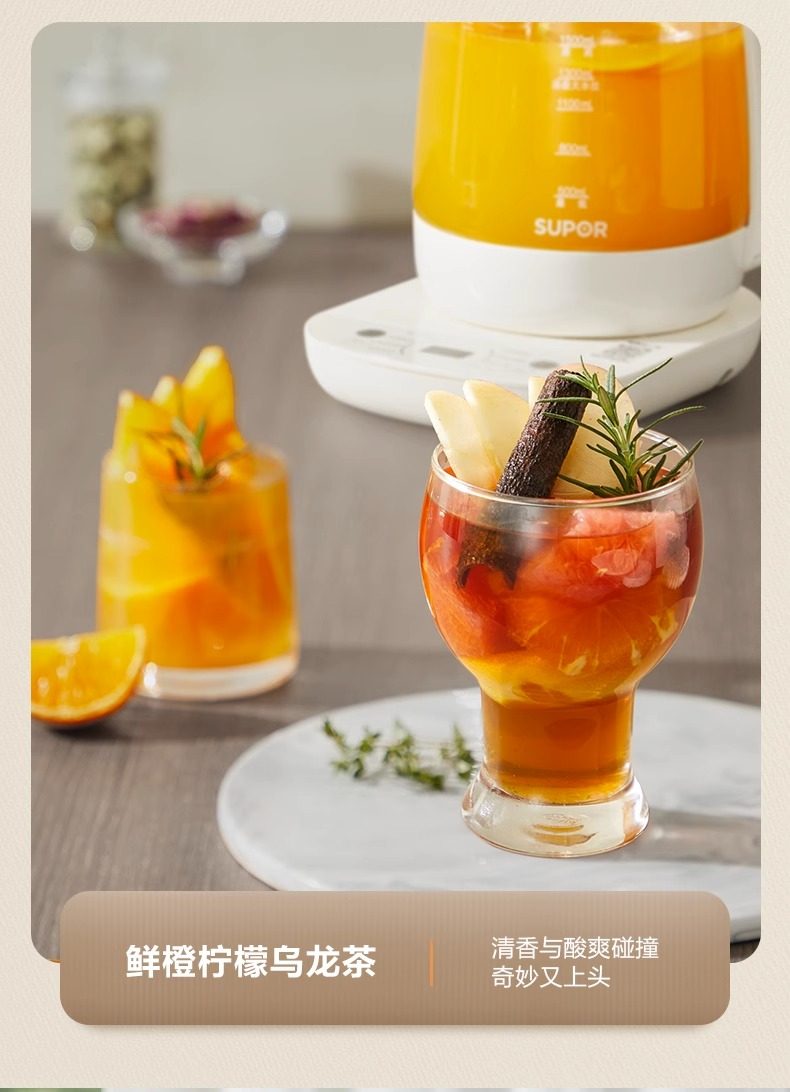 Supor Multifunctional Health Pot for Home Use, Glass Decoction and Tea Brewing Kettle, 2023 New Model, Small Office Water Boiling Kettle