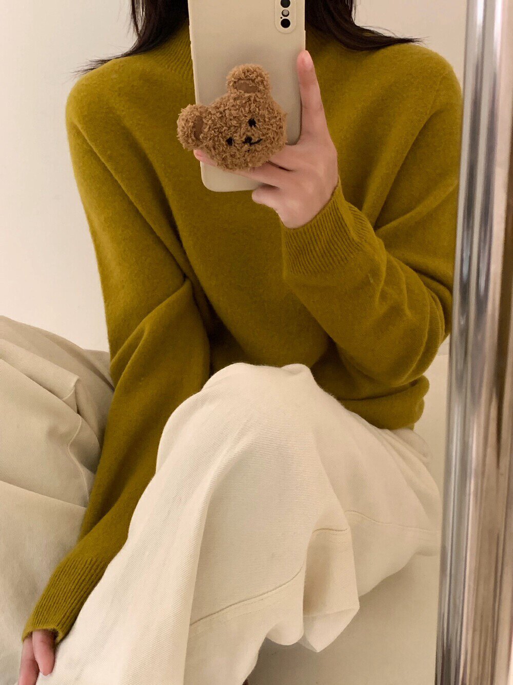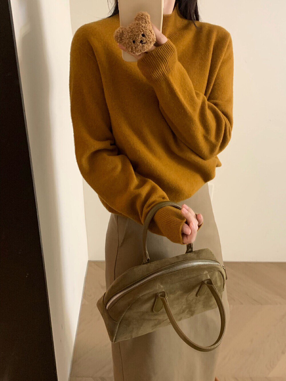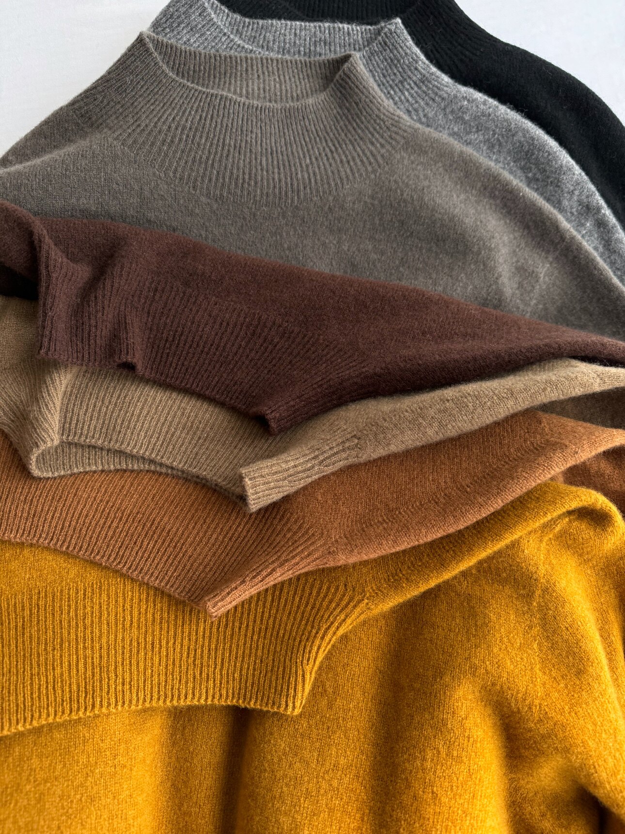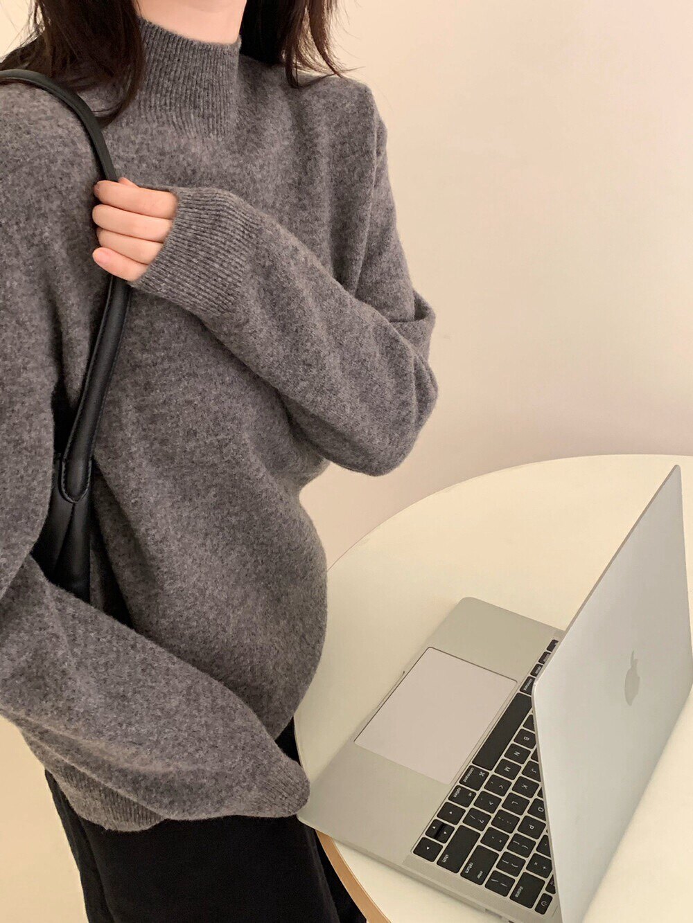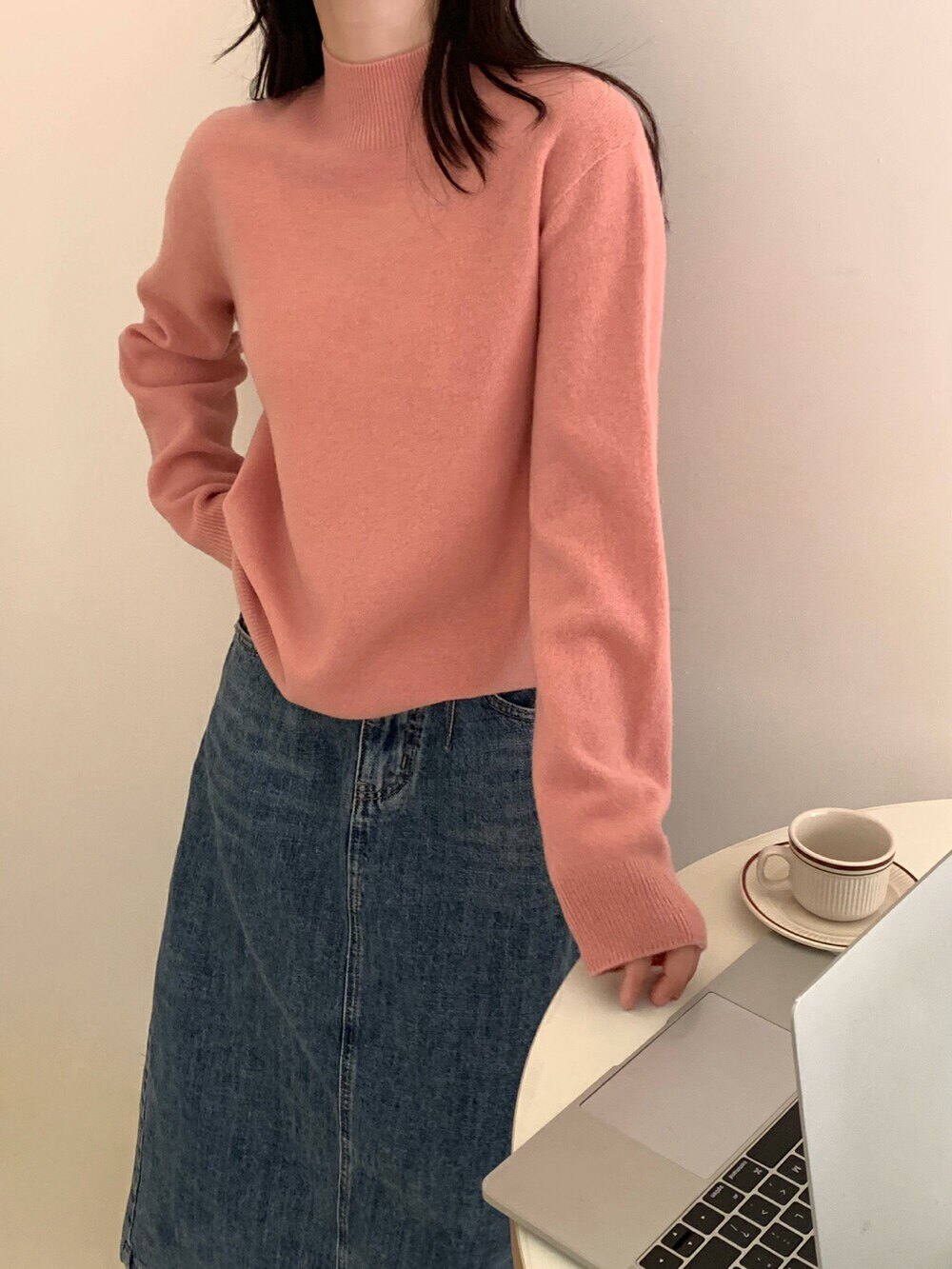 Autumn and Winter New Arrivals, Simple and Versatile Japanese Style Half-High Collar Seamless One-Piece Women's Wool Sweater, Handmade Sweater