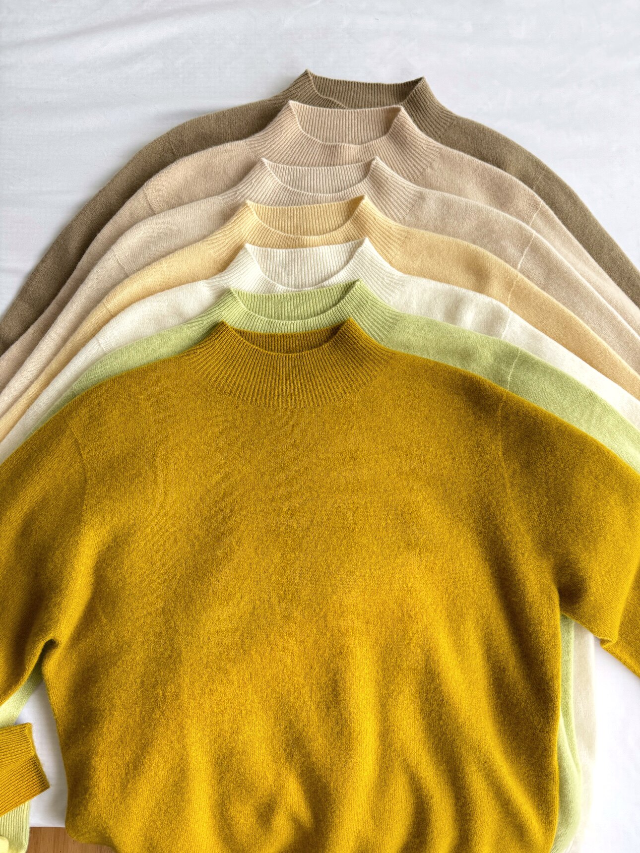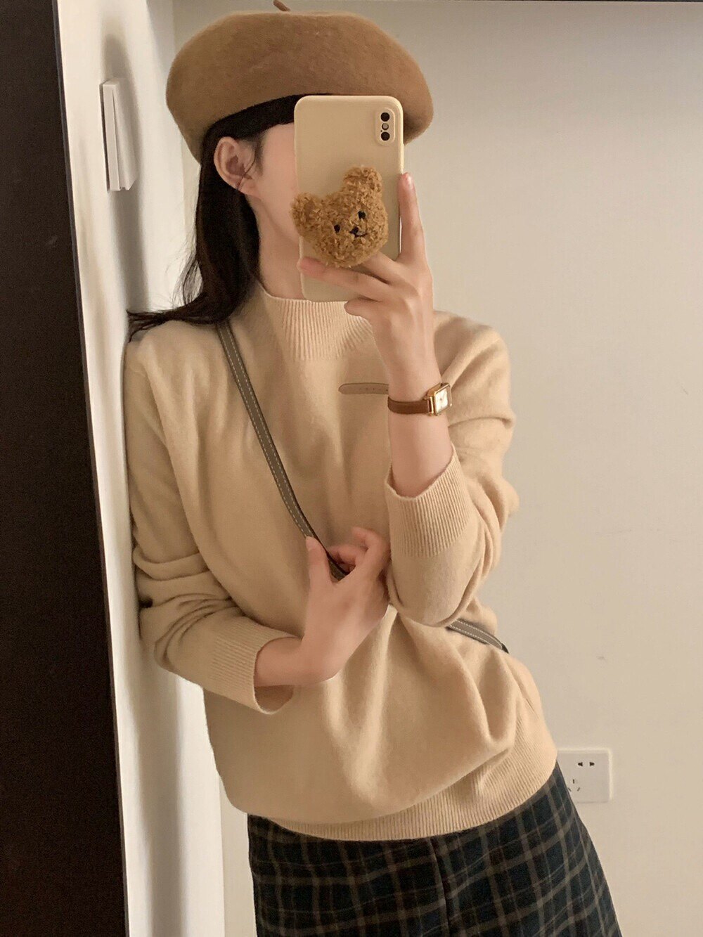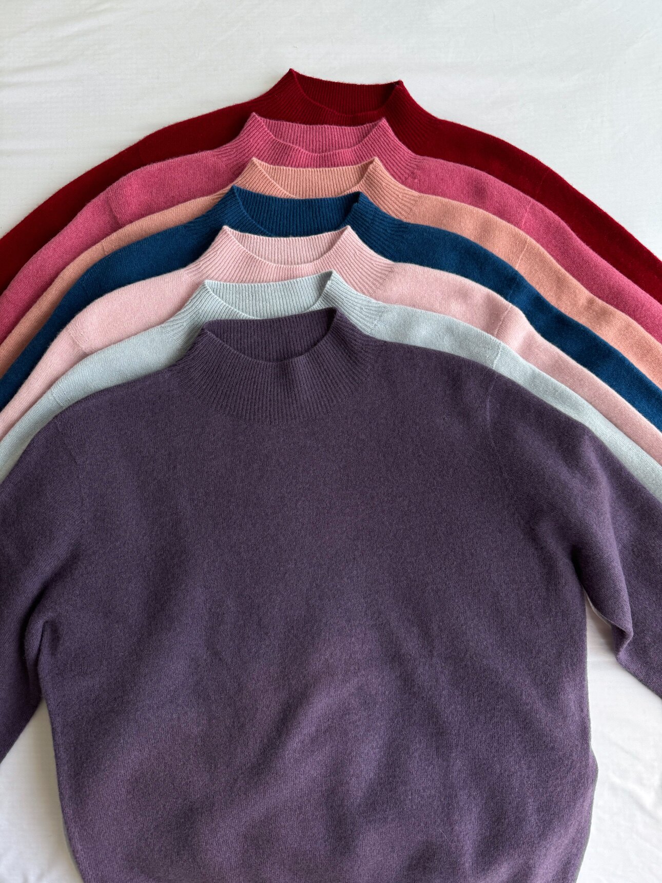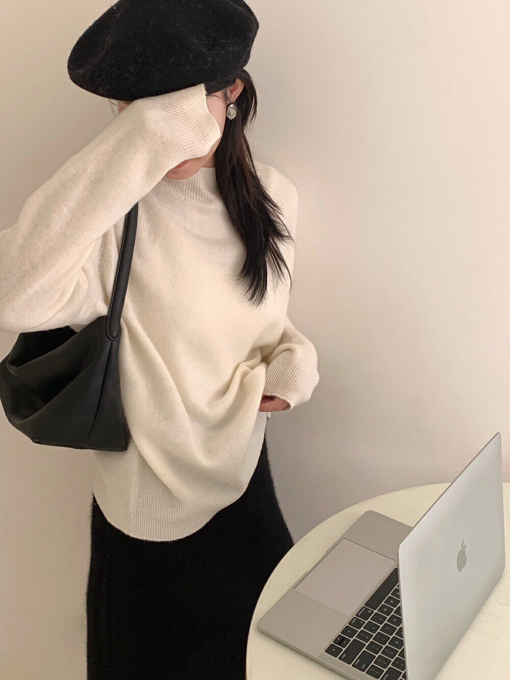 Autumn and Winter New Arrivals, Simple and Versatile Japanese Style Half-High Collar Seamless One-Piece Women's Wool Sweater, Handmade Sweater