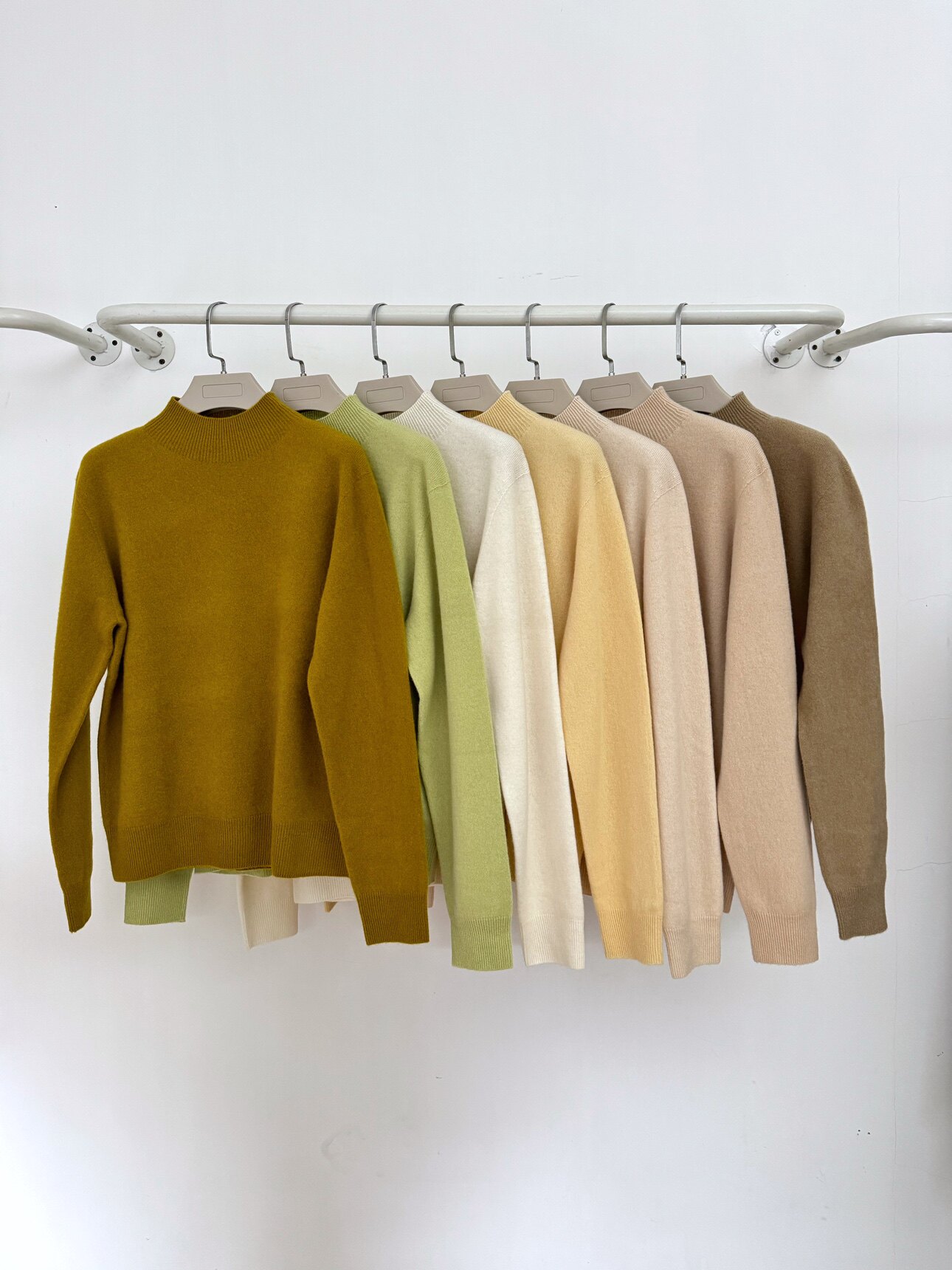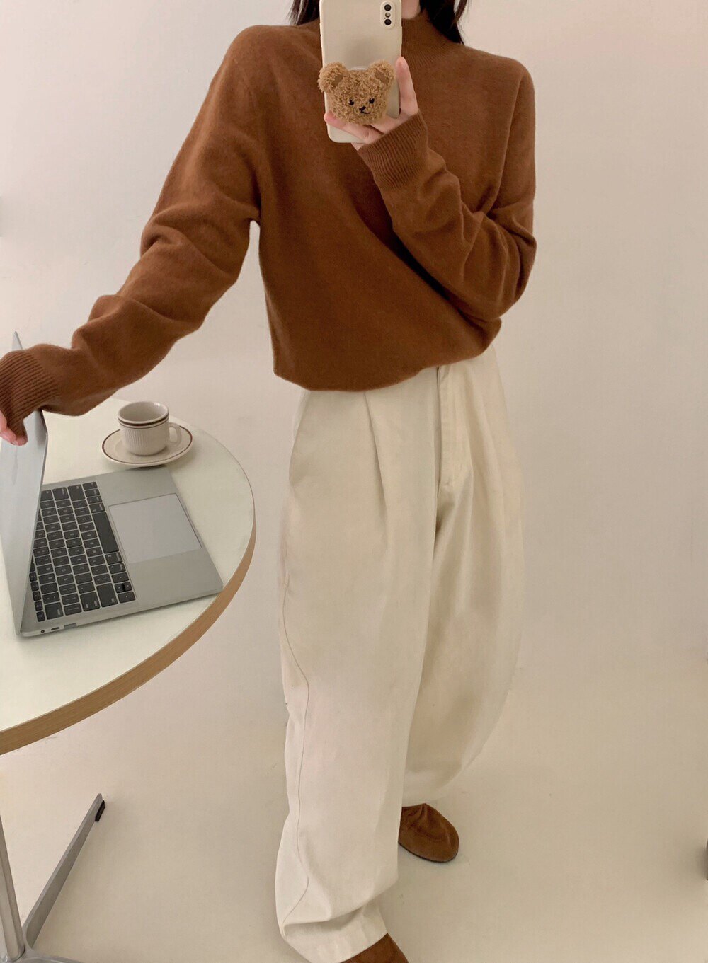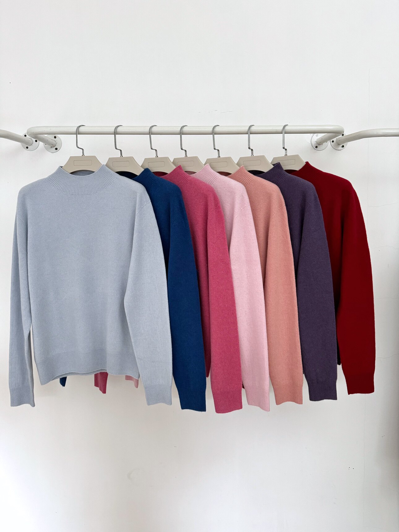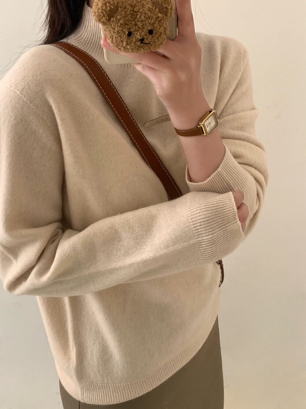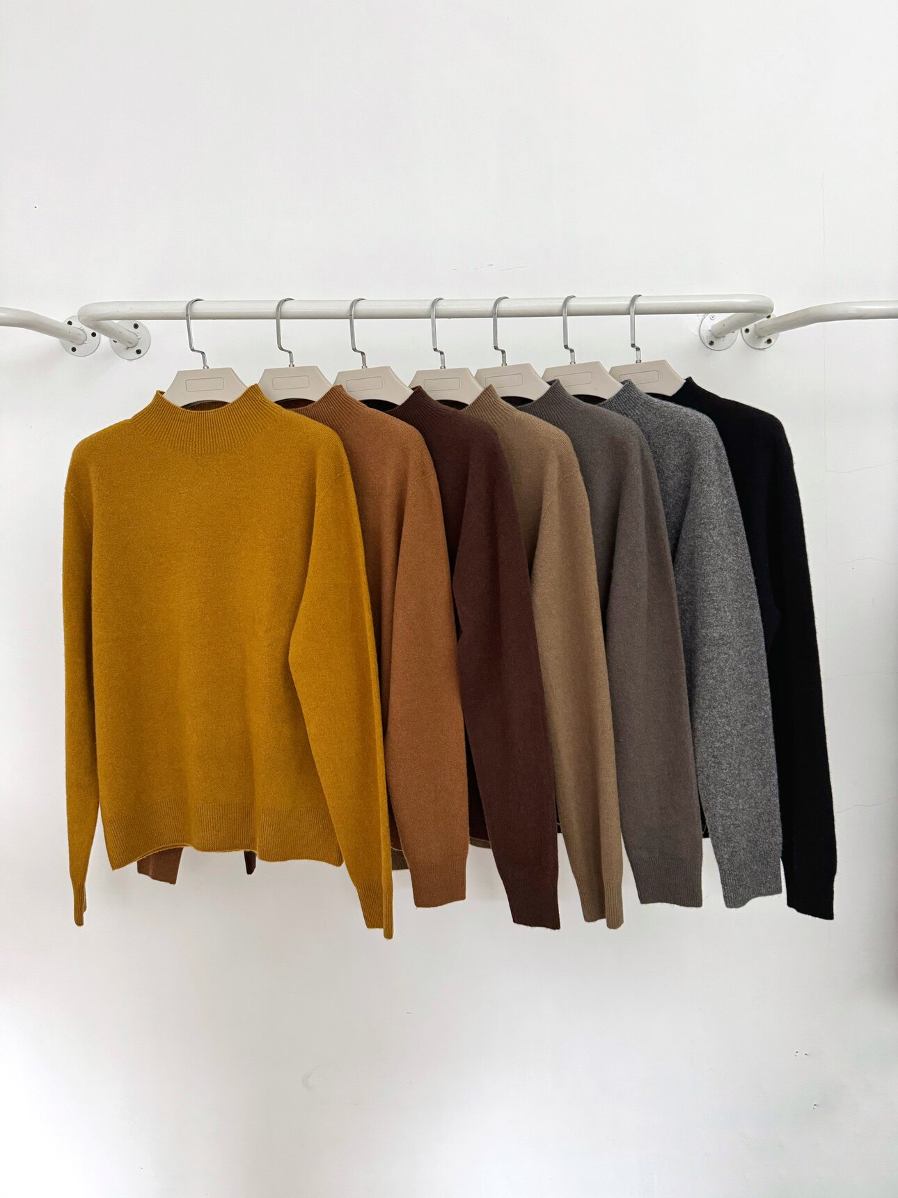 Autumn and Winter New Arrivals, Simple and Versatile Japanese Style Half-High Collar Seamless One-Piece Women's Wool Sweater, Handmade Sweater