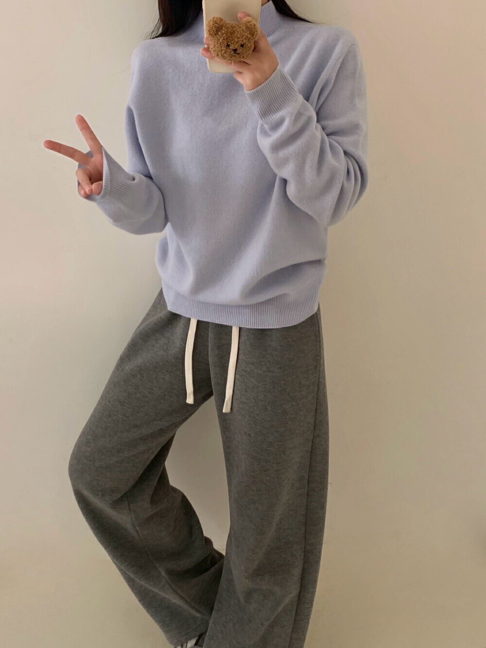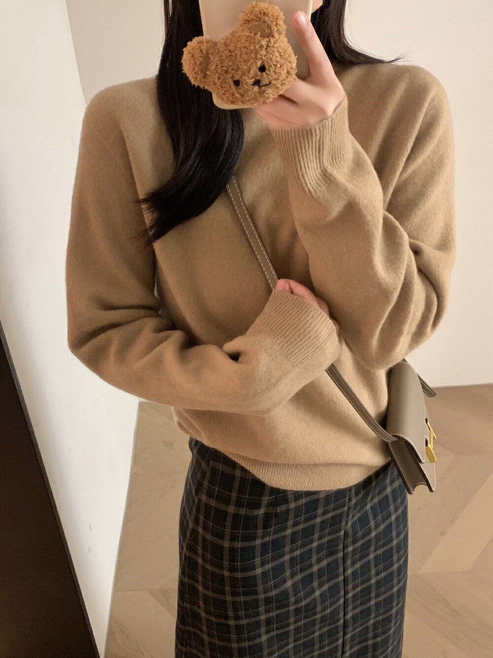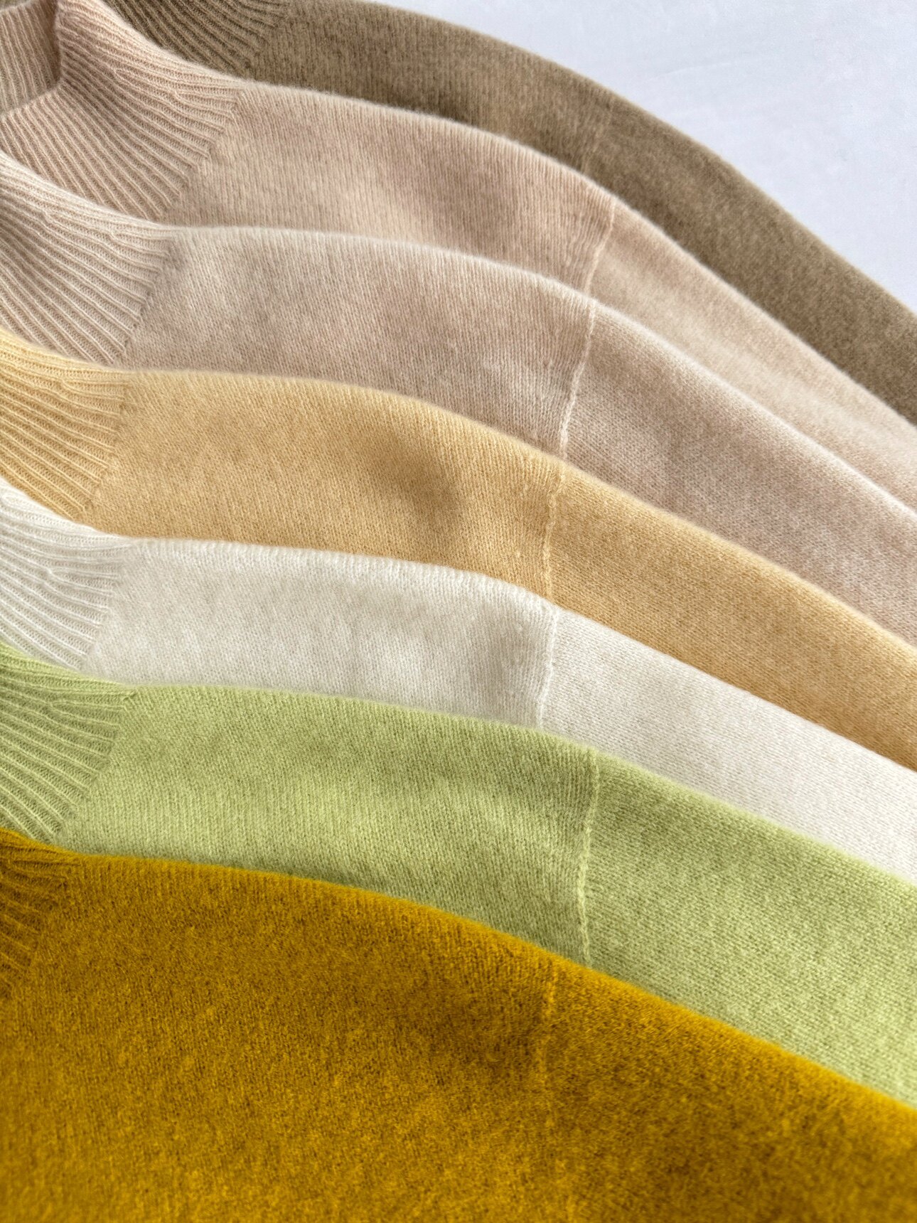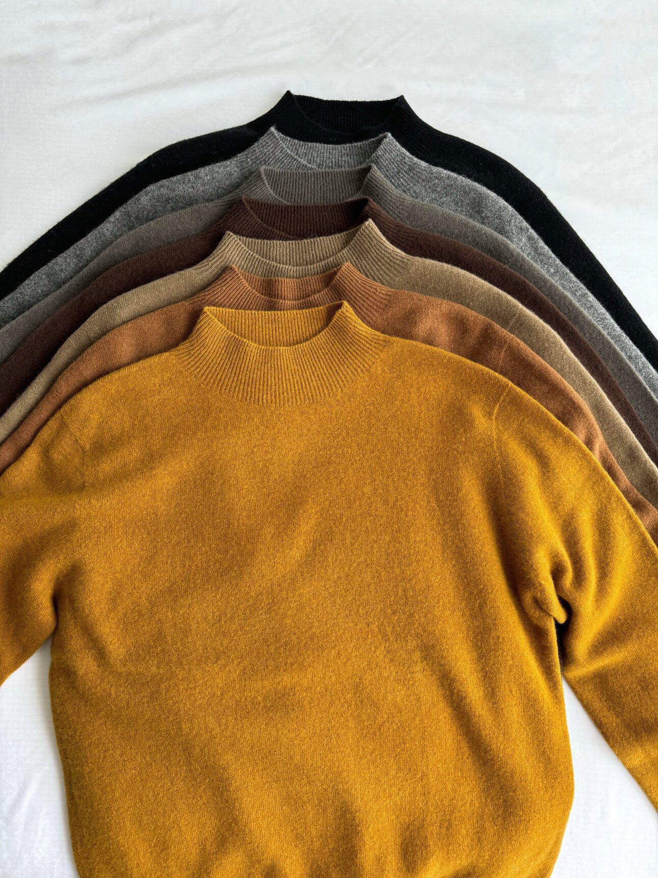 Autumn and Winter New Arrivals, Simple and Versatile Japanese Style Half-High Collar Seamless One-Piece Women's Wool Sweater, Handmade Sweater