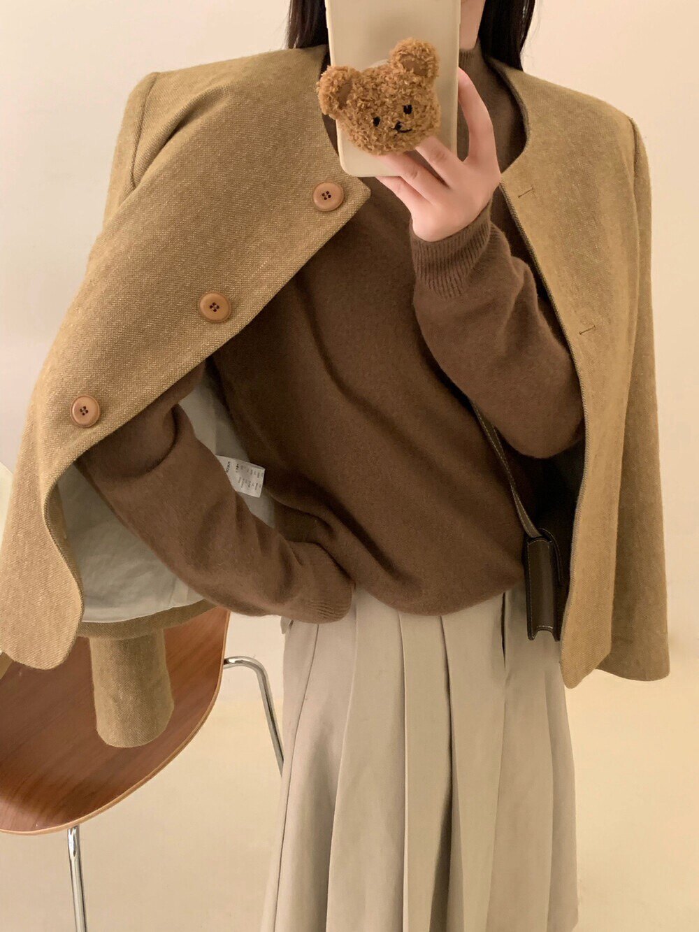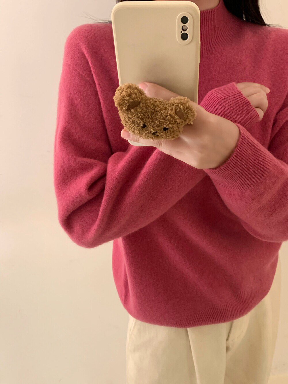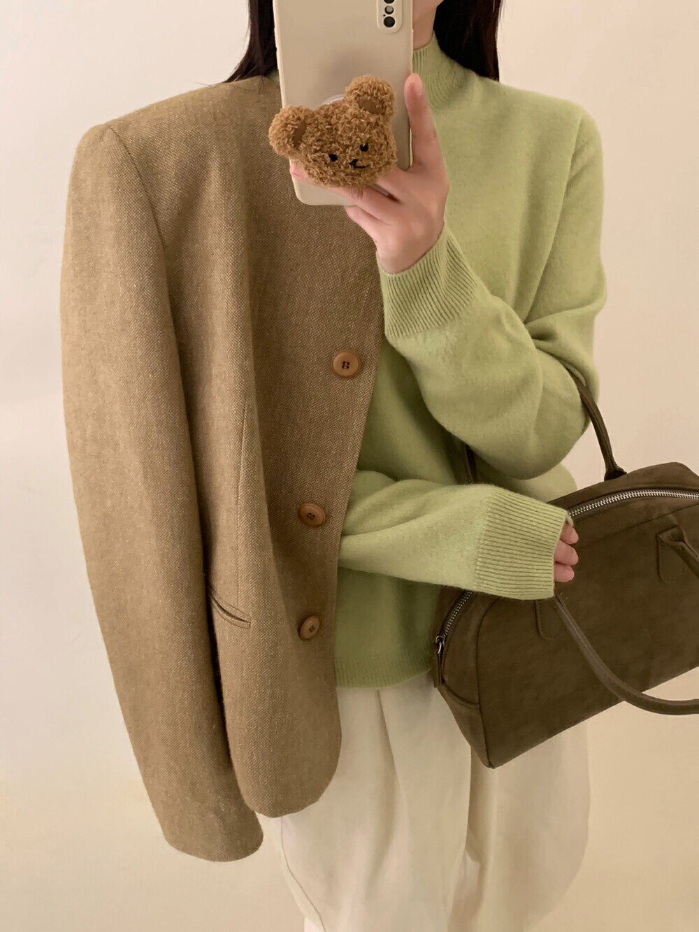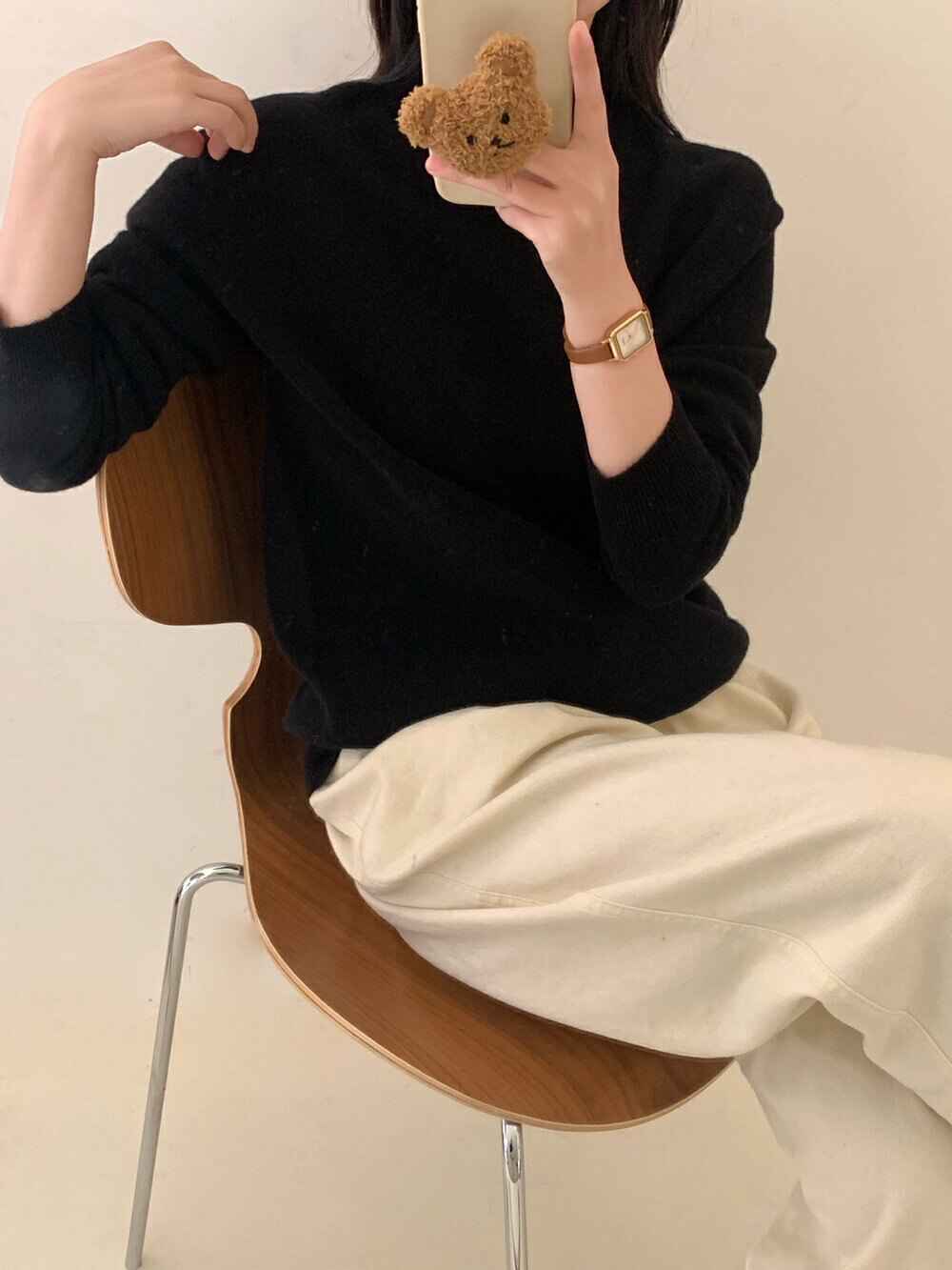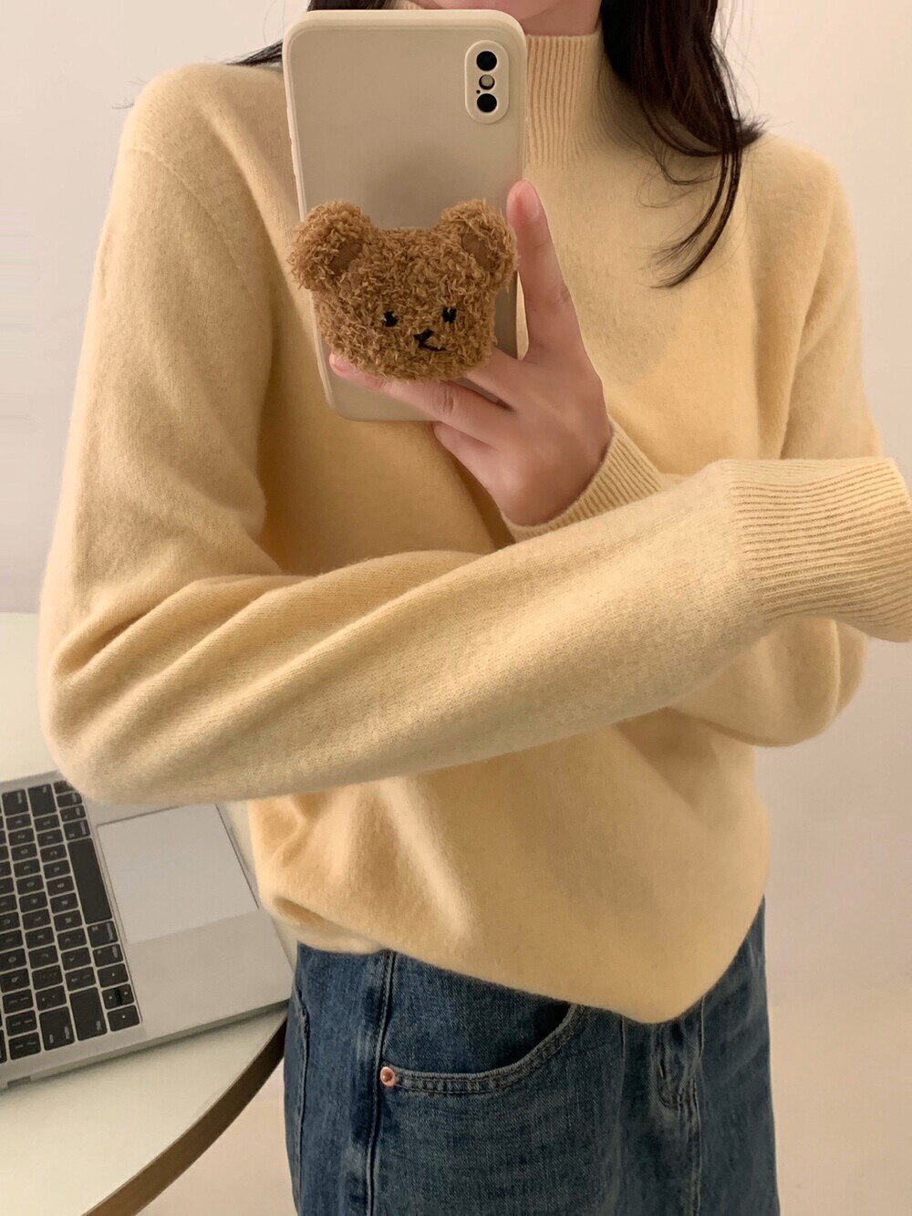 Autumn and Winter New Arrivals, Simple and Versatile Japanese Style Half-High Collar Seamless One-Piece Women's Wool Sweater, Handmade Sweater