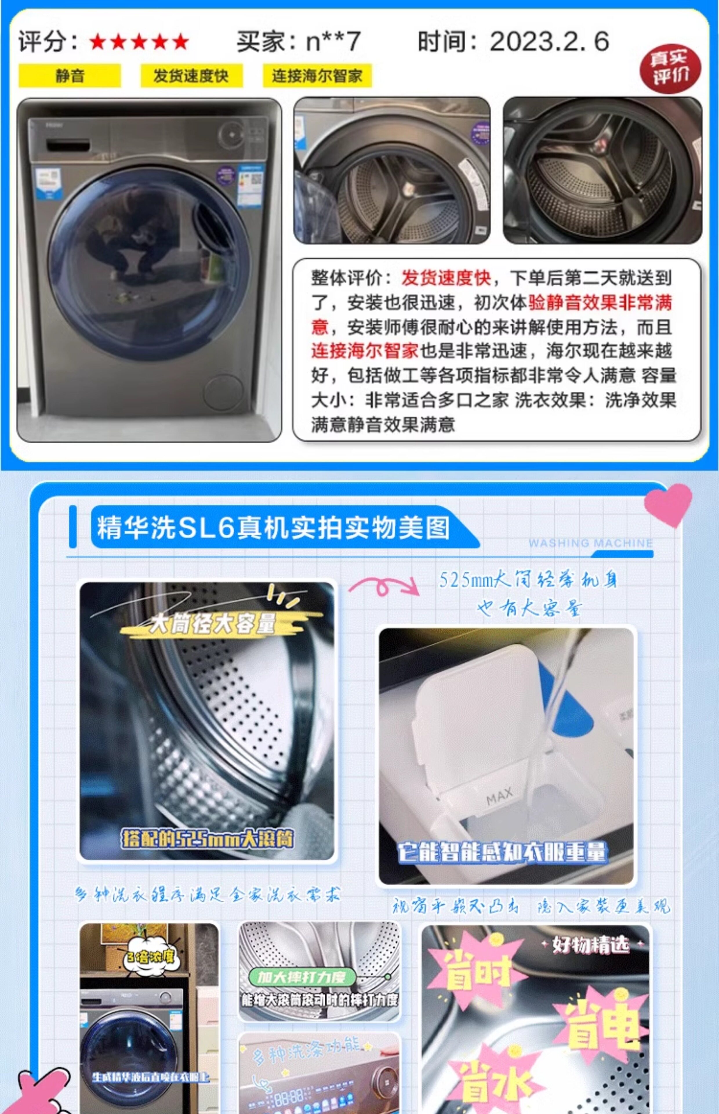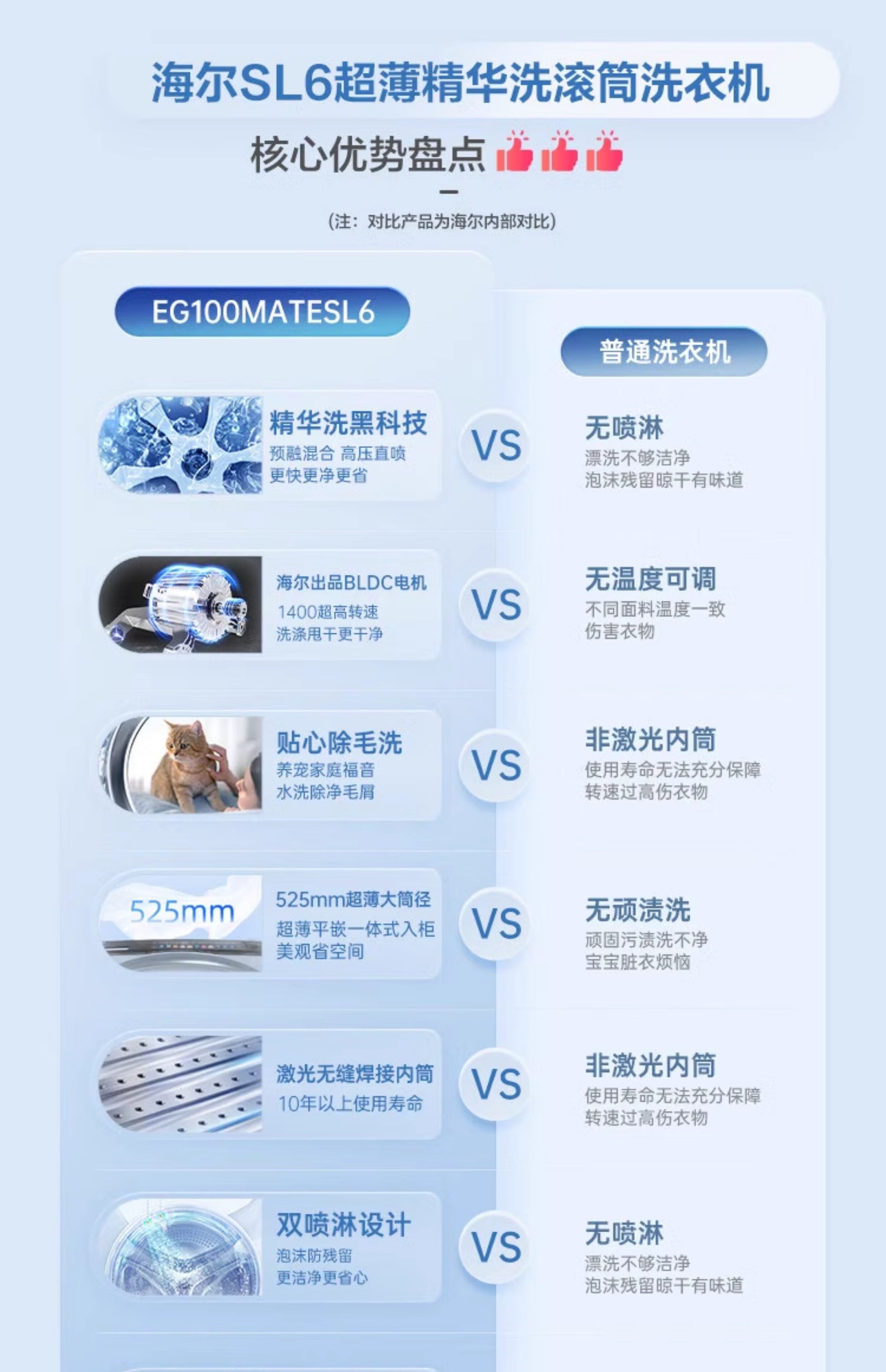 Haier EG100MATESL6 drum washing machine intelligent delivery essence washing ultra-thin flat inlay washing and drying integrated SL6