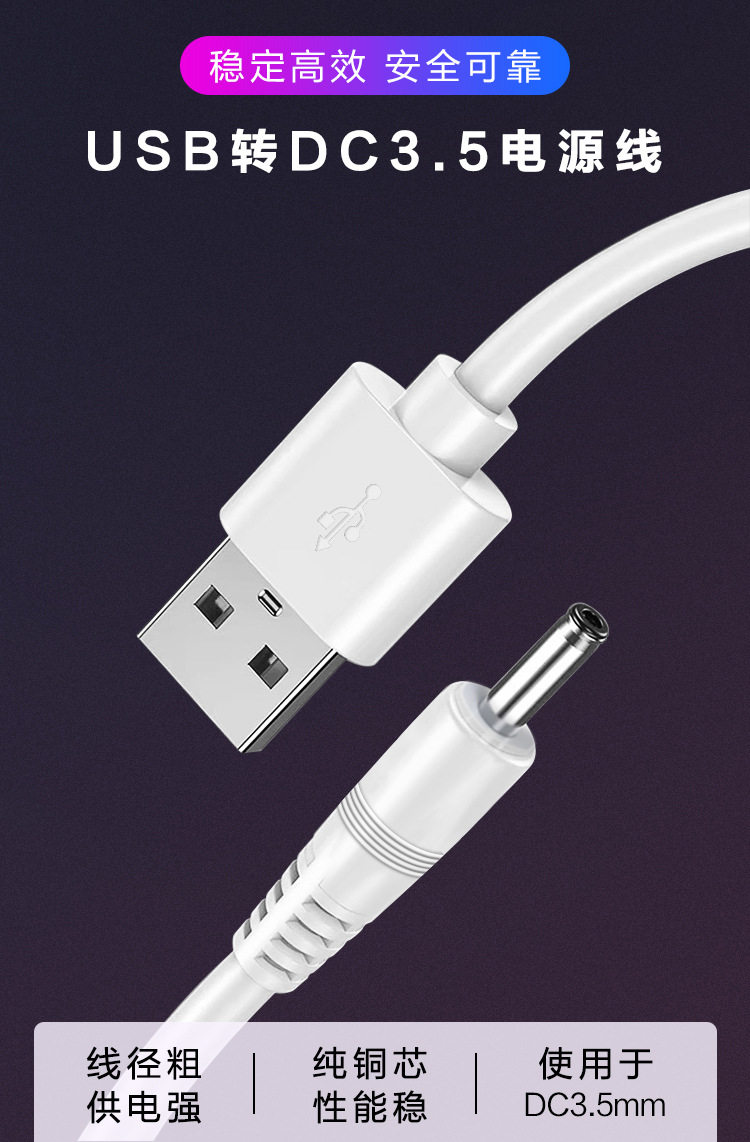 Desk Lamp Round Hole Charging Cable 3.5mm Round Head Universal Suitable for Luna Facial Cleanser Speaker Electric Toothbrush USB to Dc3.5 Small Fan Lunamini2 Power Cord 5V Data Cable Facial Cleanser