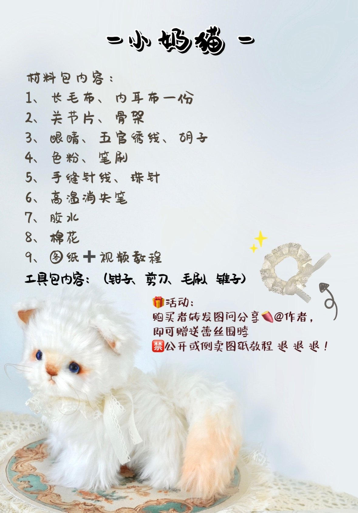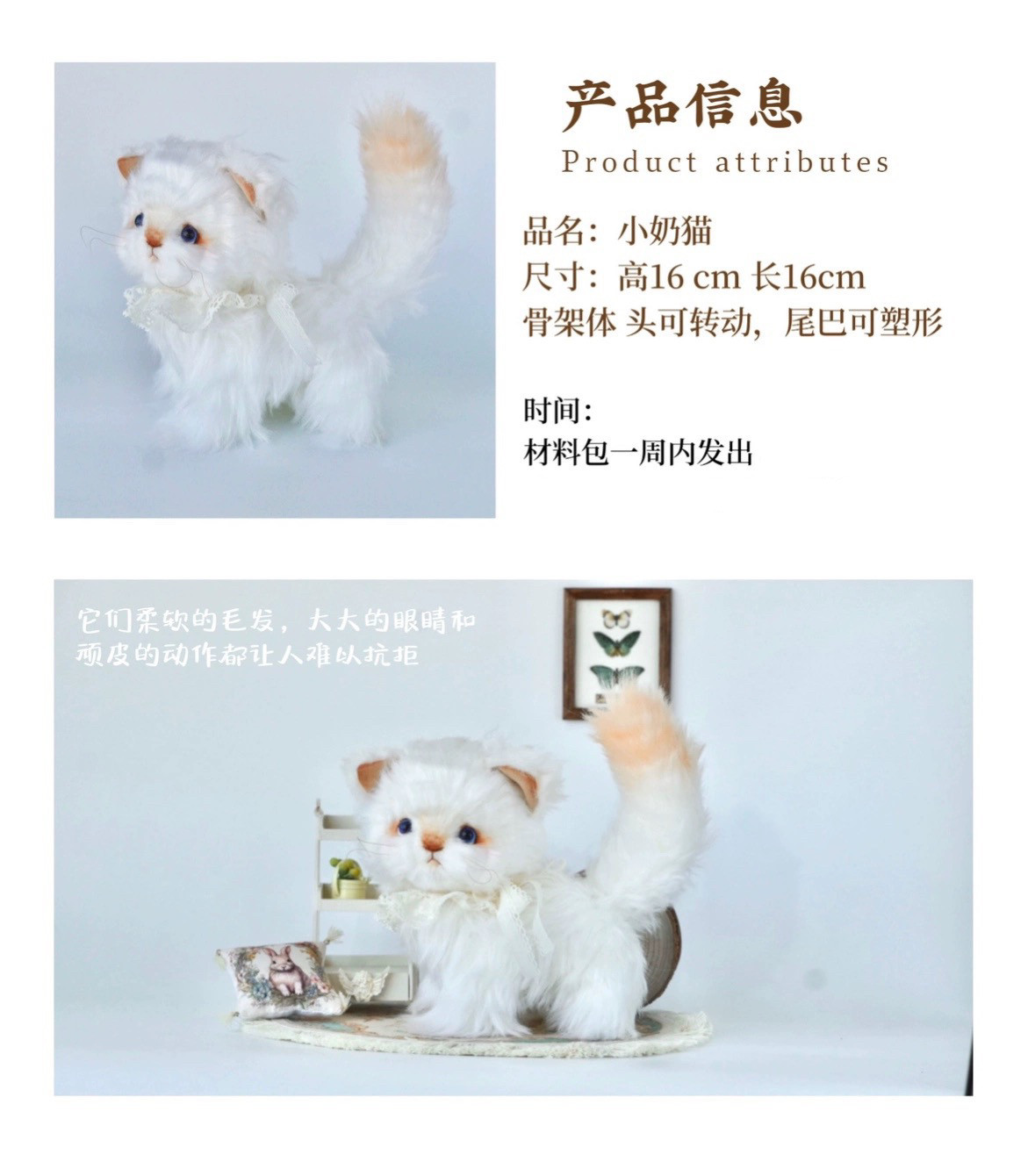[Material Pack] Handmade Doll Little Cat DIY Material Pack Finished Sewing Fabric Doll