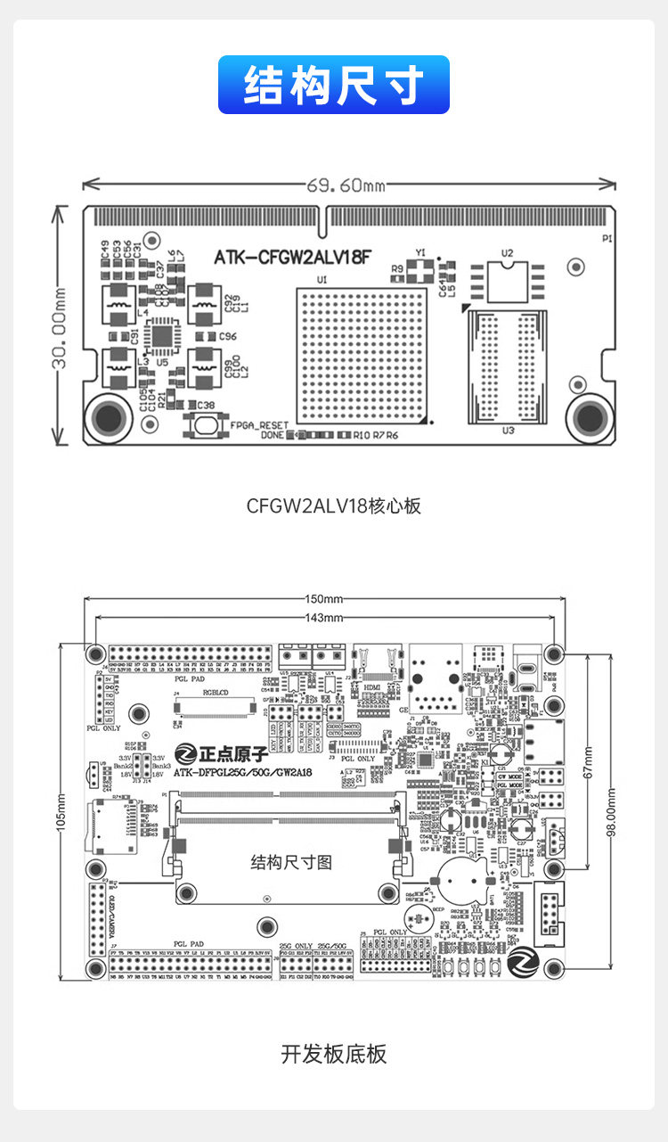 Zhengdian Atom Fpga Development Board Gao Yun Gw2Alv18 Domestically Produced Gao Yun Chenxi Family Series Core Board