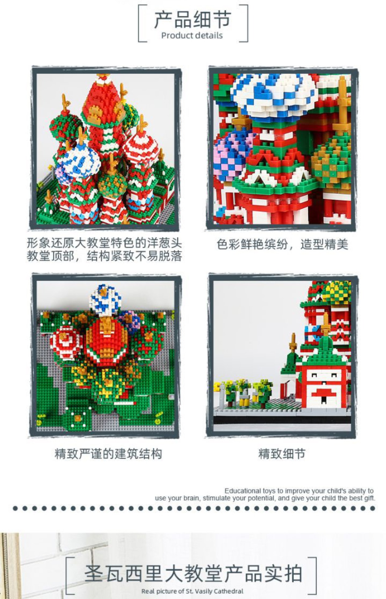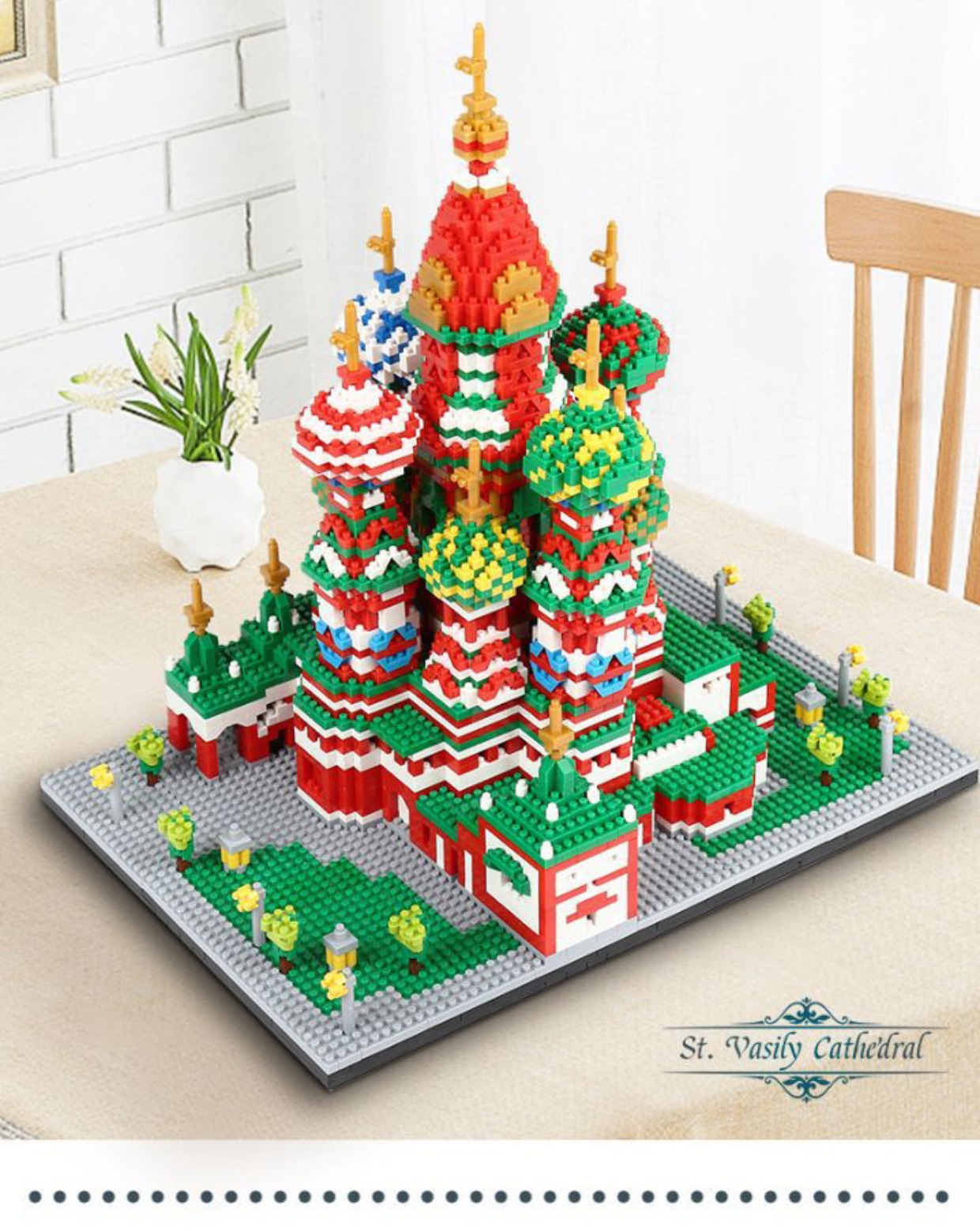 Miniature small particle building blocks world-famous architectural educational assembling toys paris eiffel tower great wall yellow crane tower