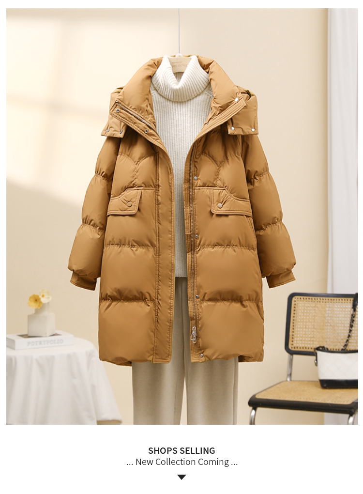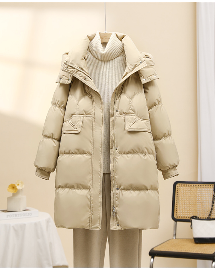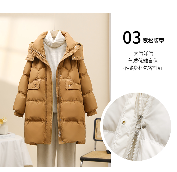 Popular down jacket women's mid-length 2025 new Korean fashion loose thickened white duck down hooded winter trend