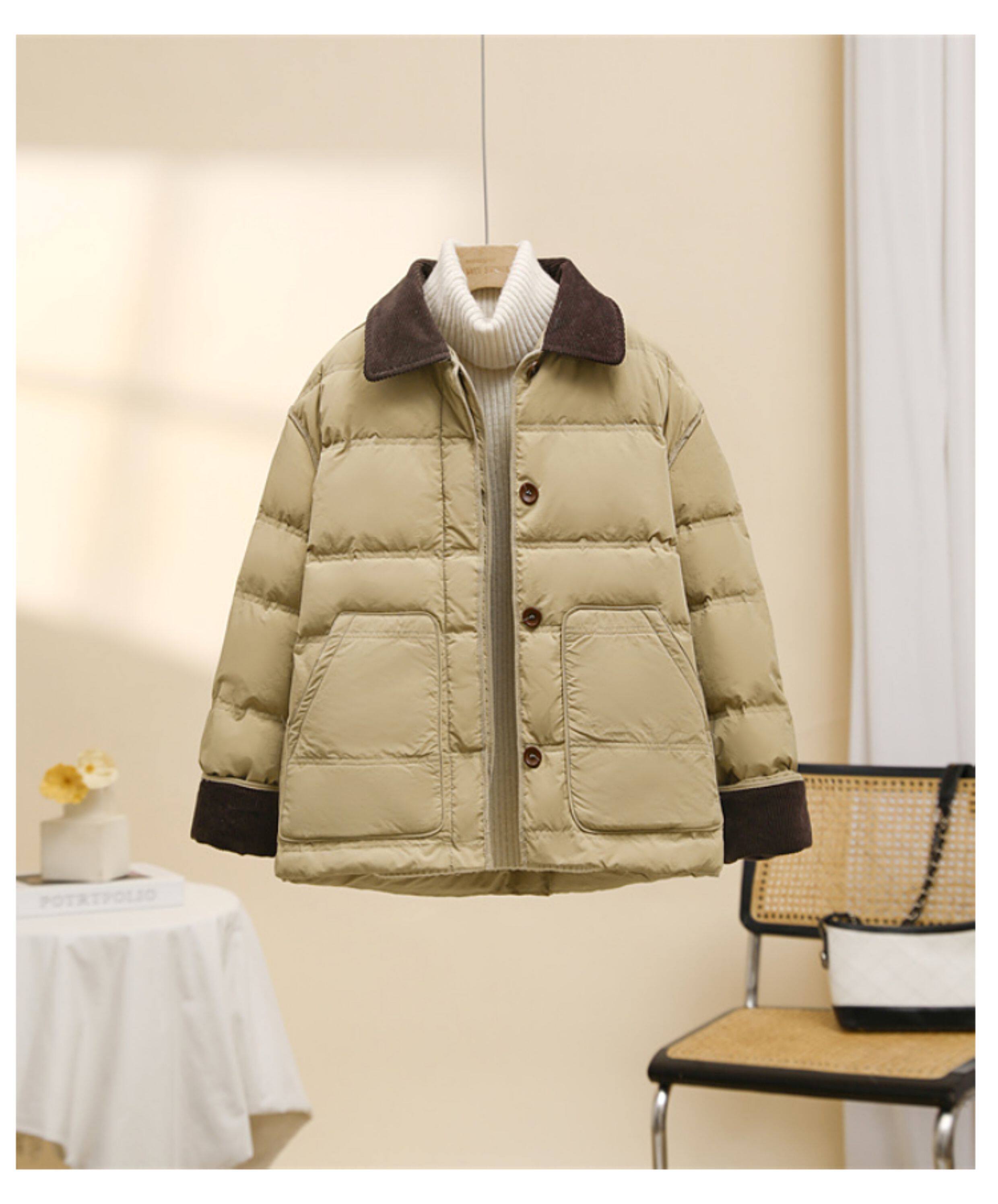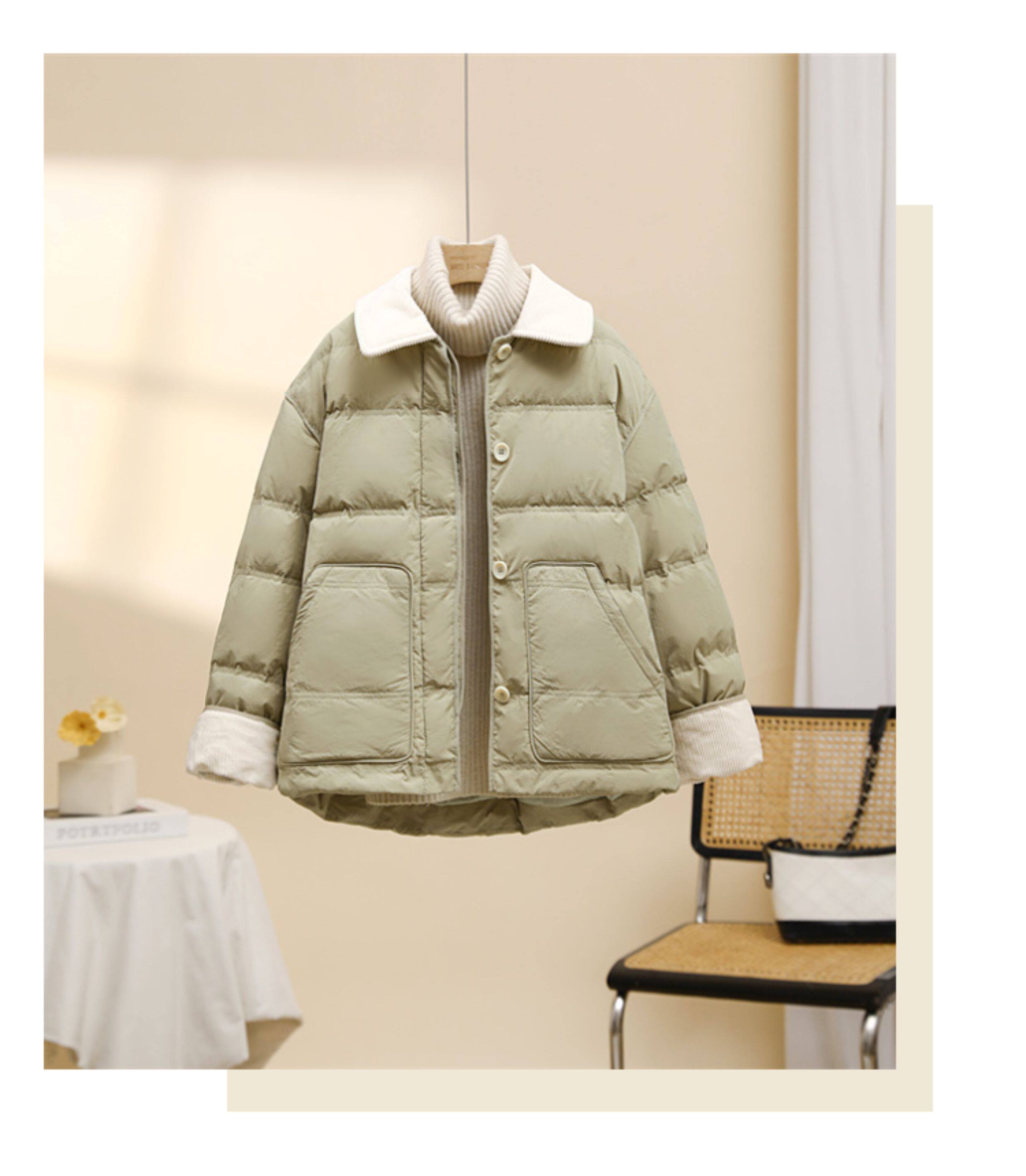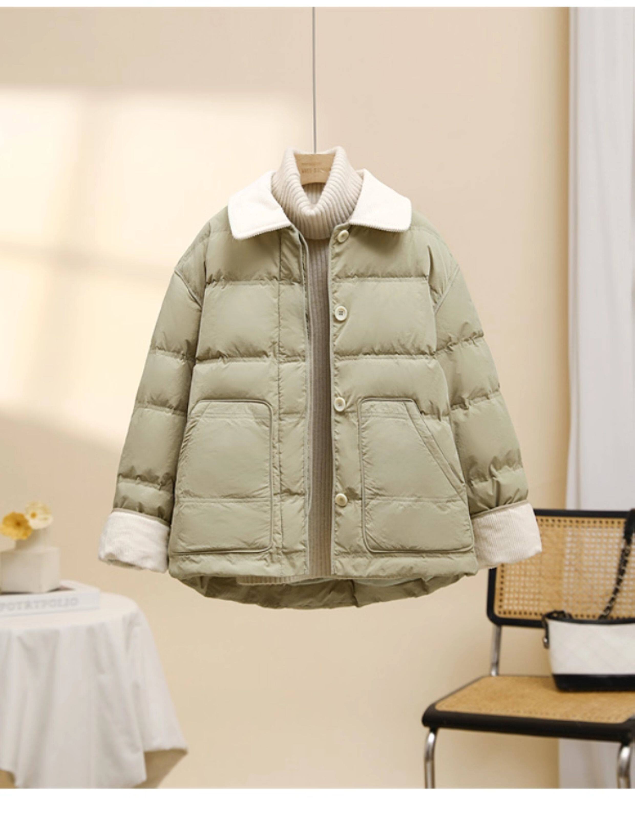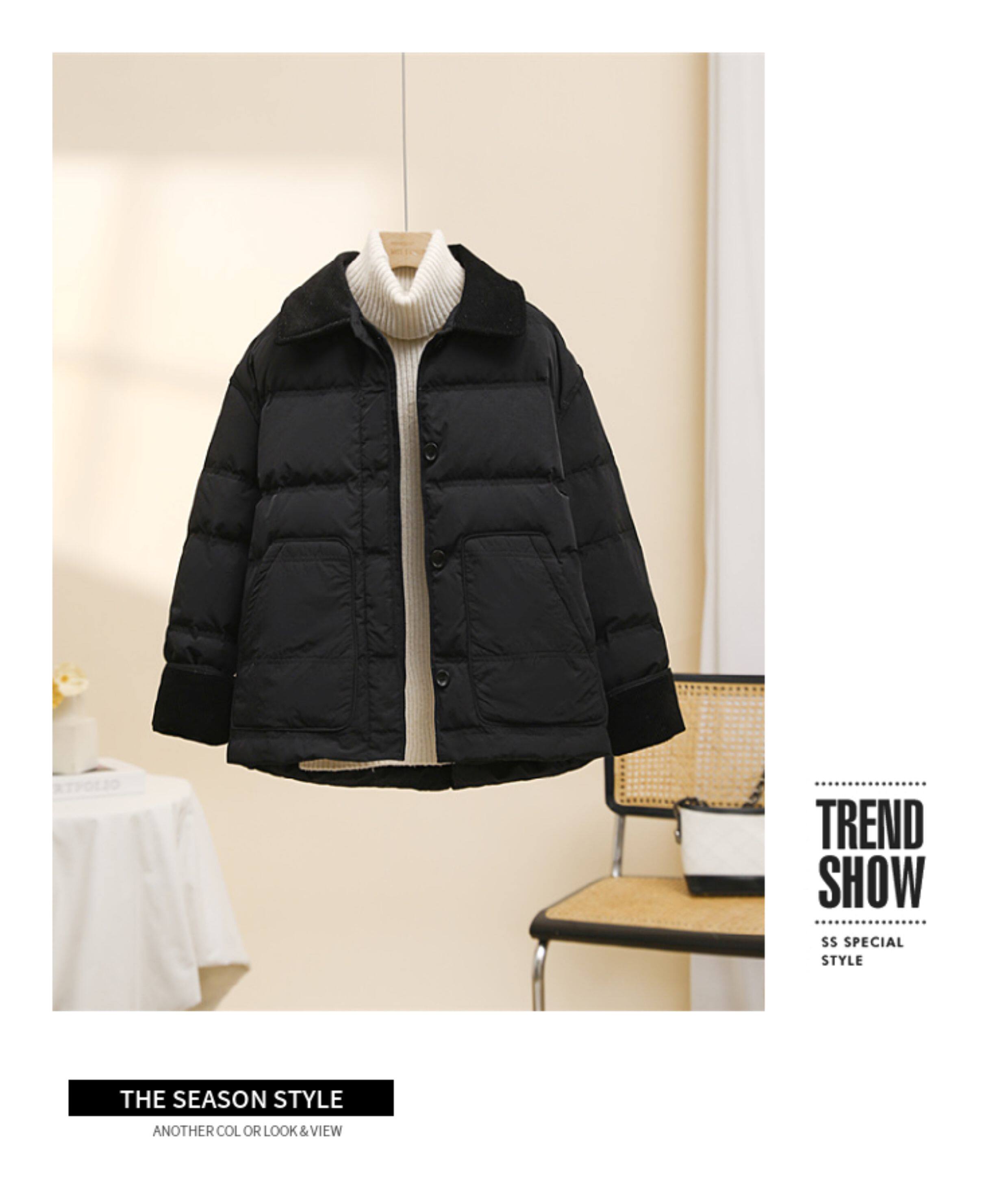Down jacket women's short 2025 new hot style Korean Dongdaemun corduroy fashion contrasting lapel bread jacket trendy