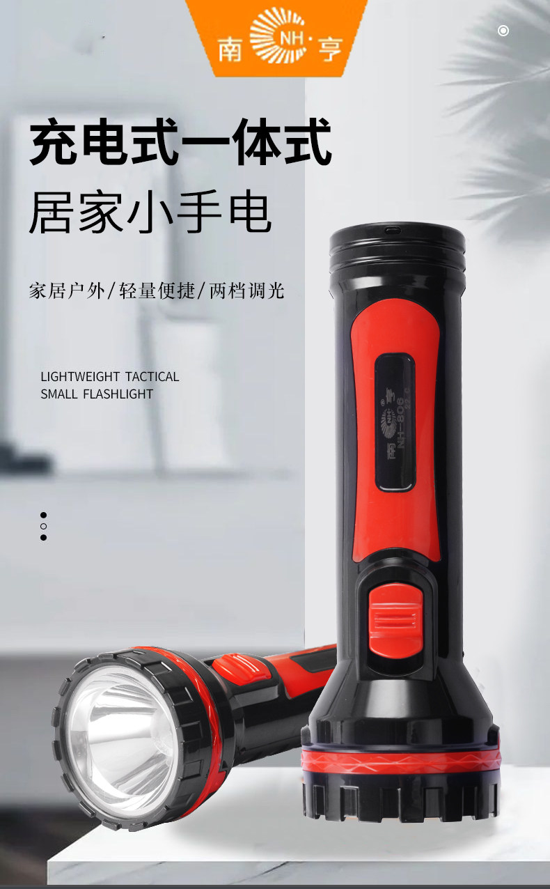Rechargeable All-In-One Small Flashlight with Two Levels of Dimming, Home Emergency Outdoor Lightweight Portable Night Hiking Light