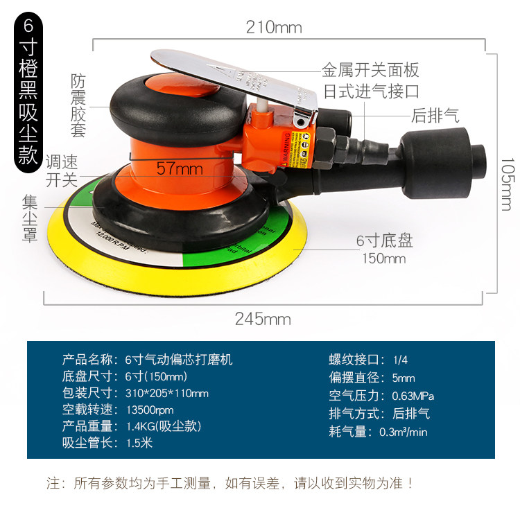 Car Polishing and Waxing Machine, Pneumatic Sandpaper Machine, Air-Powered Polishing Machine, Grinding Machine, Air Grinder, Dry Grinder with Vacuum