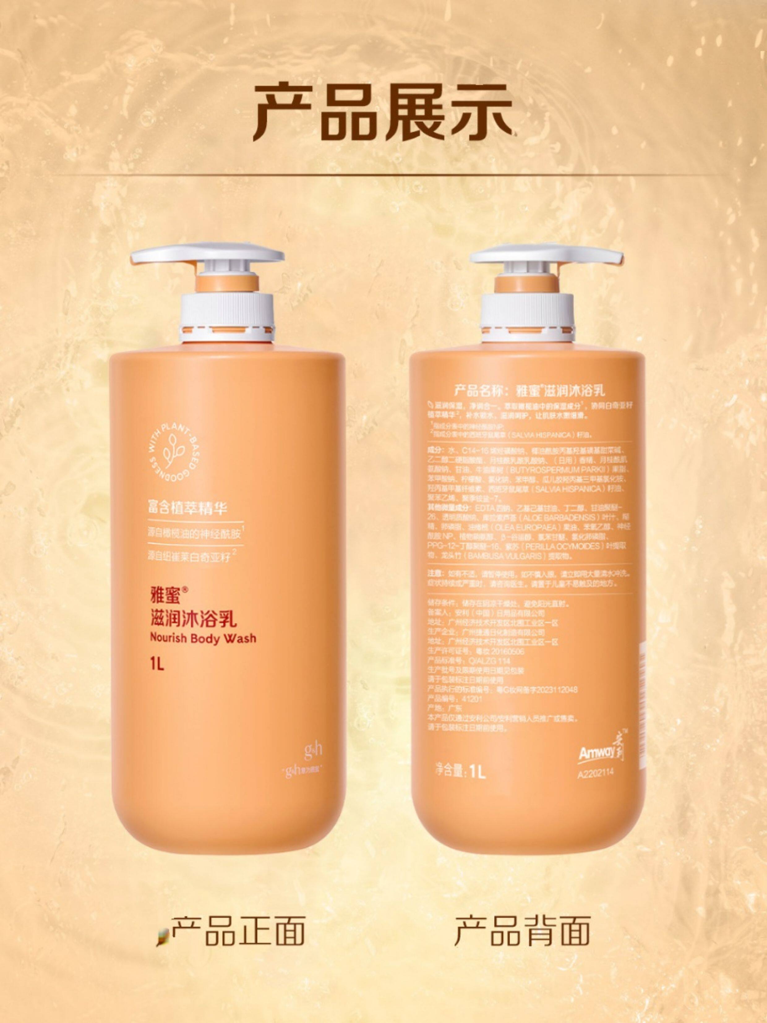 1L large bottle of Angelica honey moisturizing shower gel, shower gel, large orange bottle, shower gel, moisturizing