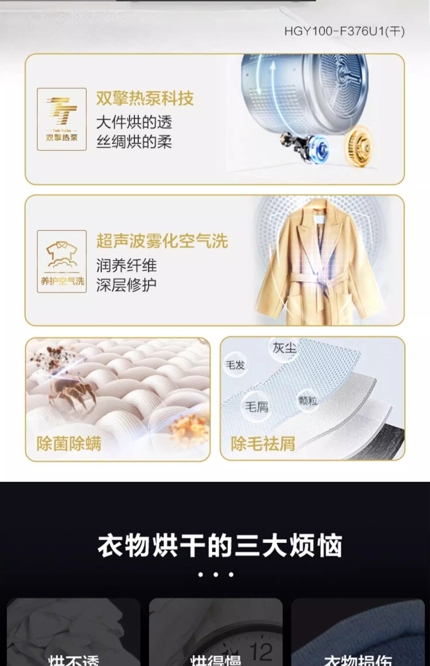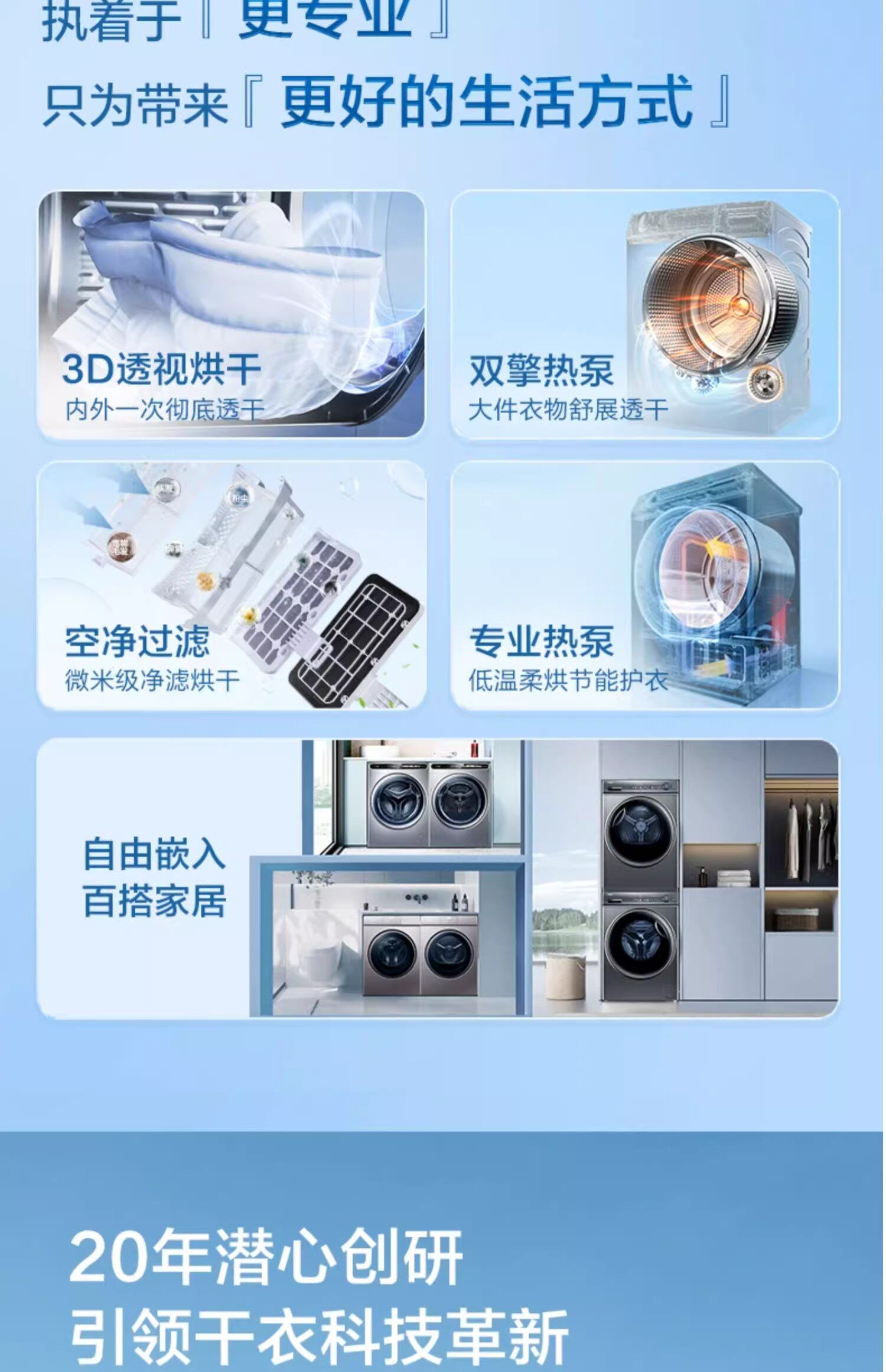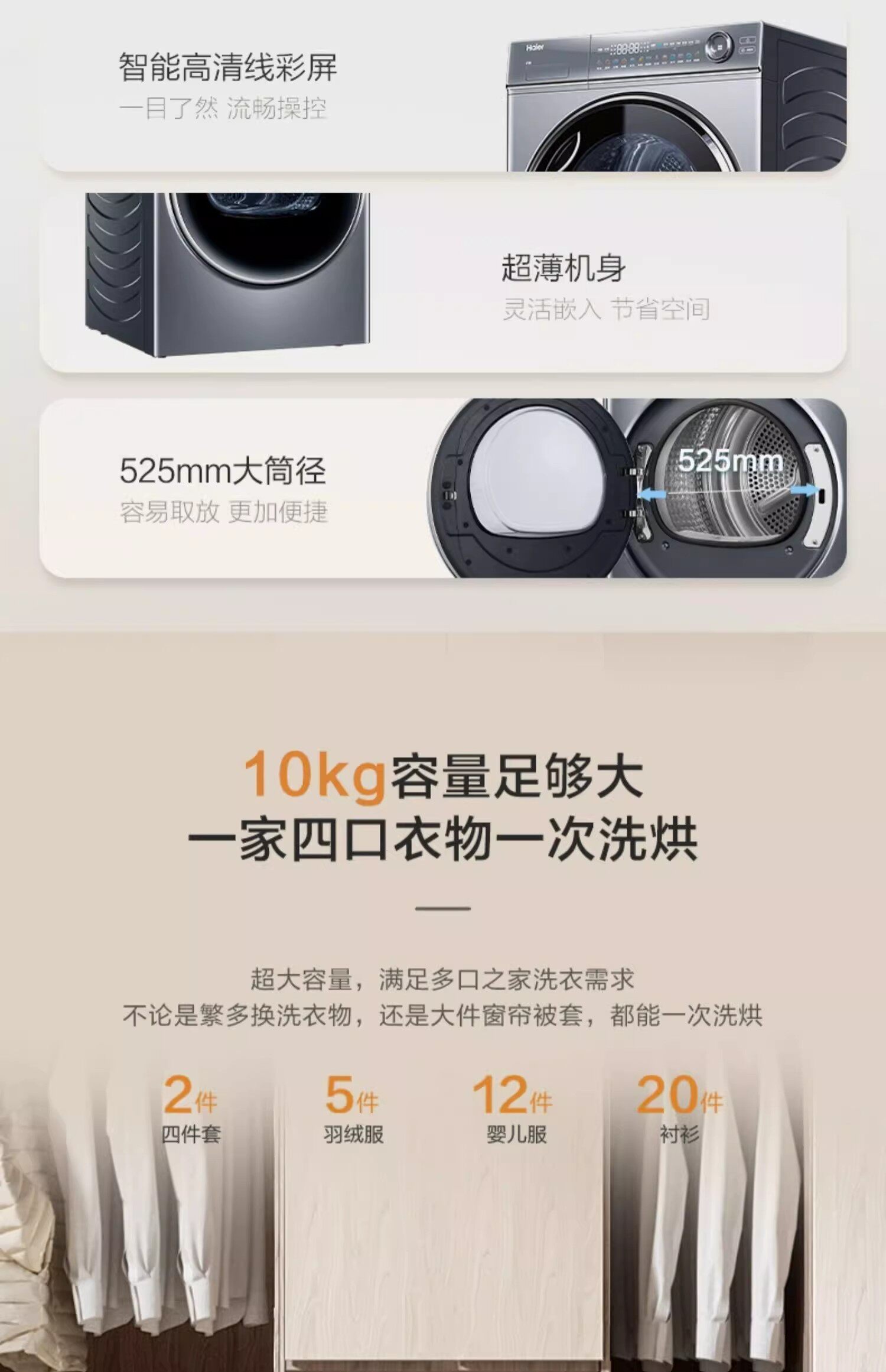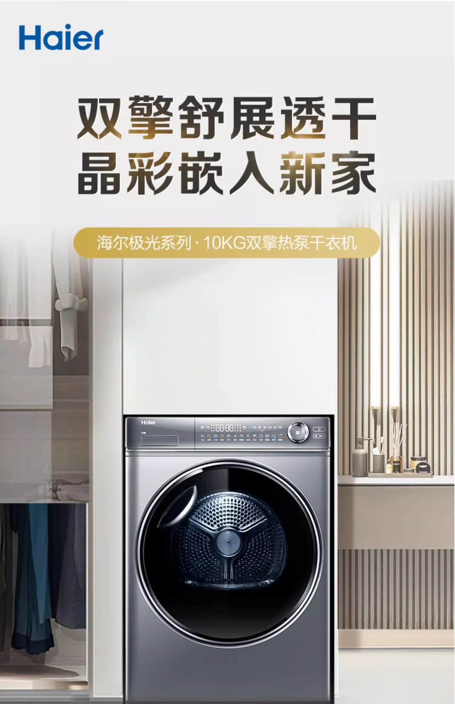 [New Model] Haier Slim 376 Clothes Dryer Dual Engine Heat Pump 10kg Household Drum Dryer Hgy100-F376U1