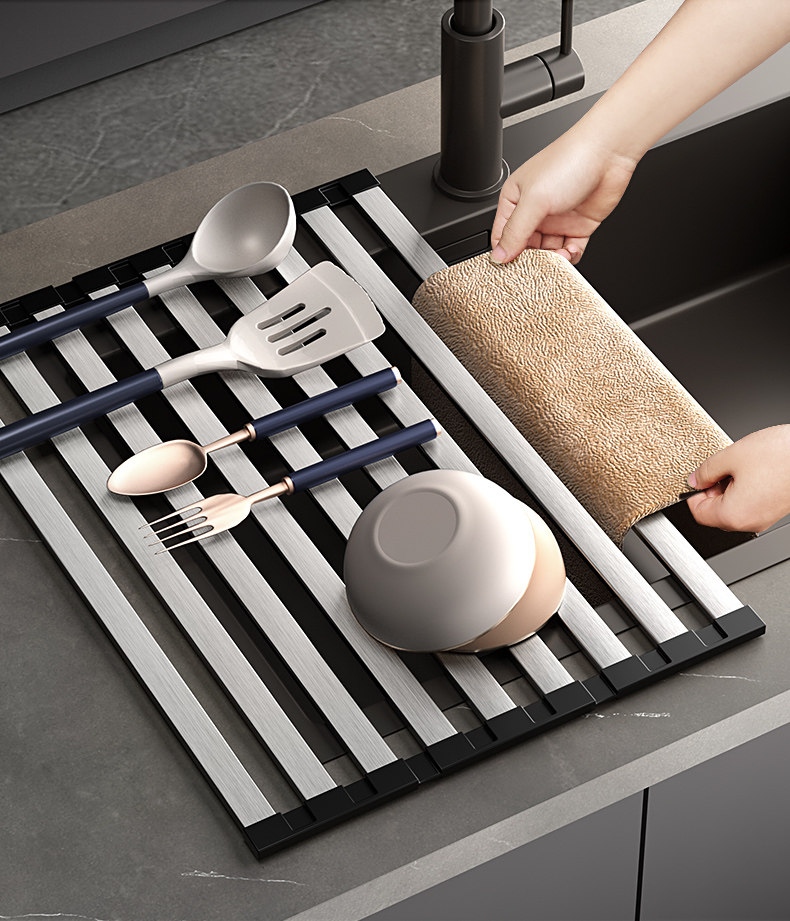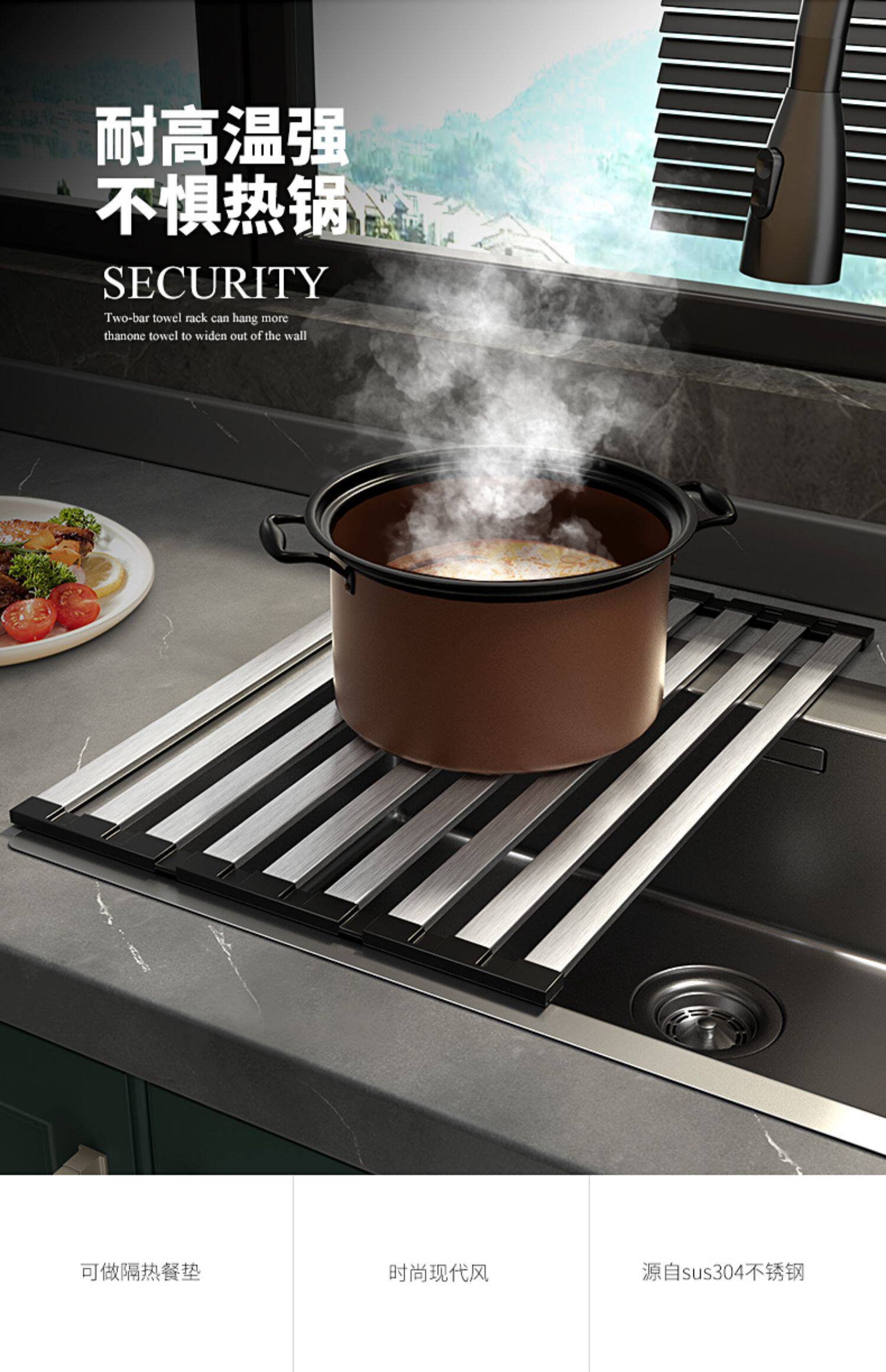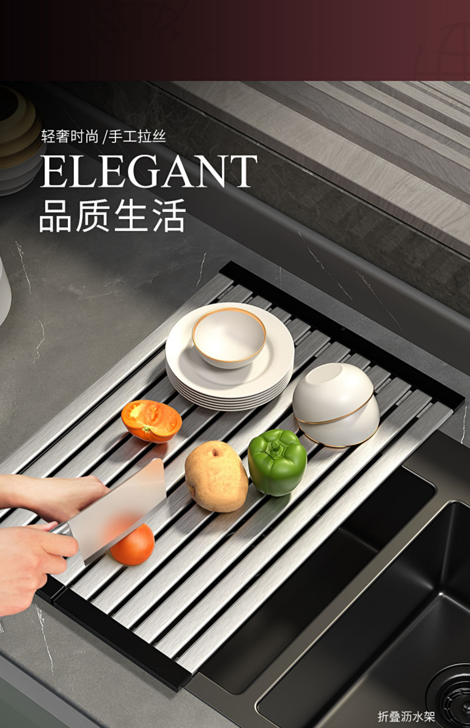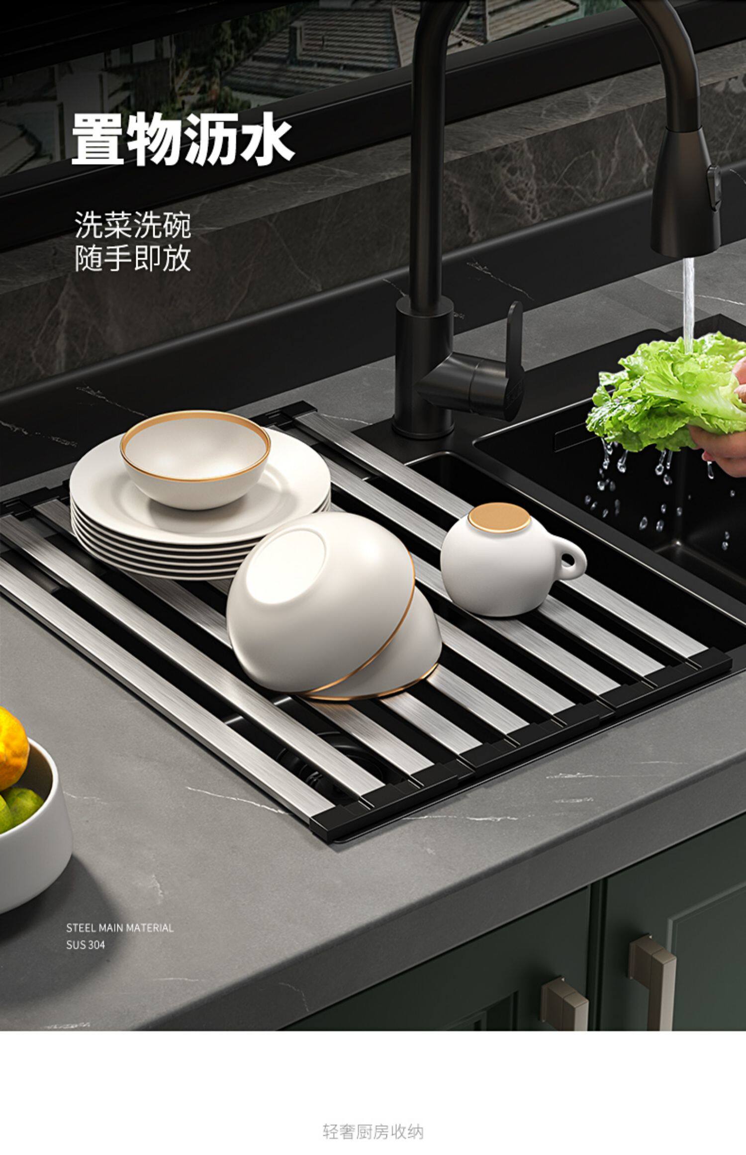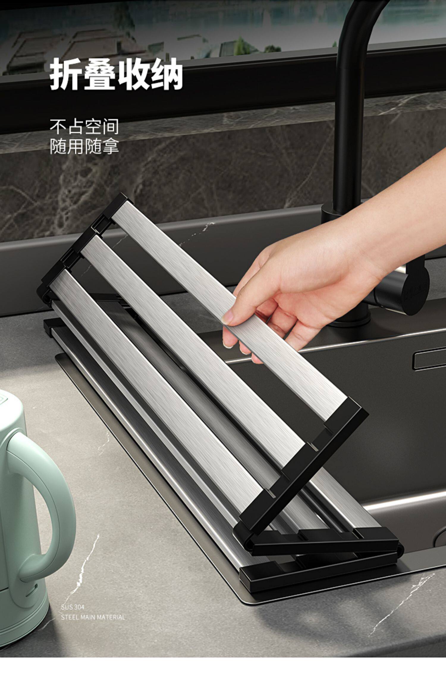 Italian Aisino 304 Stainless Steel Kitchen Sink Drain Rack Foldable Vegetable Washing Dishwashing Sink Filter Storage