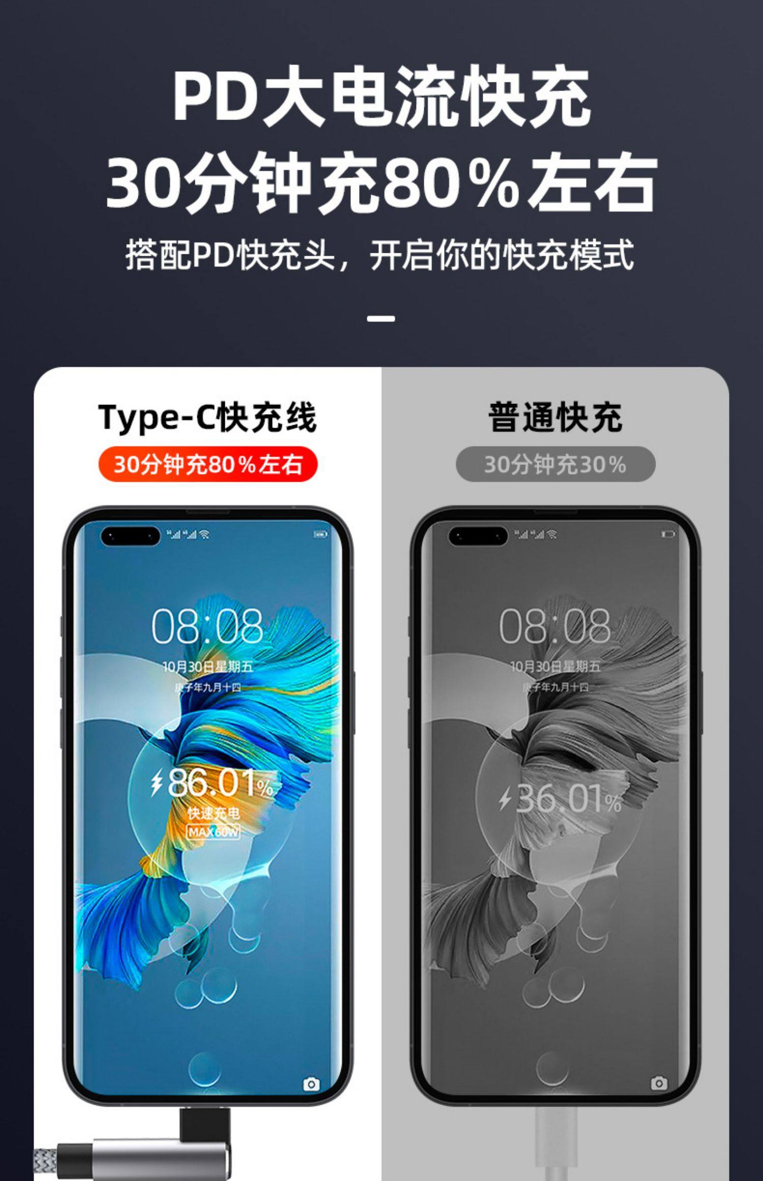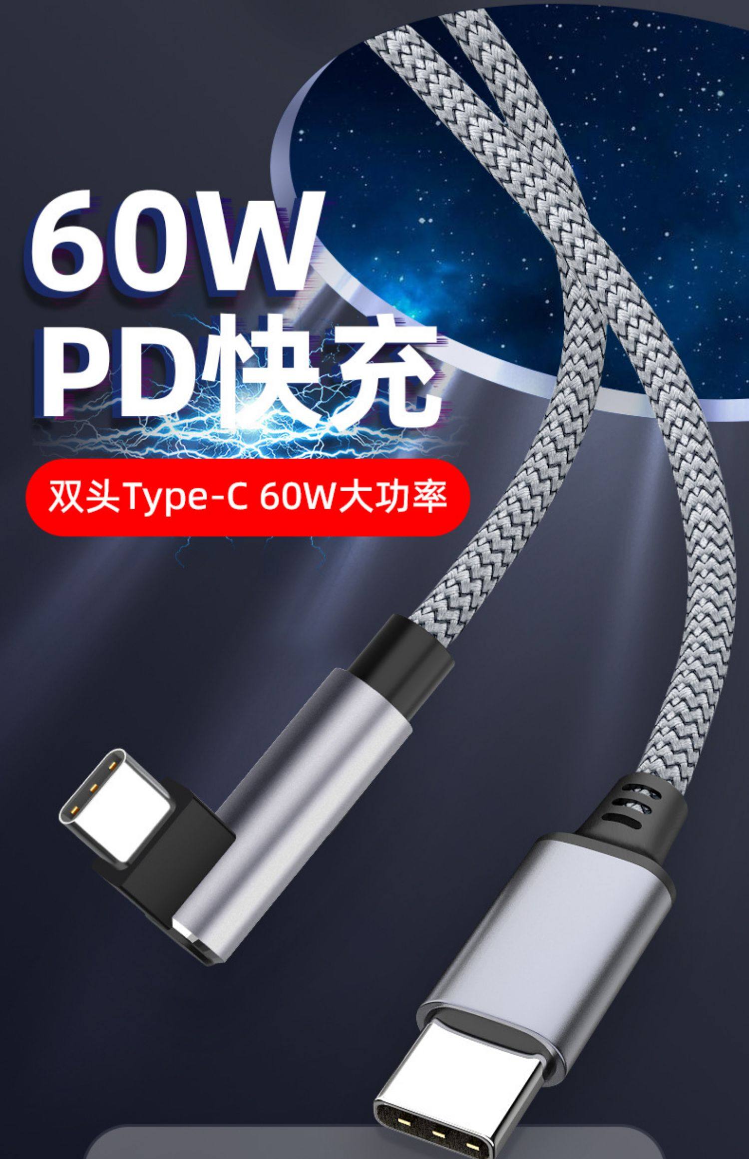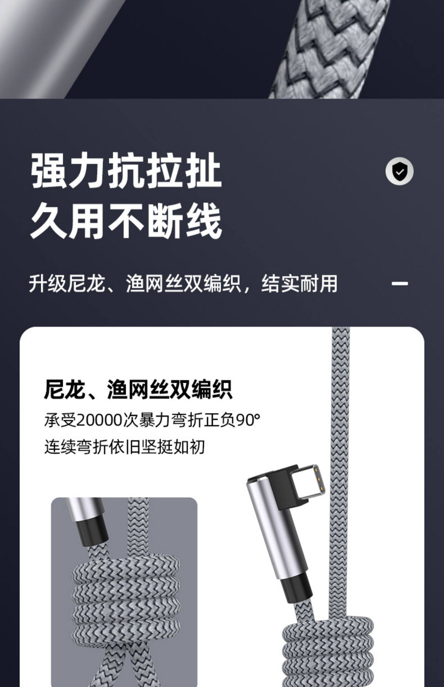 Double-Ended Type-C Data Cable with Elbow Braided Design, Compatible with Apple iPhone 15, iPad to Pro, Dual Pd Fast Charging, Tpyec Huawei Tpc Mobile Phone Car Charging Cable, Laptop