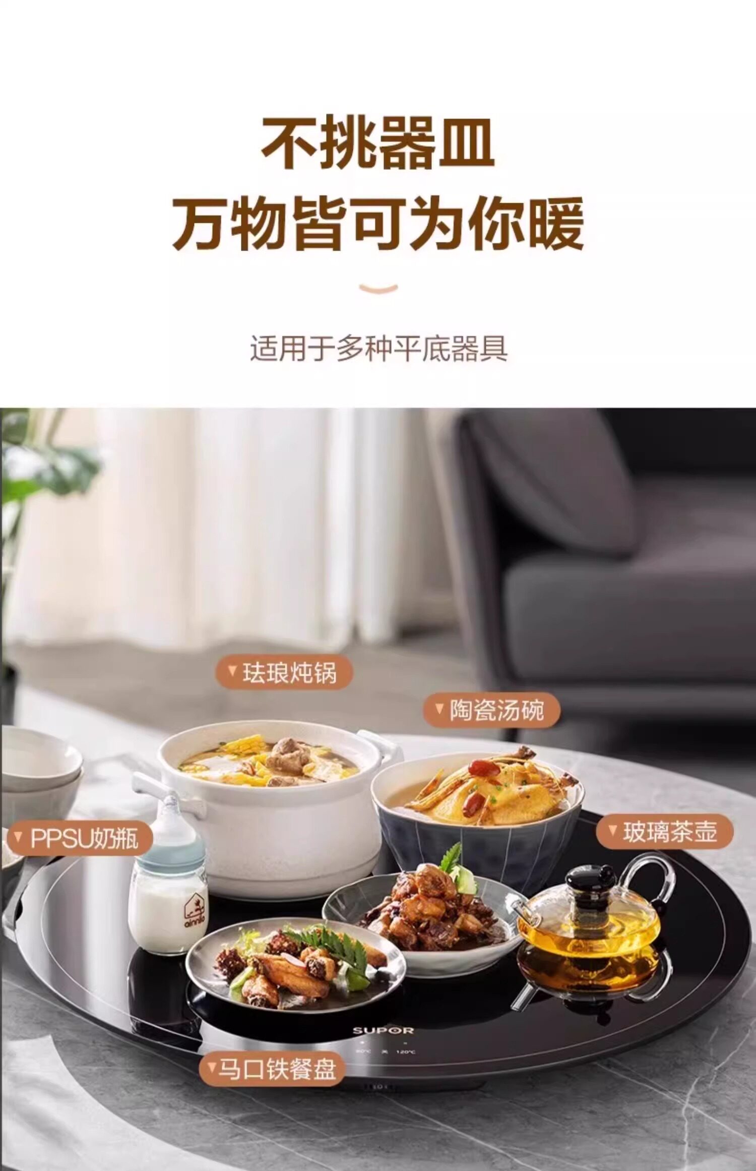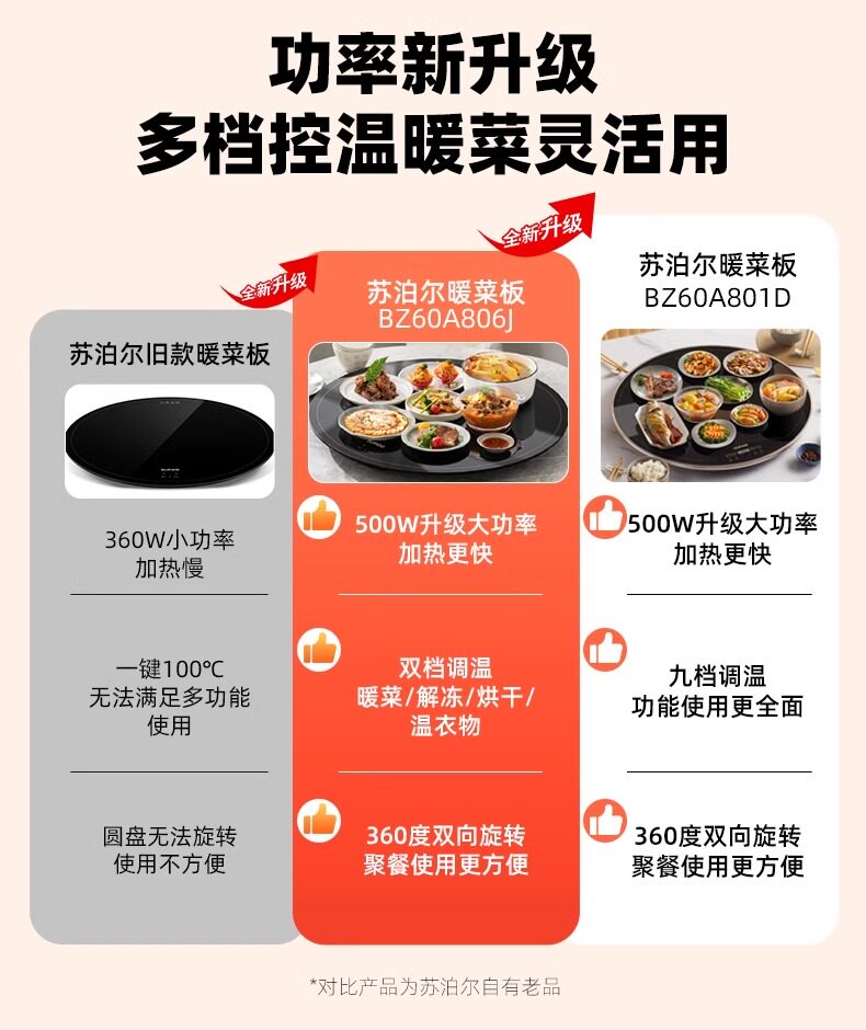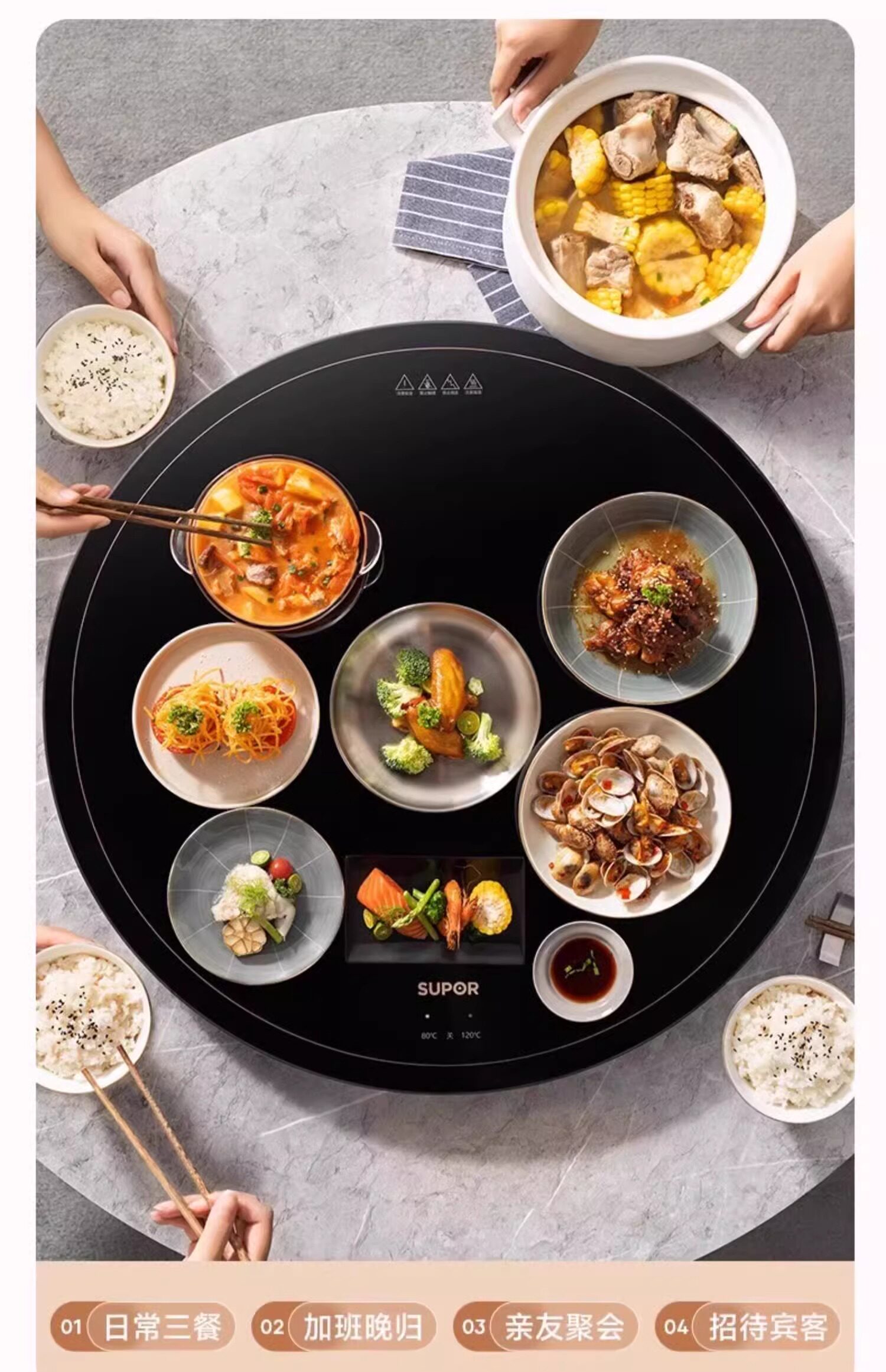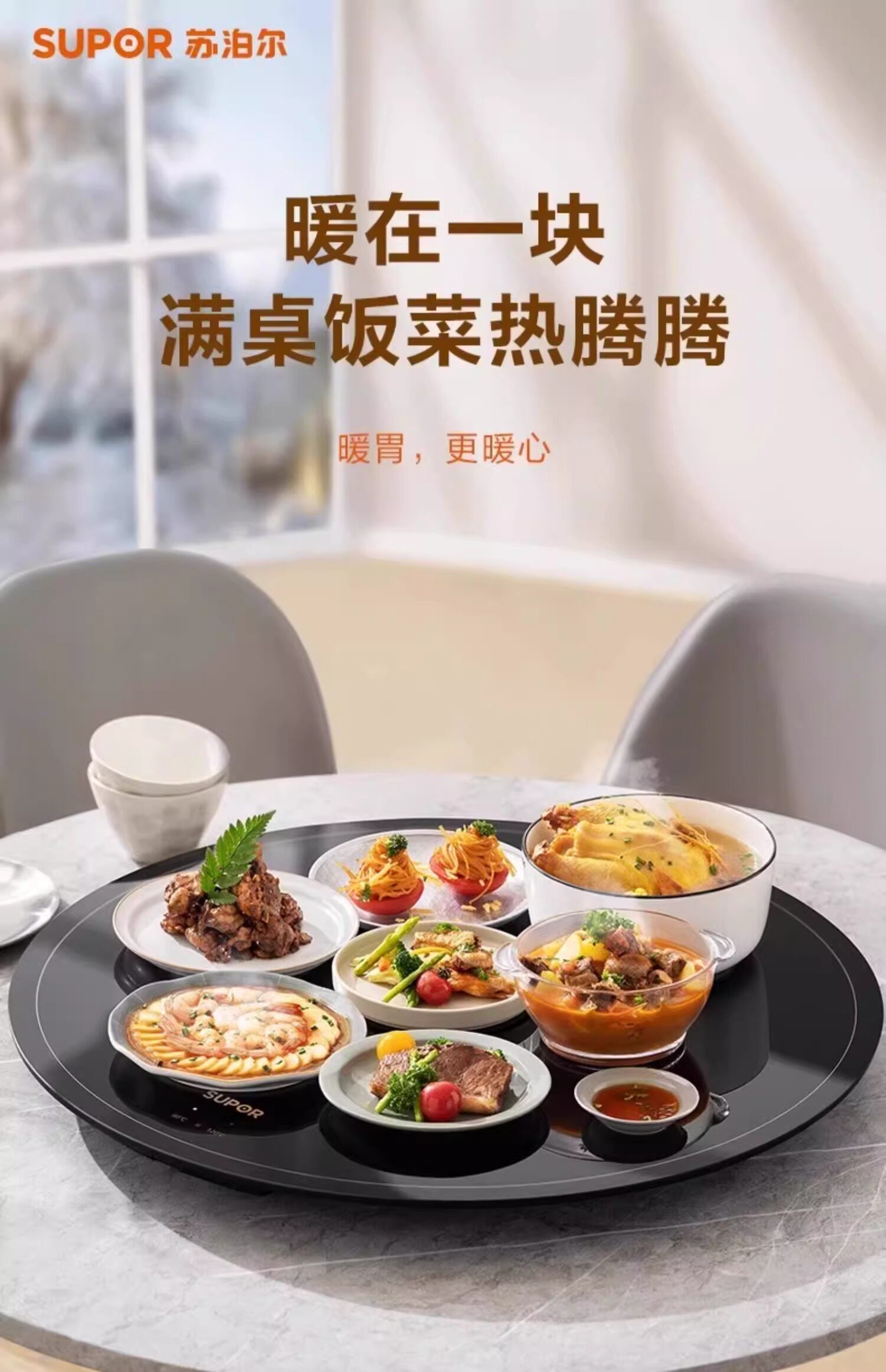 Supor Warming Plate, Hot Dish Board, Household Insulation Pad, Heating Tray, Constant Temperature Food Warmer, Multifunctional Dining Table Turntable