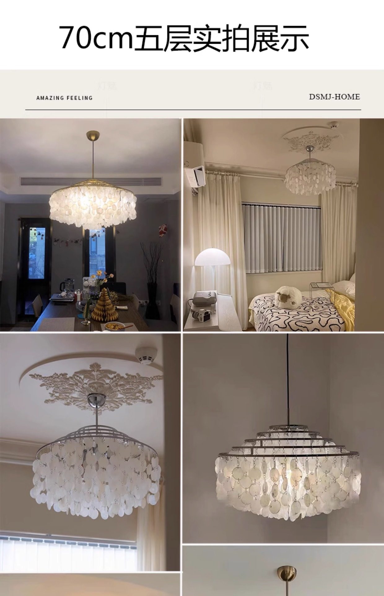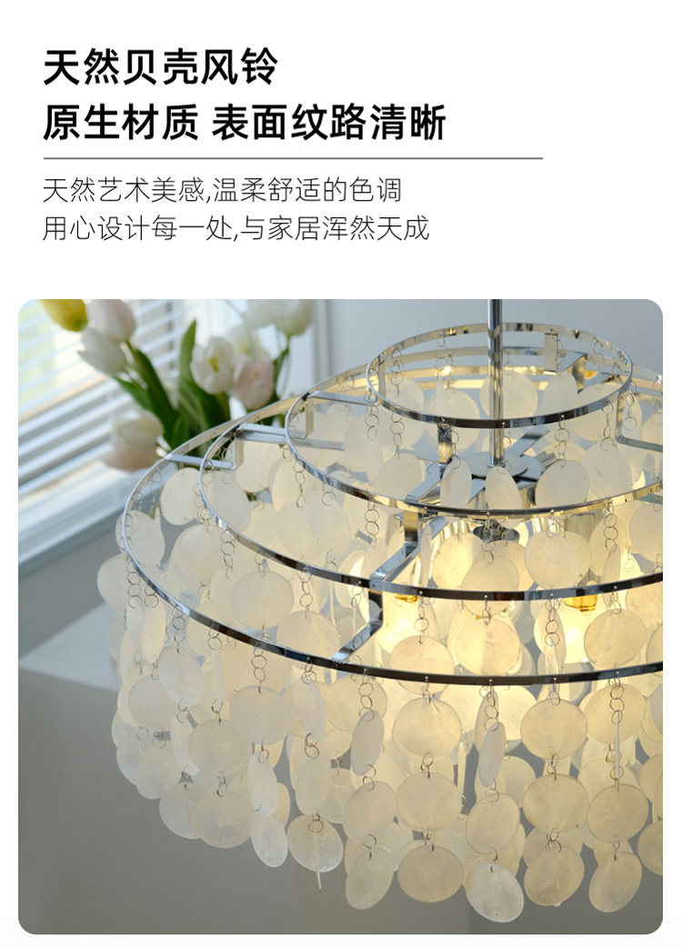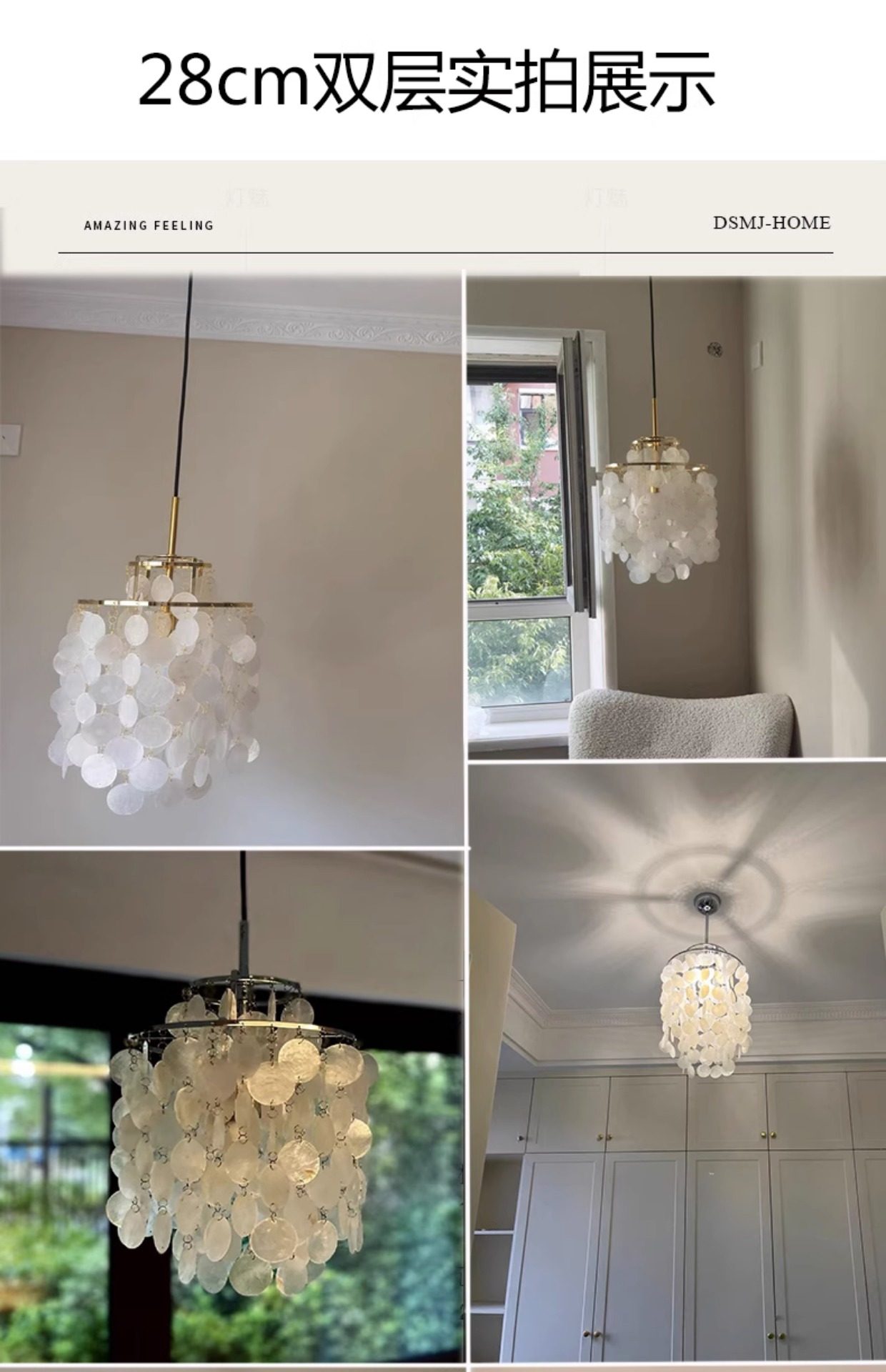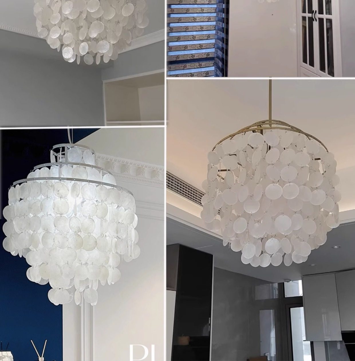 Italian Verpan French-Style Living Room Chandelier, Vintage Cream Shell Wind Chime, Designer Dining Room Master Bedroom Lighting Fixtures