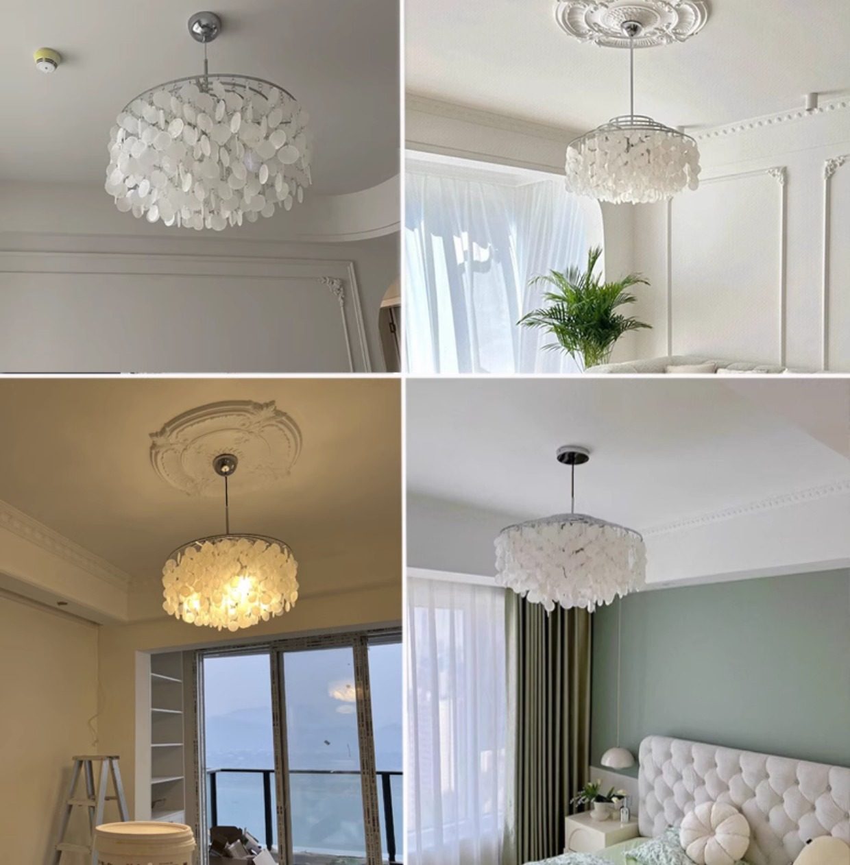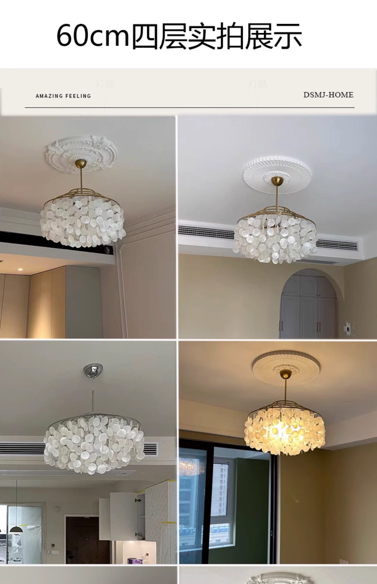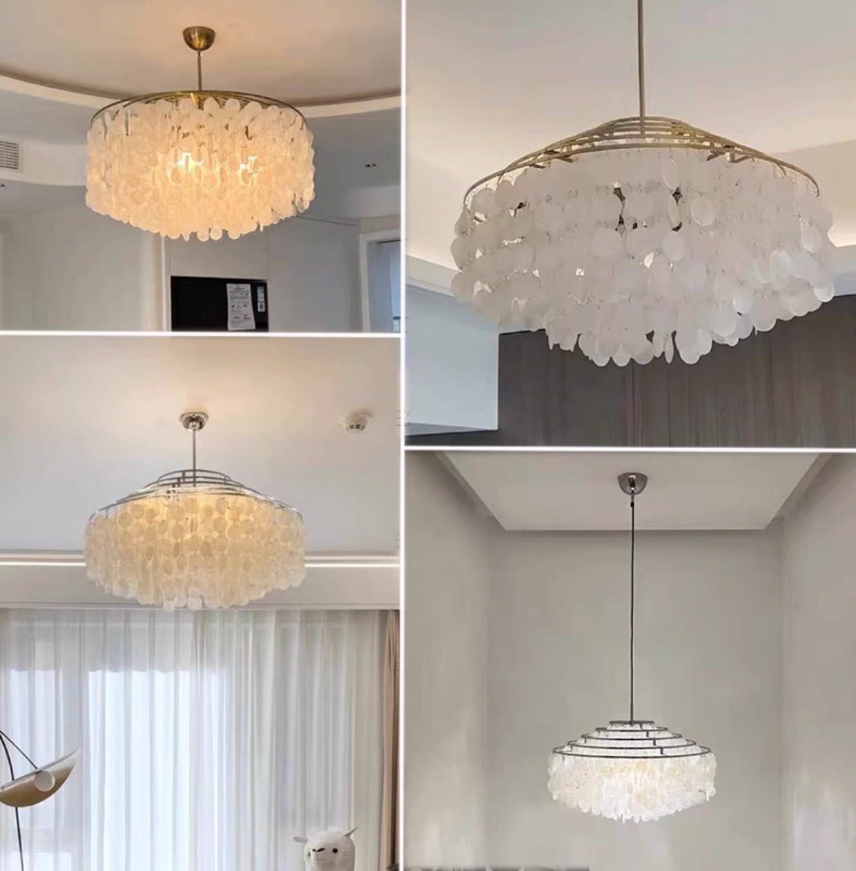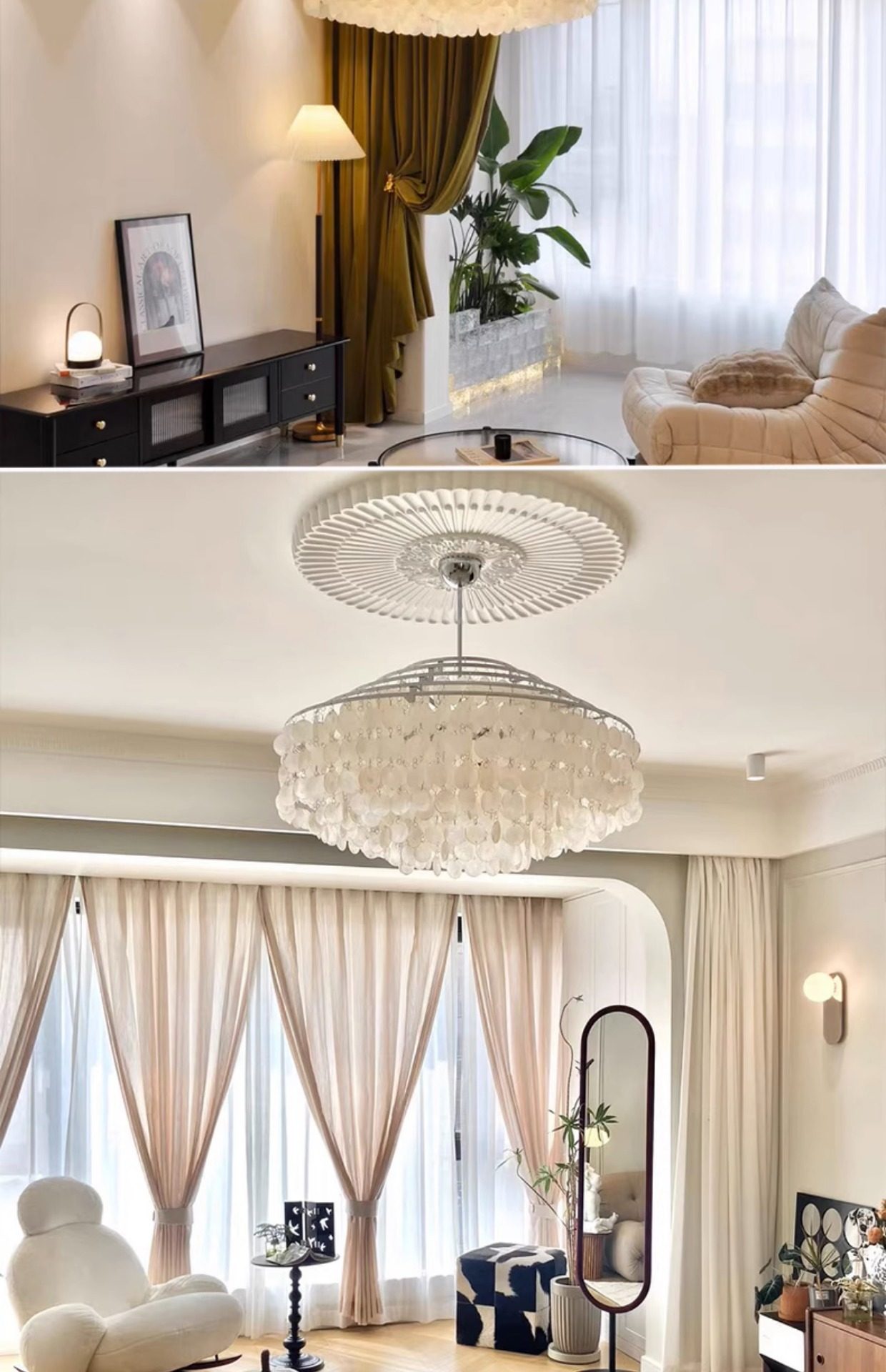 Italian Verpan French-Style Living Room Chandelier, Vintage Cream Shell Wind Chime, Designer Dining Room Master Bedroom Lighting Fixtures