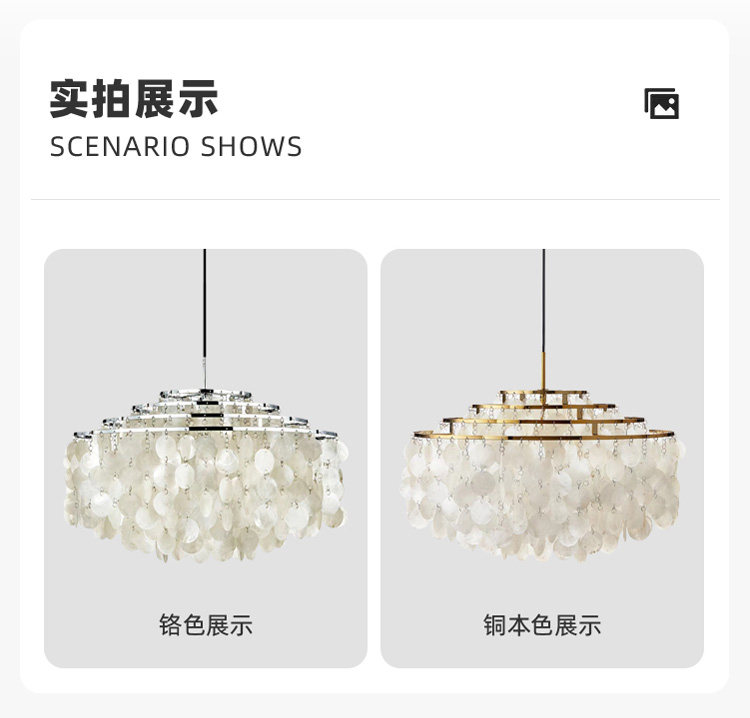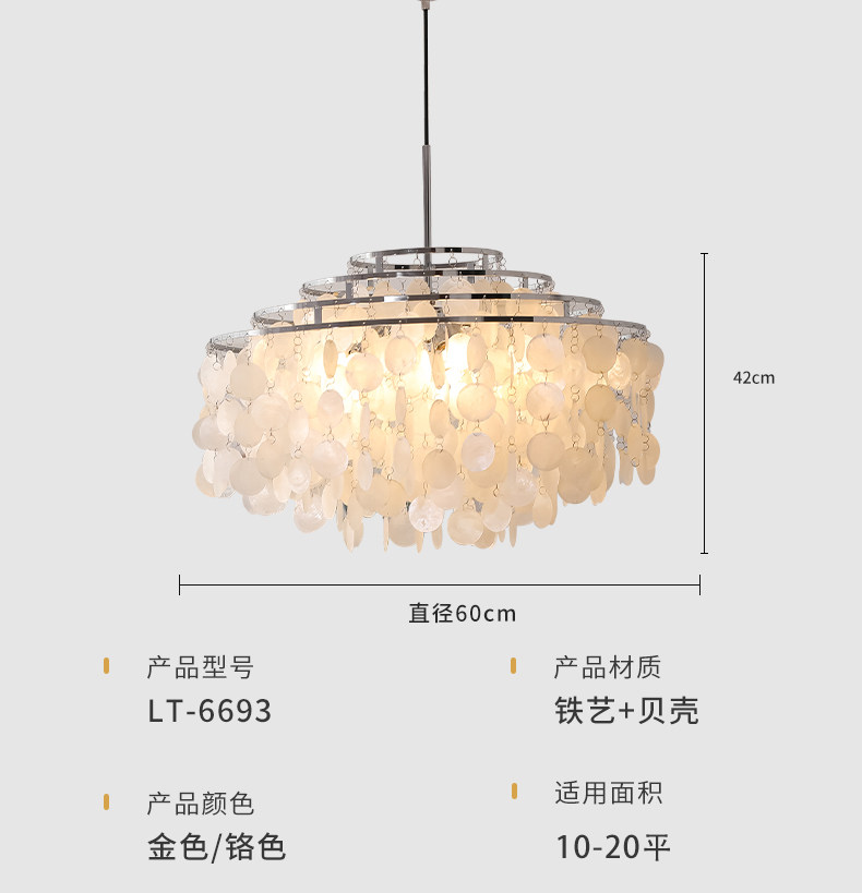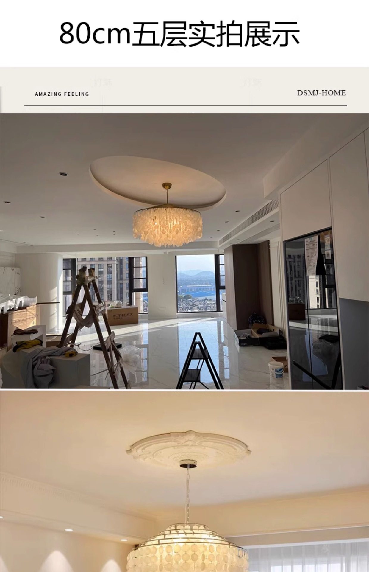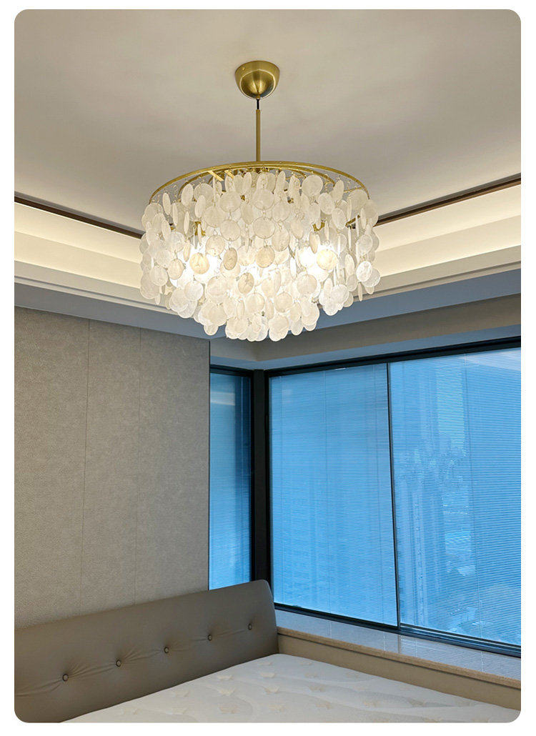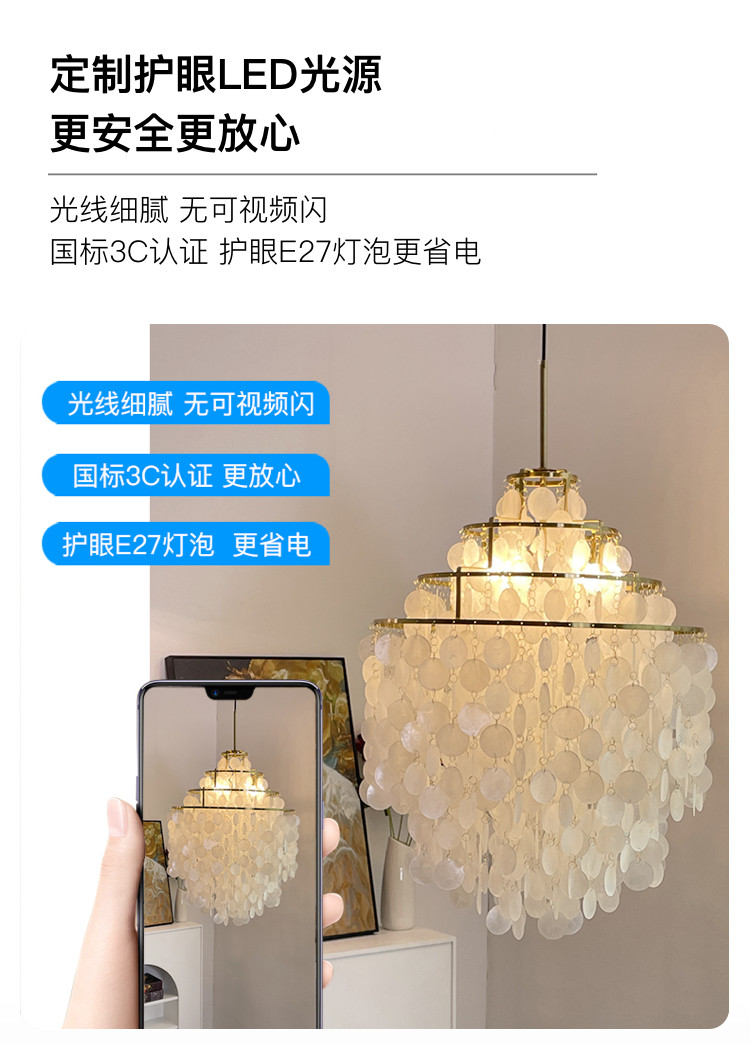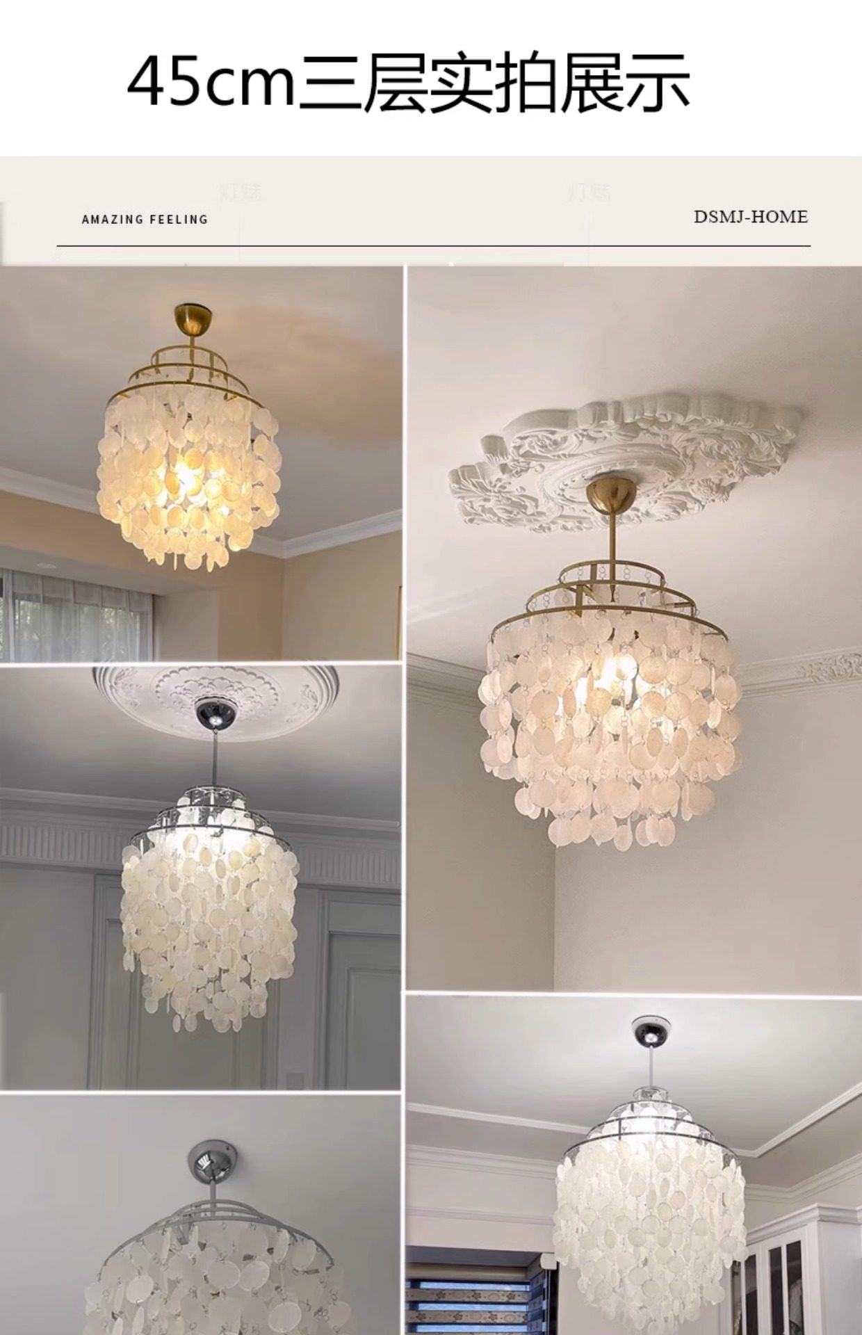 Italian Verpan French-Style Living Room Chandelier, Vintage Cream Shell Wind Chime, Designer Dining Room Master Bedroom Lighting Fixtures