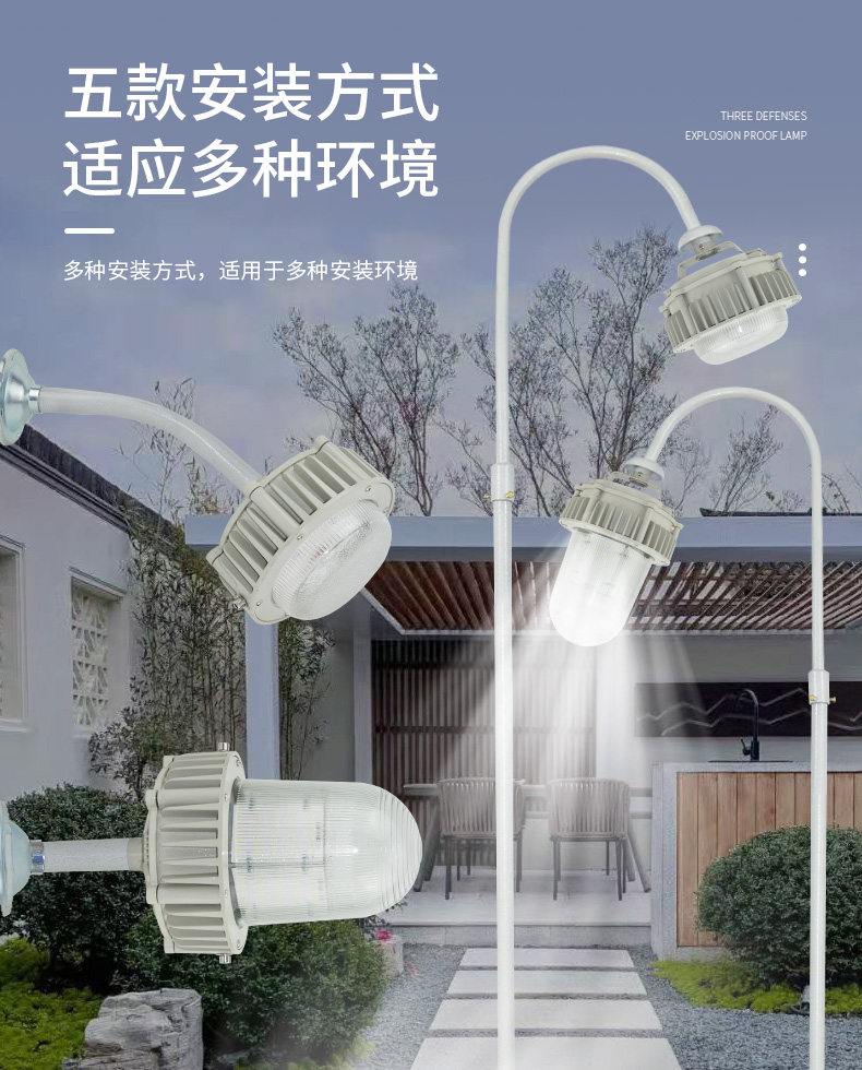 Led Three-Proof Light Industrial Lighting Outdoor Waterproof Dustproof Curved Pole Guardrail Type Explosion-Proof Factory Warehouse Platform Light