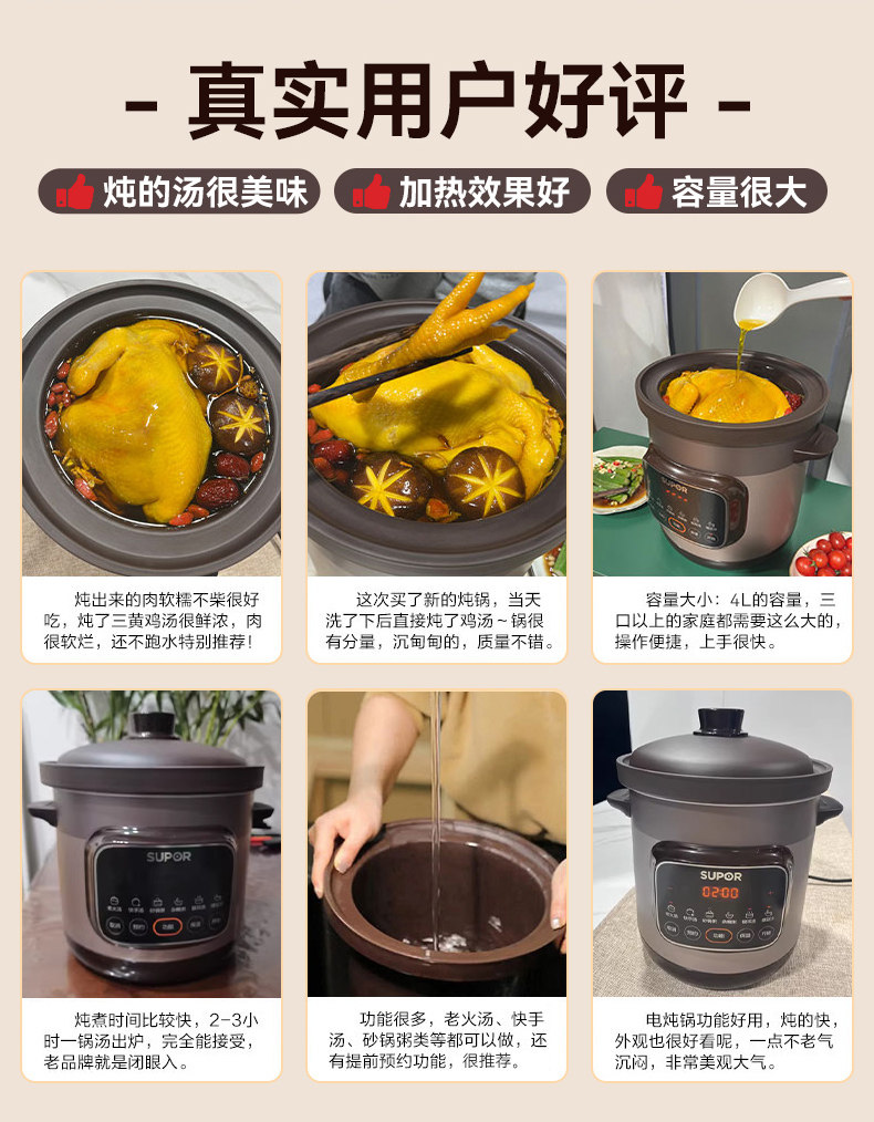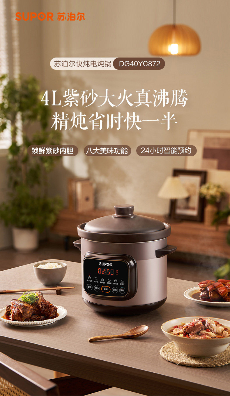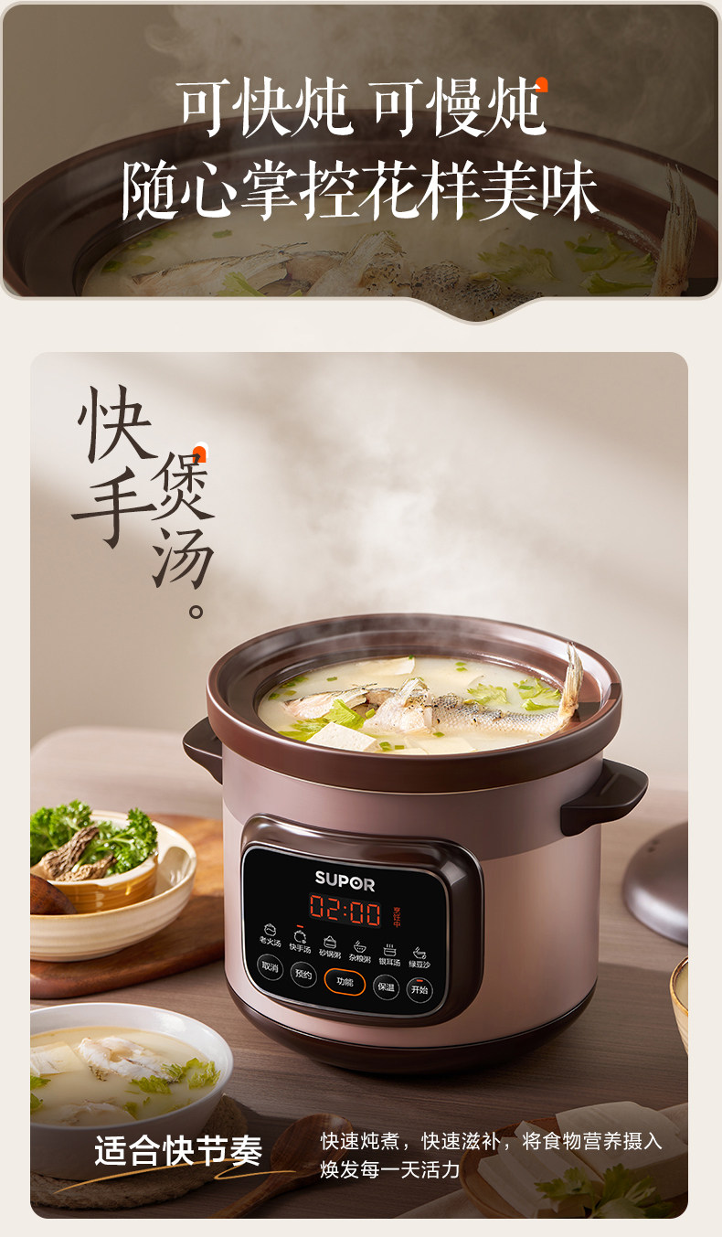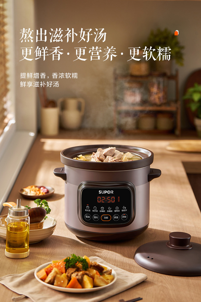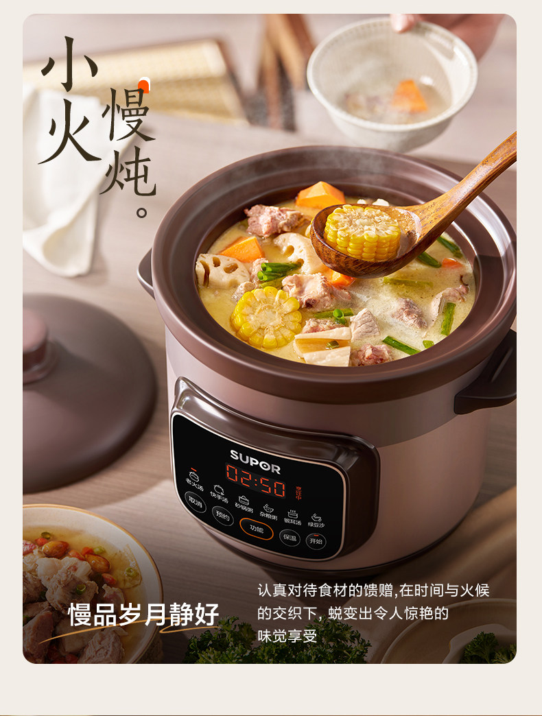 Supor Electric Slow Cooker for Home Use, Electric Clay Pot for Soup, Fully Automatic Purple Clay Porridge Cooker, Ceramic Stewing Pot, Genuine Product