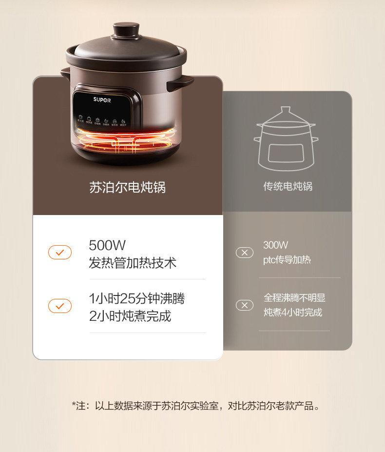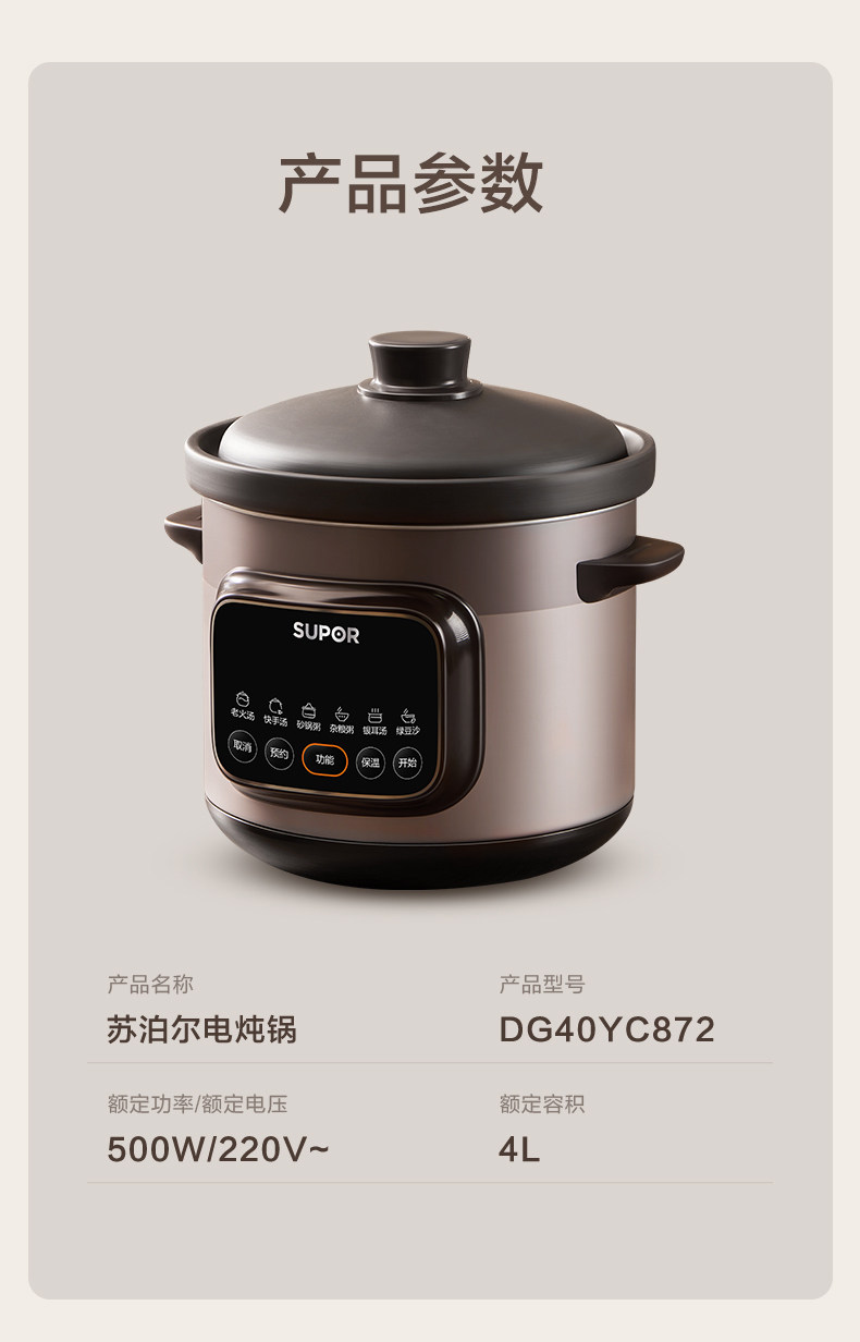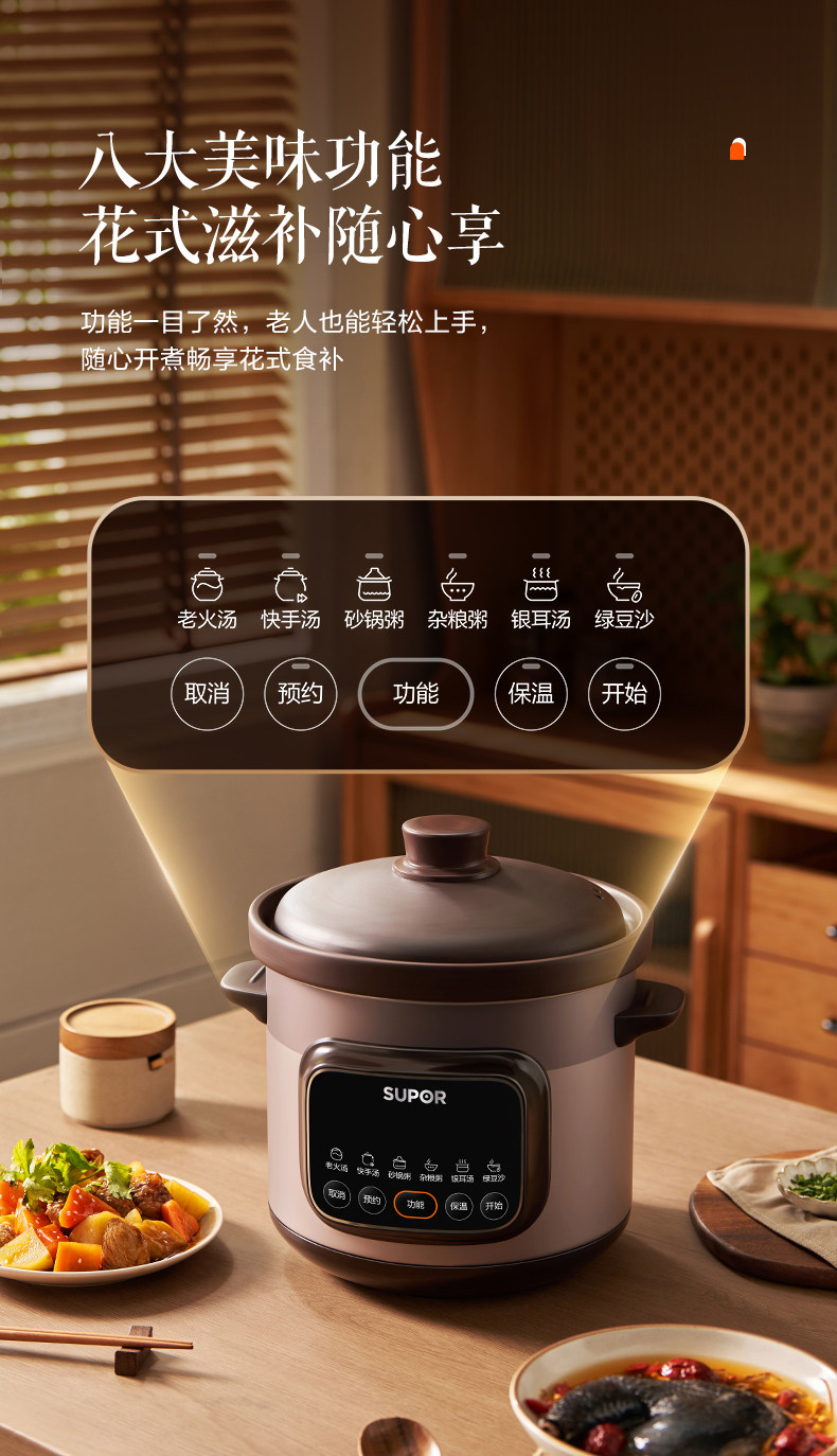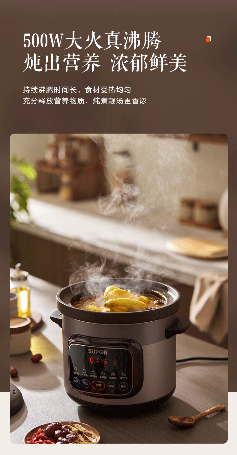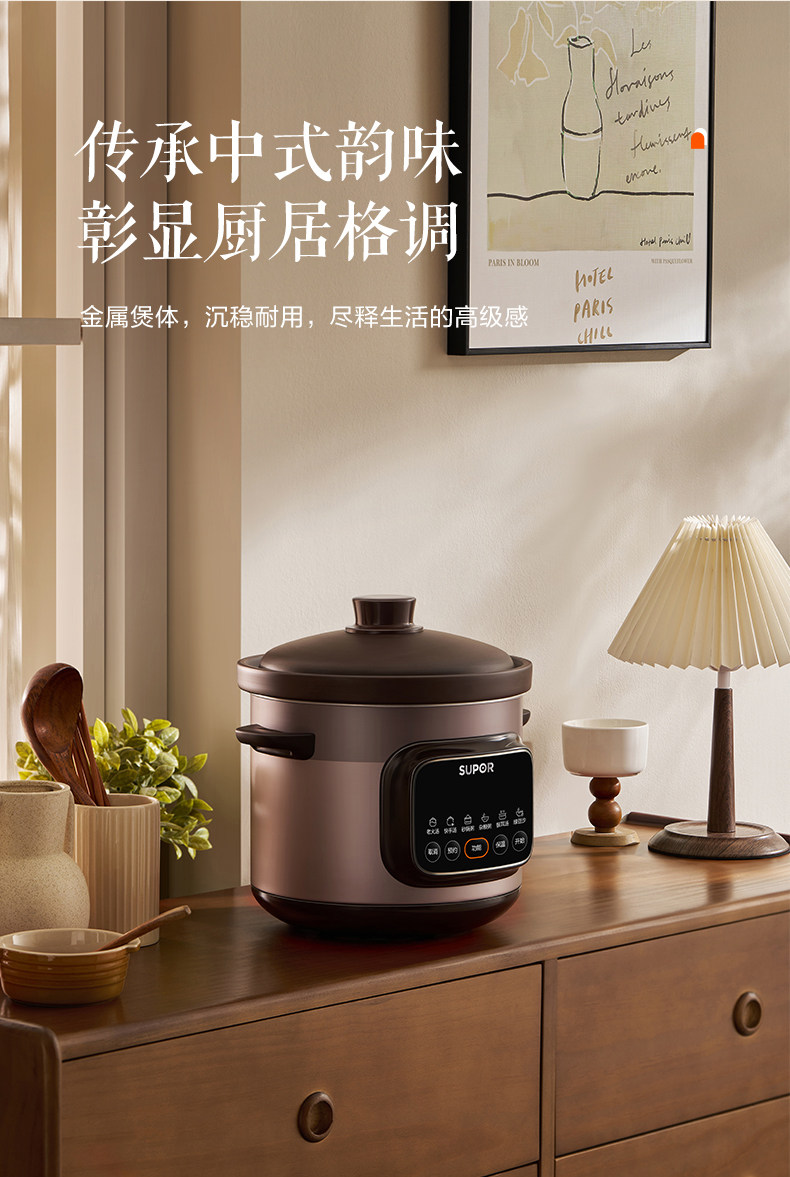 Supor Electric Slow Cooker for Home Use, Electric Clay Pot for Soup, Fully Automatic Purple Clay Porridge Cooker, Ceramic Stewing Pot, Genuine Product