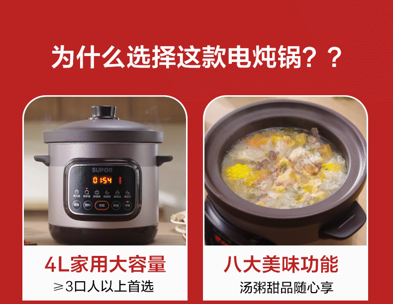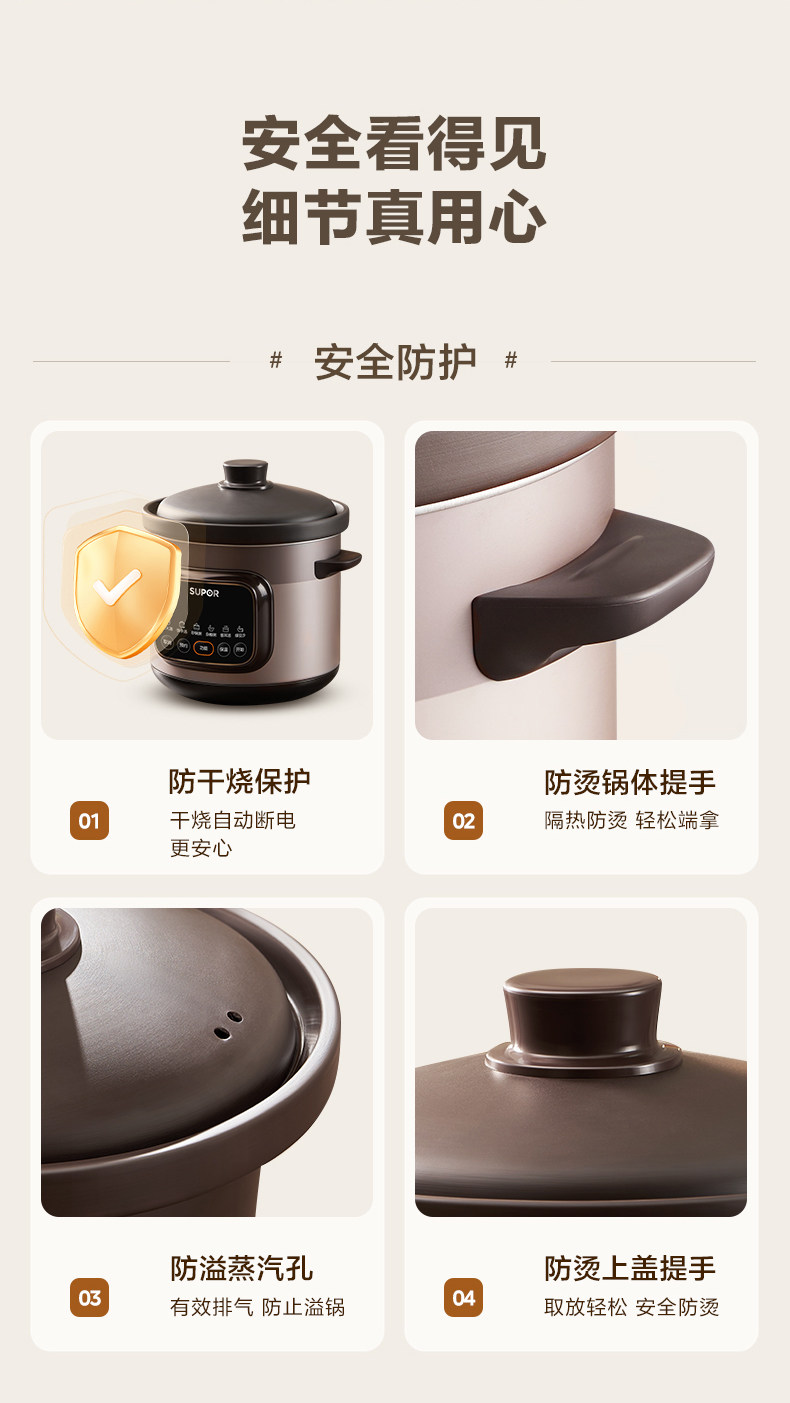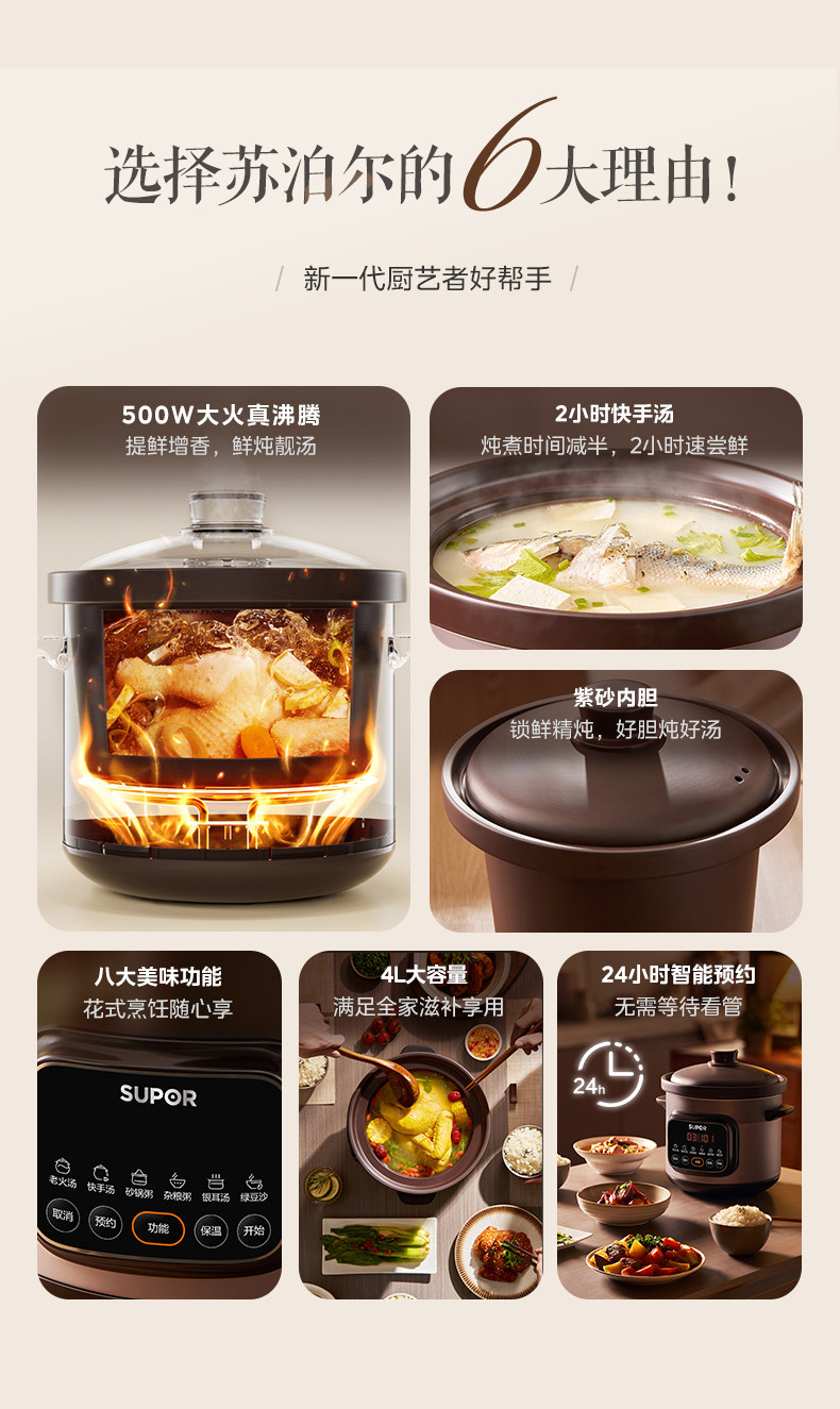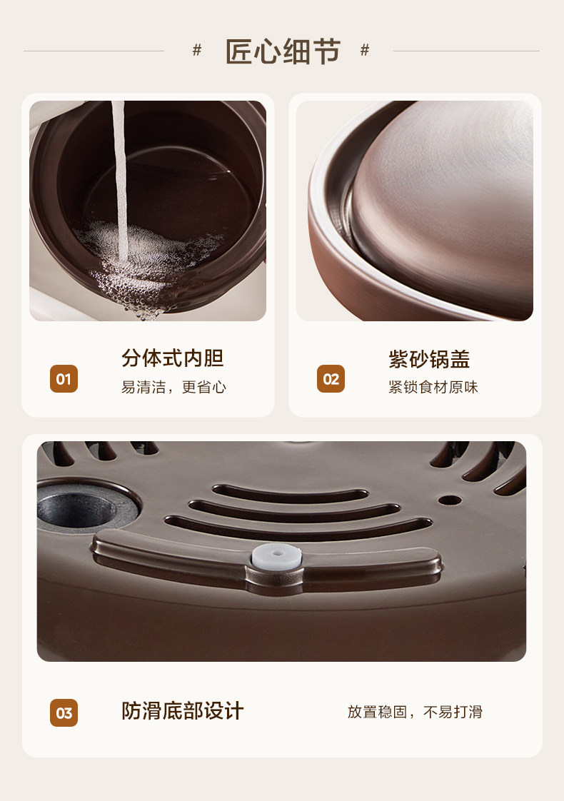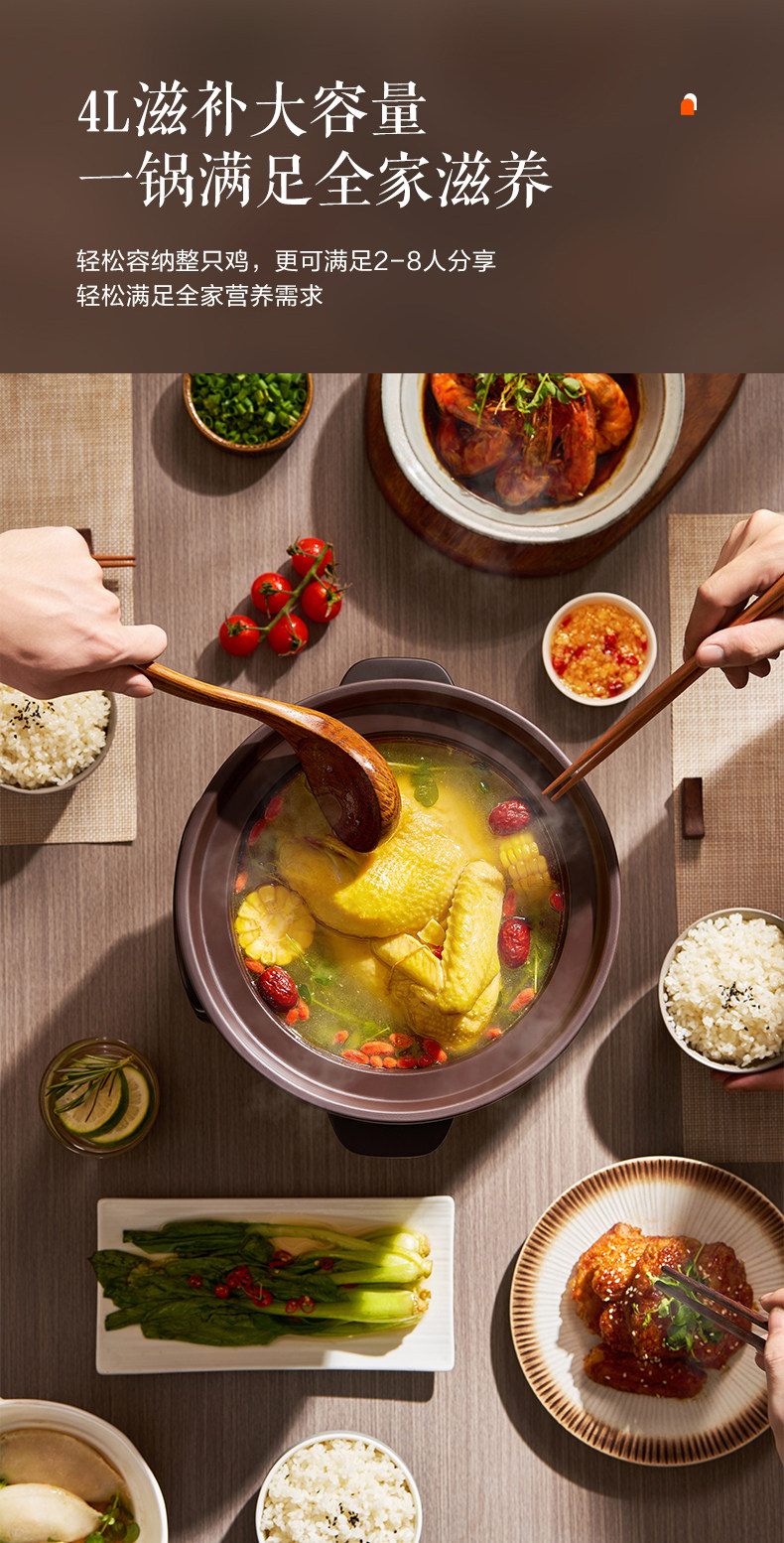 Supor Electric Slow Cooker for Home Use, Electric Clay Pot for Soup, Fully Automatic Purple Clay Porridge Cooker, Ceramic Stewing Pot, Genuine Product