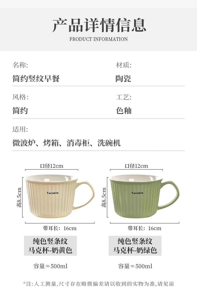Color Classification 500ml Vertical Pattern Breakfast Cup-Milk Yellow,500ml Vertical Pattern Breakfast Cup-Milk Green,2 Pack [Milk Yellow + Milk Green],Creamy Yellow + Imitation Wood Grain Spoon,Milk Green + Imitation Wood Grain Spoon,Creamy Yellow + Sky Blue Spoon + Silicone Lid,Milk Green + Sky Blue Spoon + Silicone Lid,560ml Breakfast Cup,560ml Breakfast Cup + Imitation Wooden Handle Spoon,560ml Breakfast Cup + Sky Blue Spoon + Silicone Lid,Vertical Pattern Mug-Cream Yellow,Vertical Pattern Mug-Milk Green