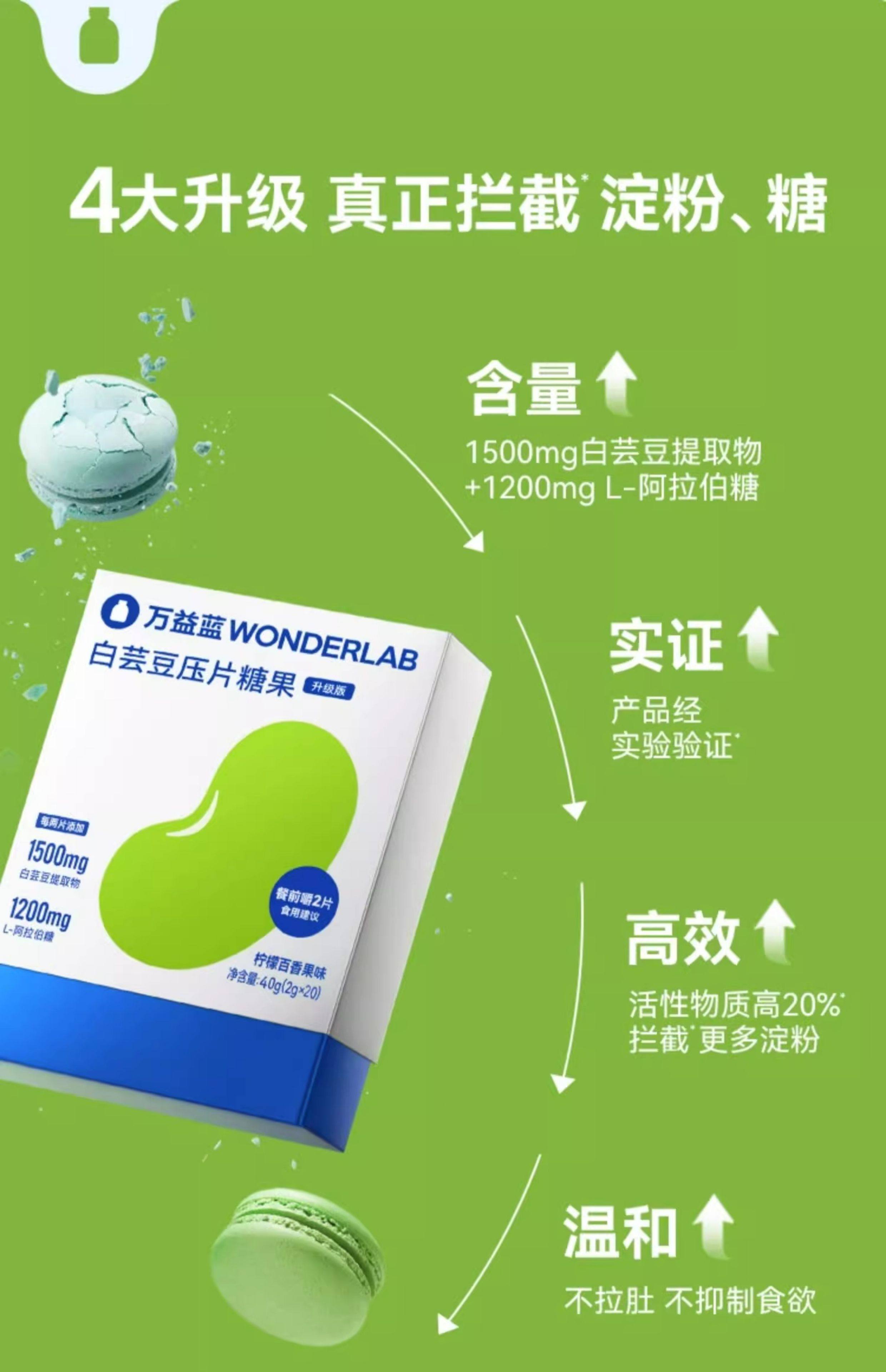 Wonderlab White Kidney Bean Chewable Tablets Block Carbohydrates, a Savior for High-Carb Meals, Non-Enzymatic Blocker