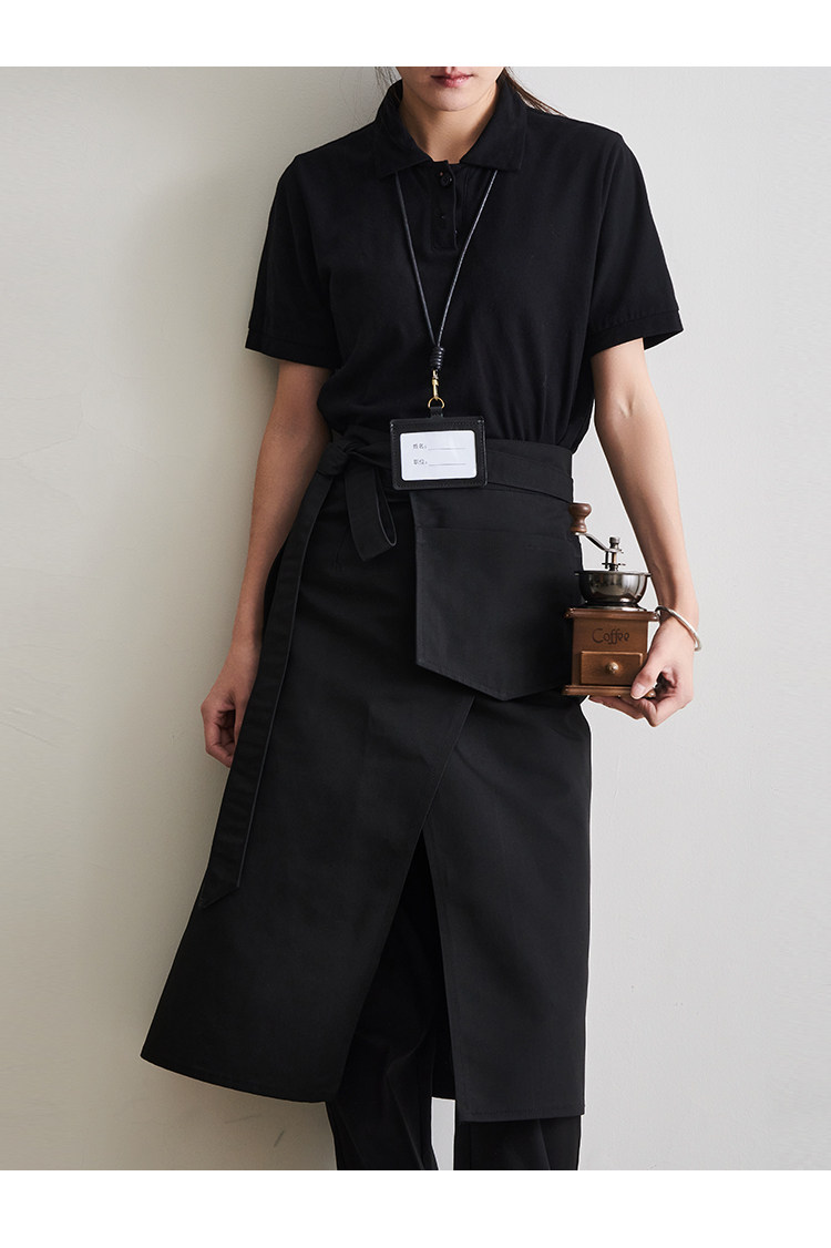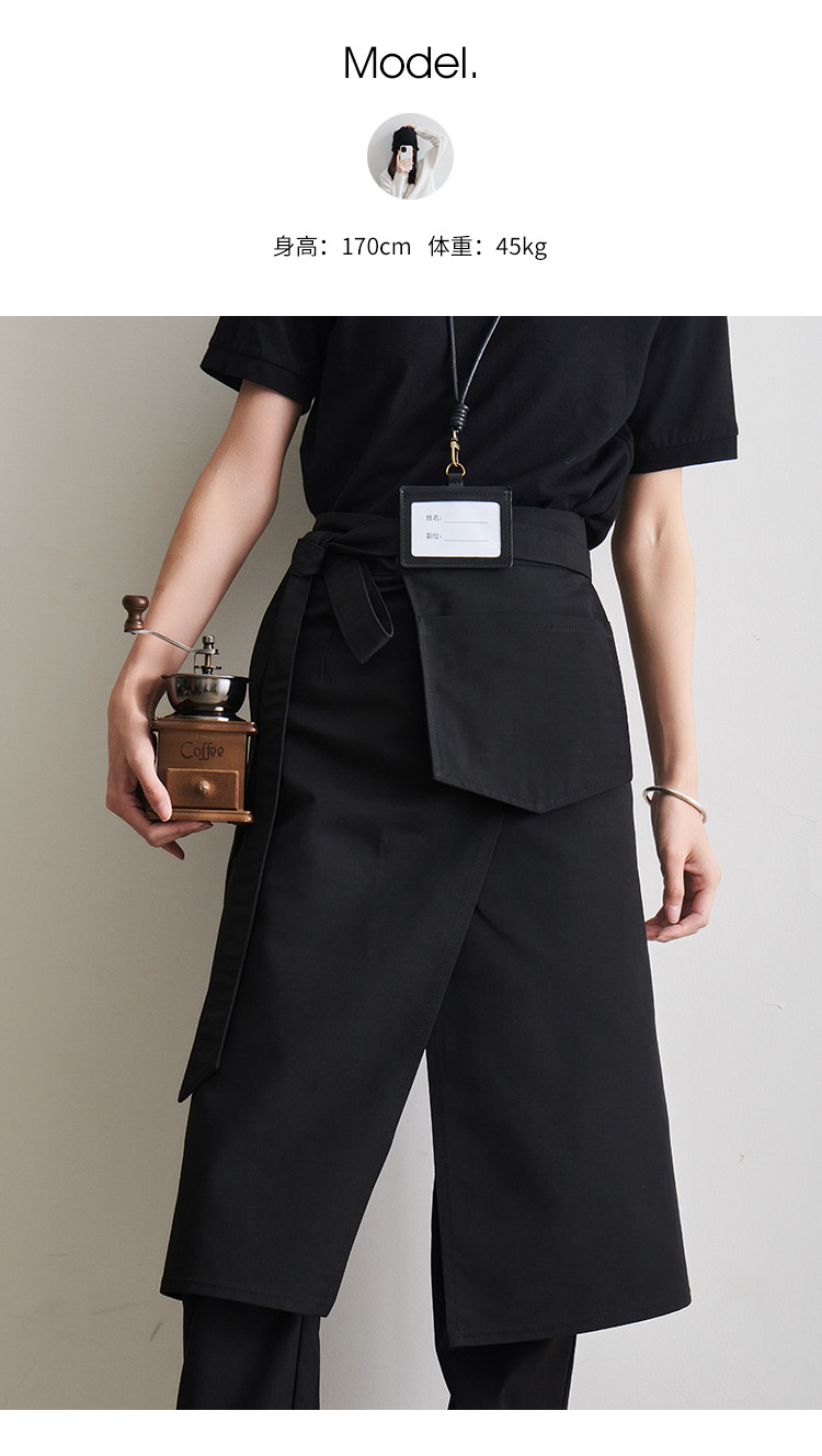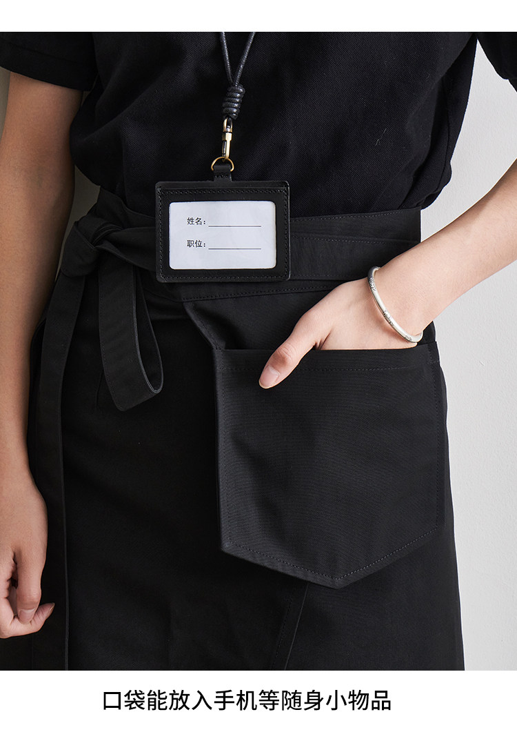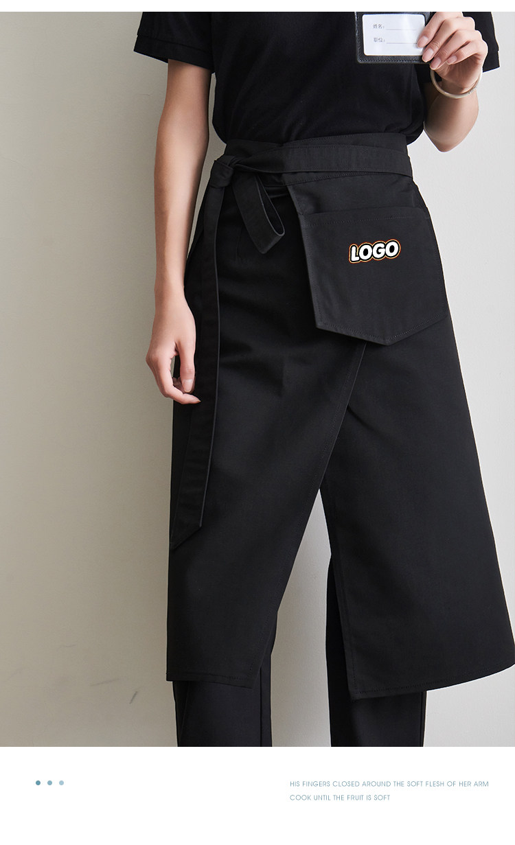 Fashionable Canvas Water-Repellent Half Apron with Custom Logo for Chinese Restaurant, Barbecue and Hot Pot Restaurant, Full-Service Staff Uniform