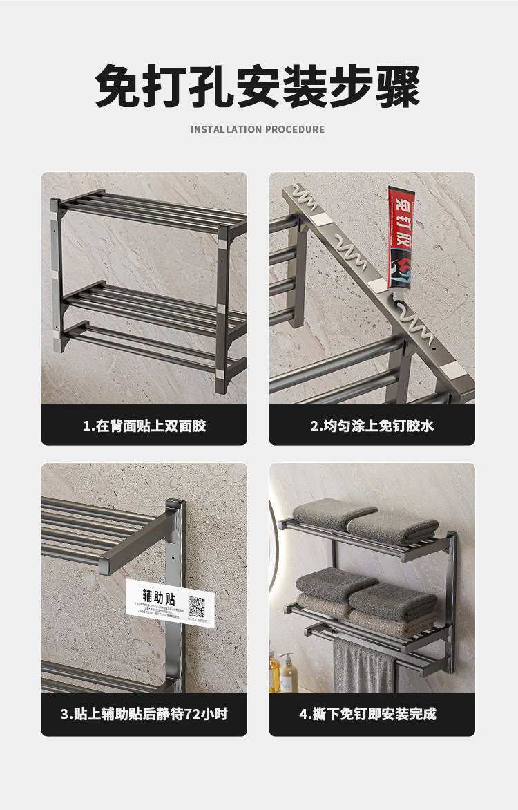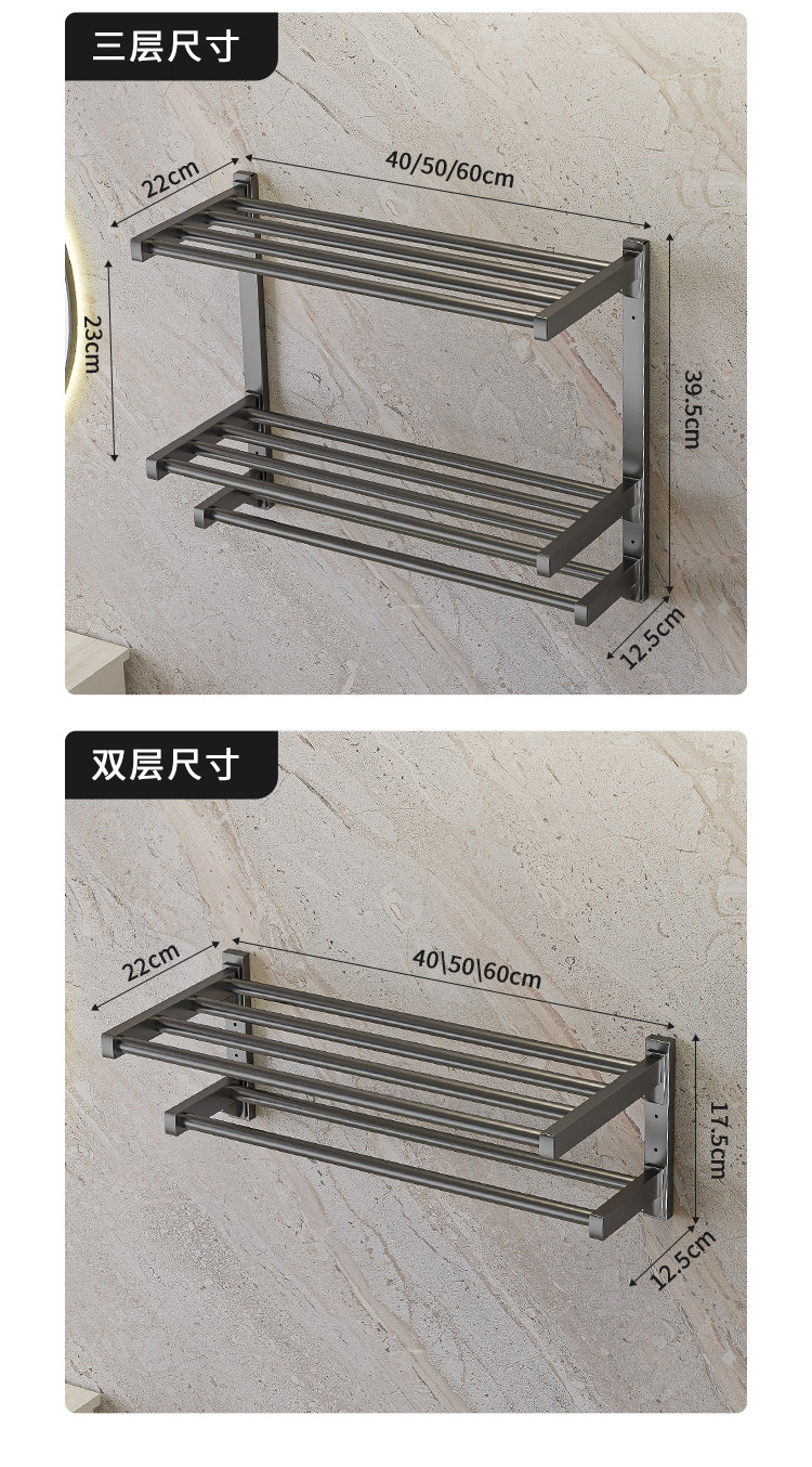 Color Classification Gun Gray = Double Layer 40cm Towel Rack,Gun Gray = Double Layer 50cm Towel Rack,Gun Gray = Double Layer 60cm Towel Rack,Gun Gray = Three-Layer 40cm Towel Rack,Gun Gray = Three-Layer 50cm Towel Rack,Gun Gray = Three-Layer 60cm Towel Rack