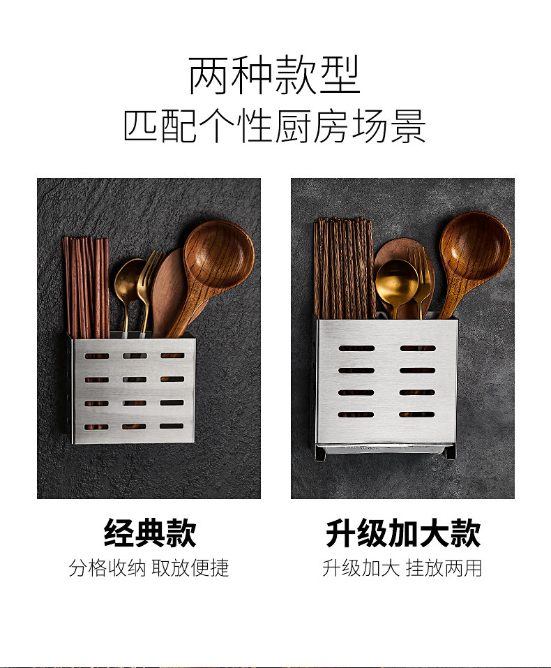 Color Classification Brushed Finish (Hang & Display) - Upgraded Oversized Version,Black (Hanging and Hanging) Upgraded to Larger Size,Brushed (Wall Hanging) Classic Standard Style,Black (Wall Hanging) Classic Standard Style,Black Chopstick Basket Knife Holder,Brushed Chopstick Basket & Knife Holder