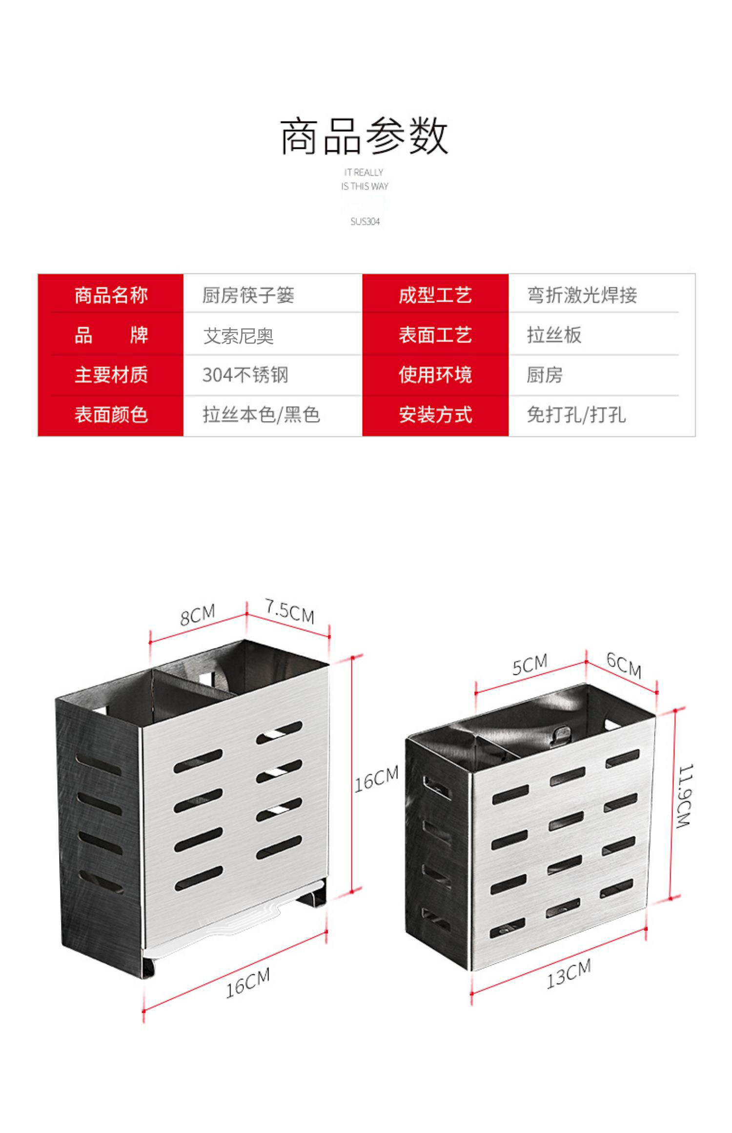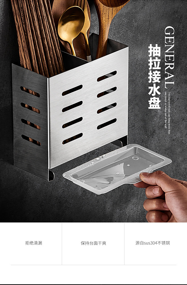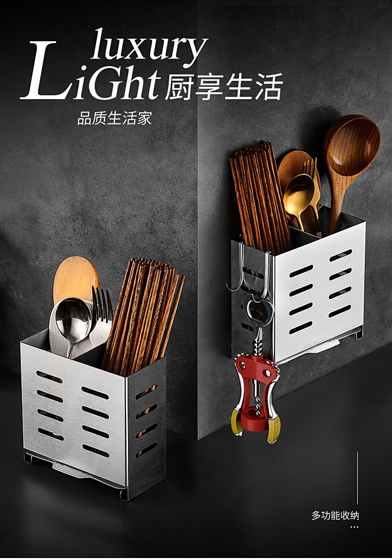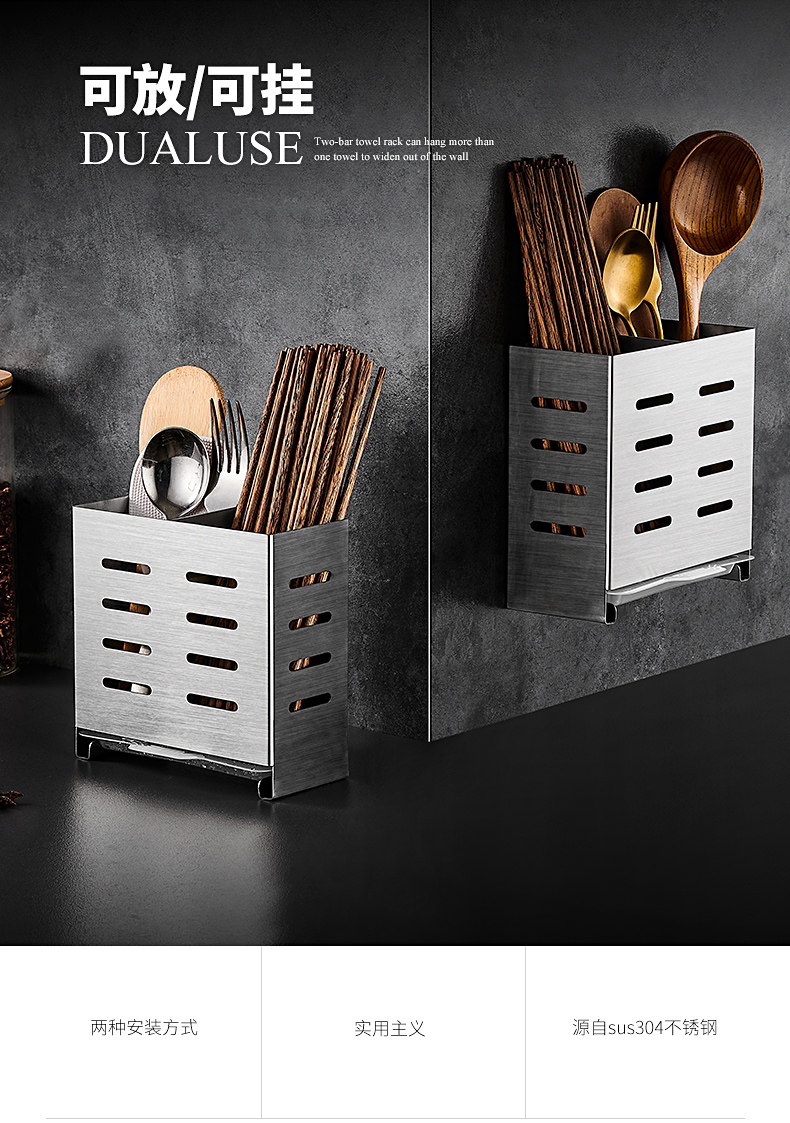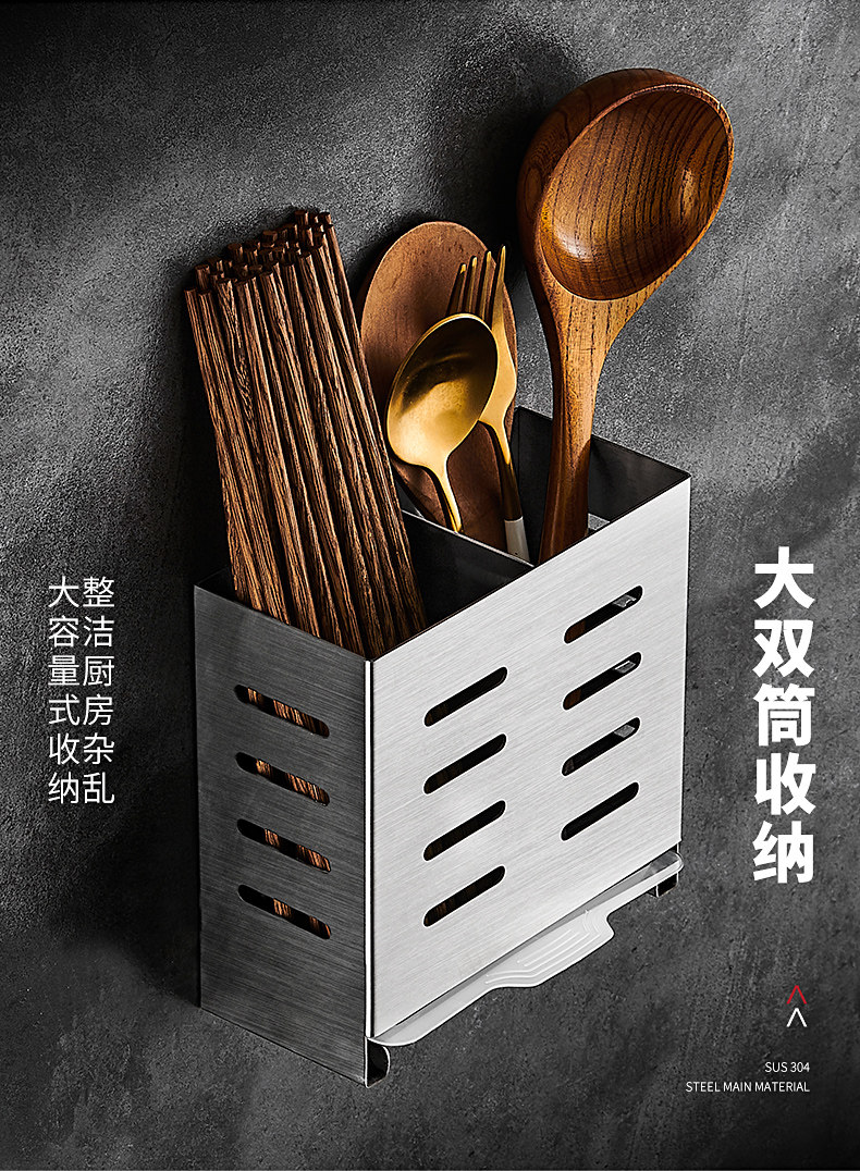 Italian Aisino 304 Stainless Steel Chopstick Holder Wall-Mounted Household Chopstick Tube Kitchen Draining Spoon Holder
