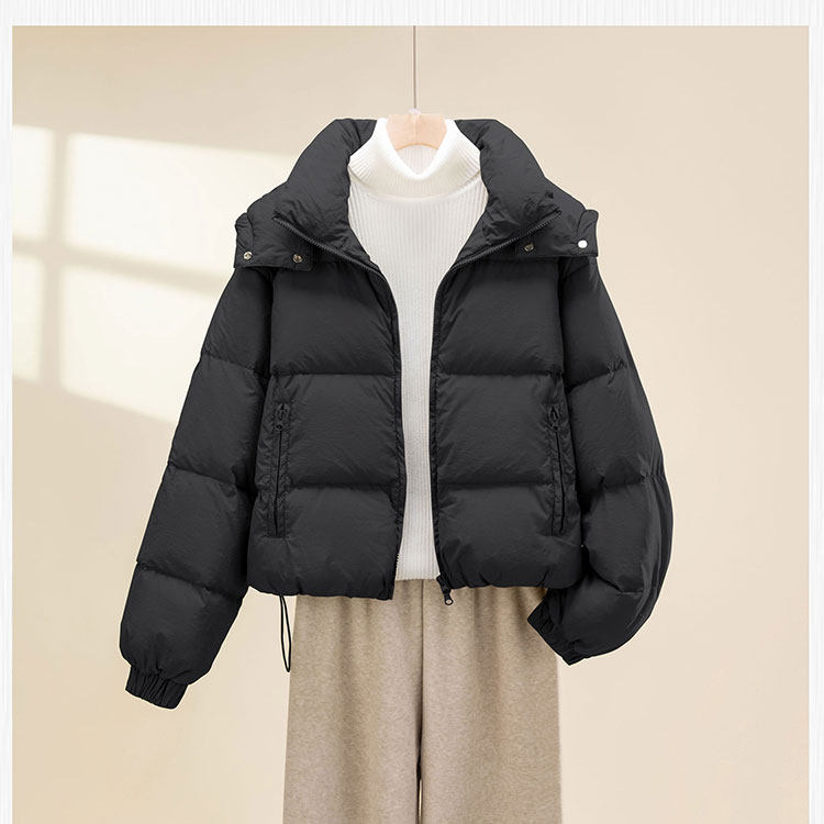 2025 winter white hooded cotton jacket women's cotton padded thick loose warm short short bread jacket for little people