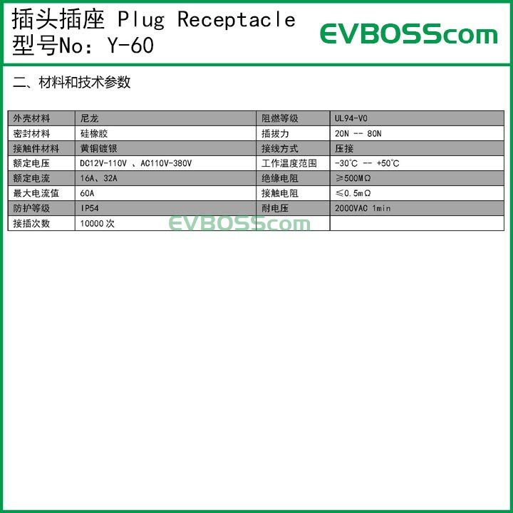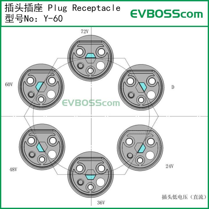 Y-60 Plug and Socket Yeda/48V72V220V Four-Wheel Electric Vehicle Battery Car Charging Head
