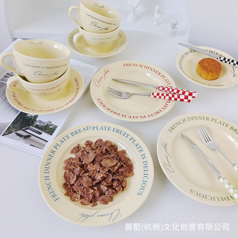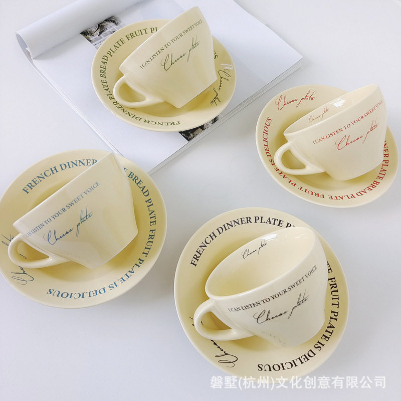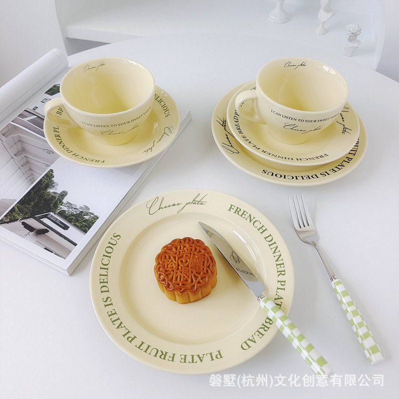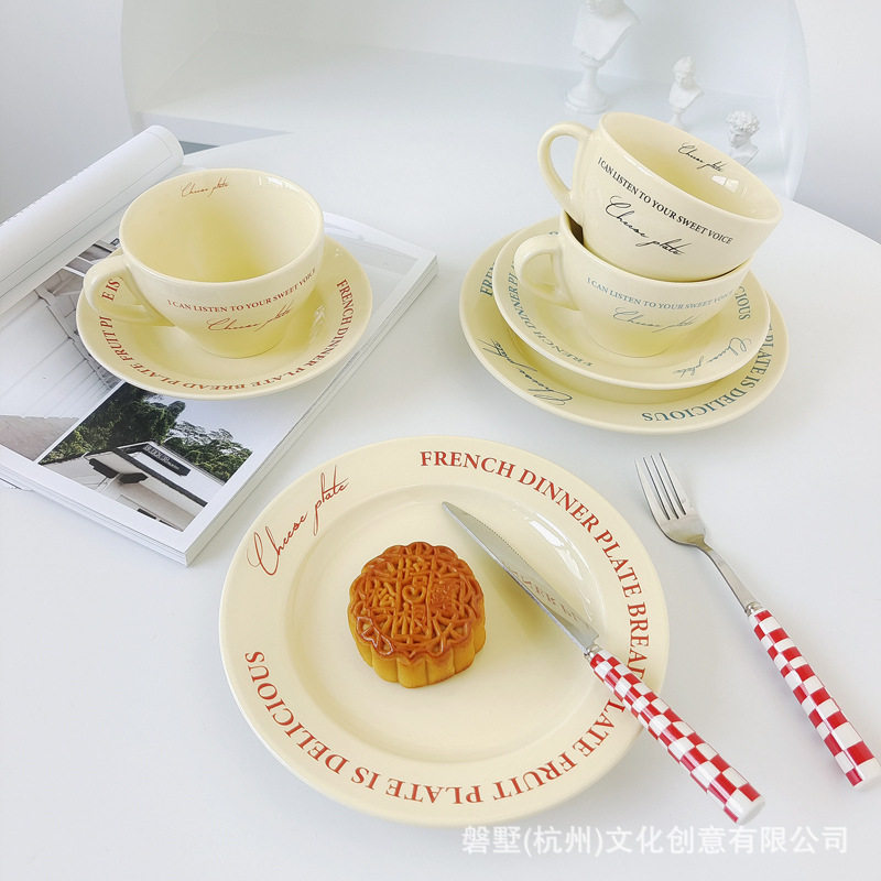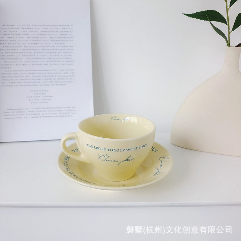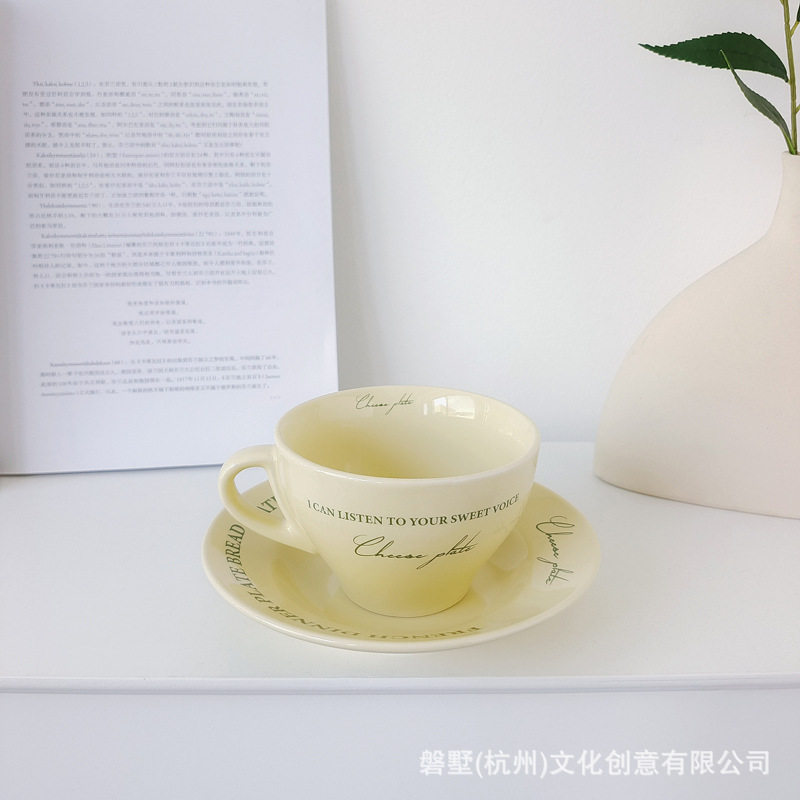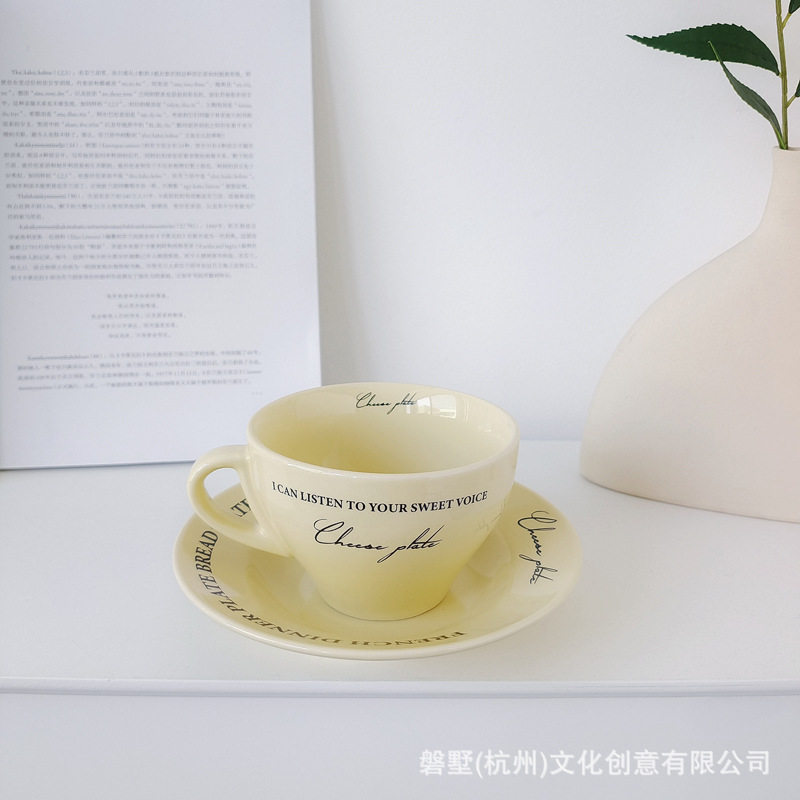 Korean ins Retro-Style French Cream Yellow Ceramic High-Quality Coffee Cup with Saucer Set