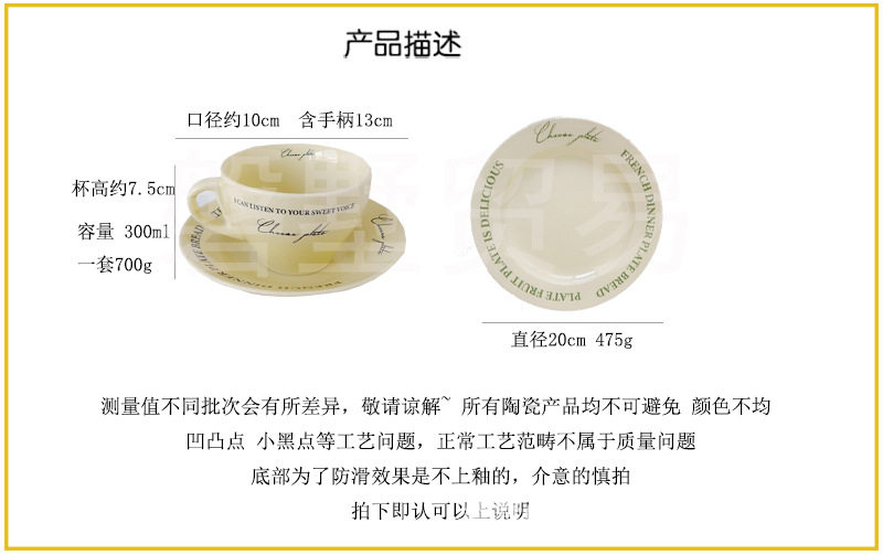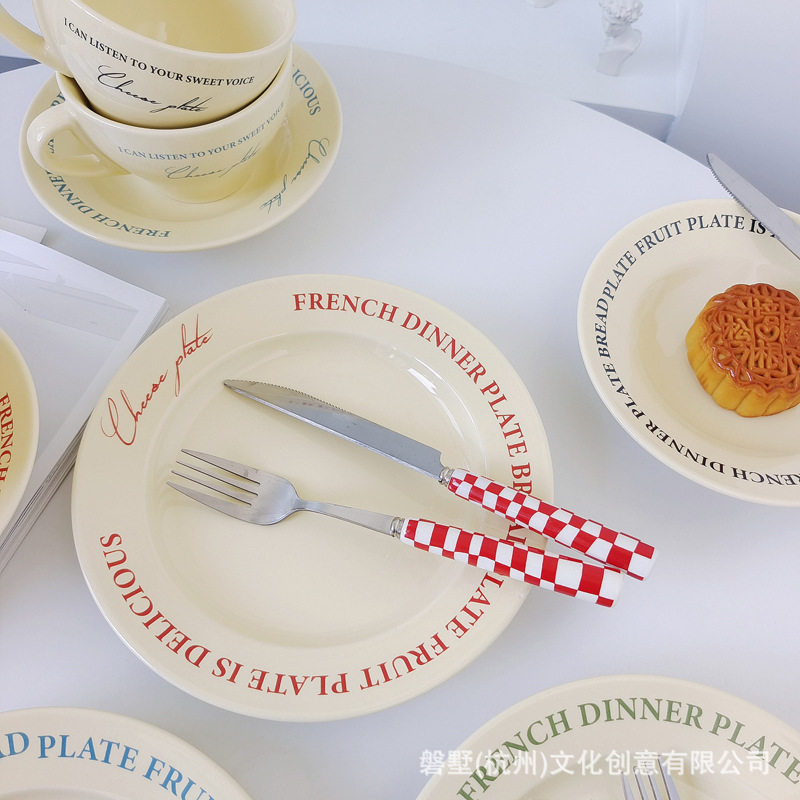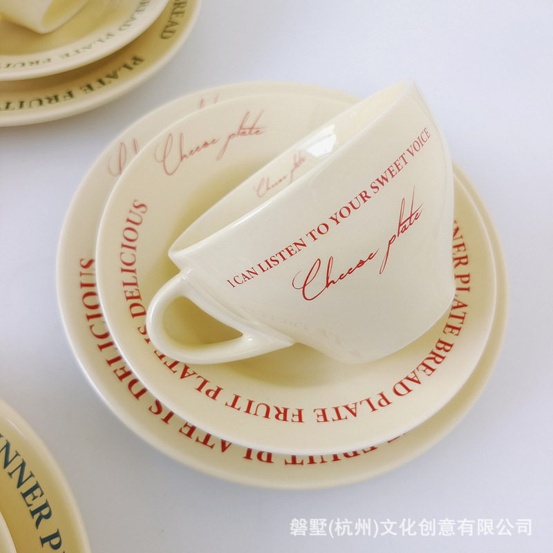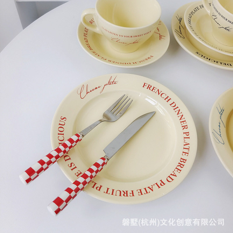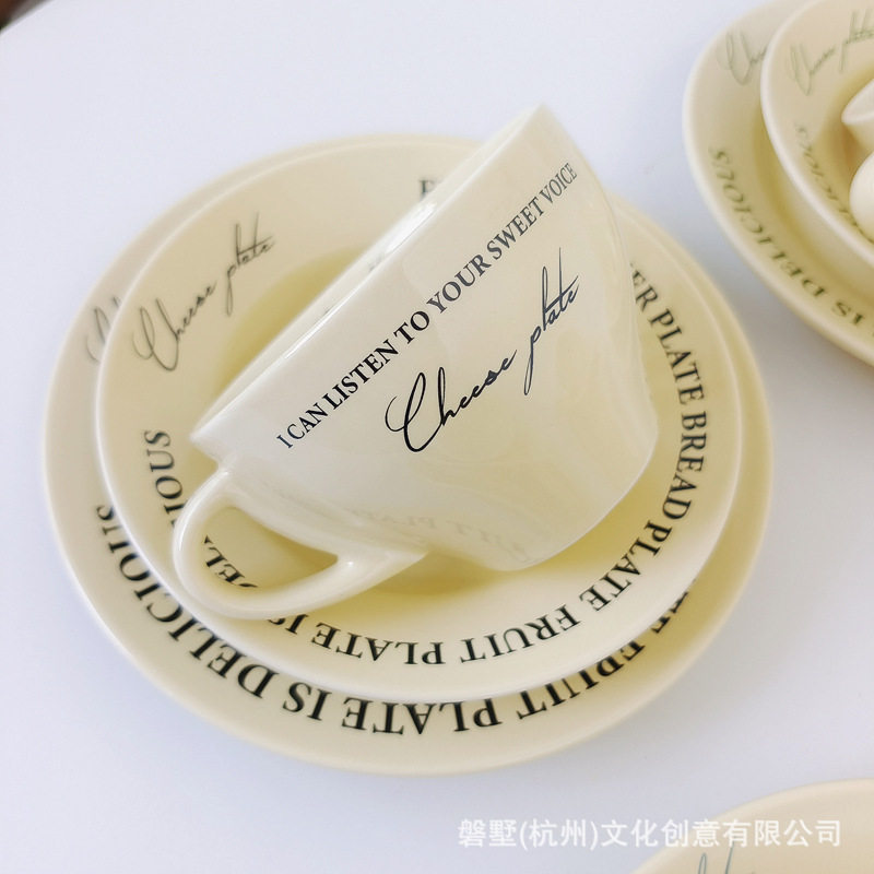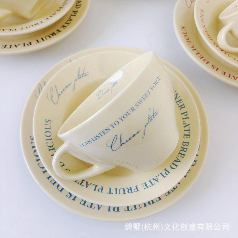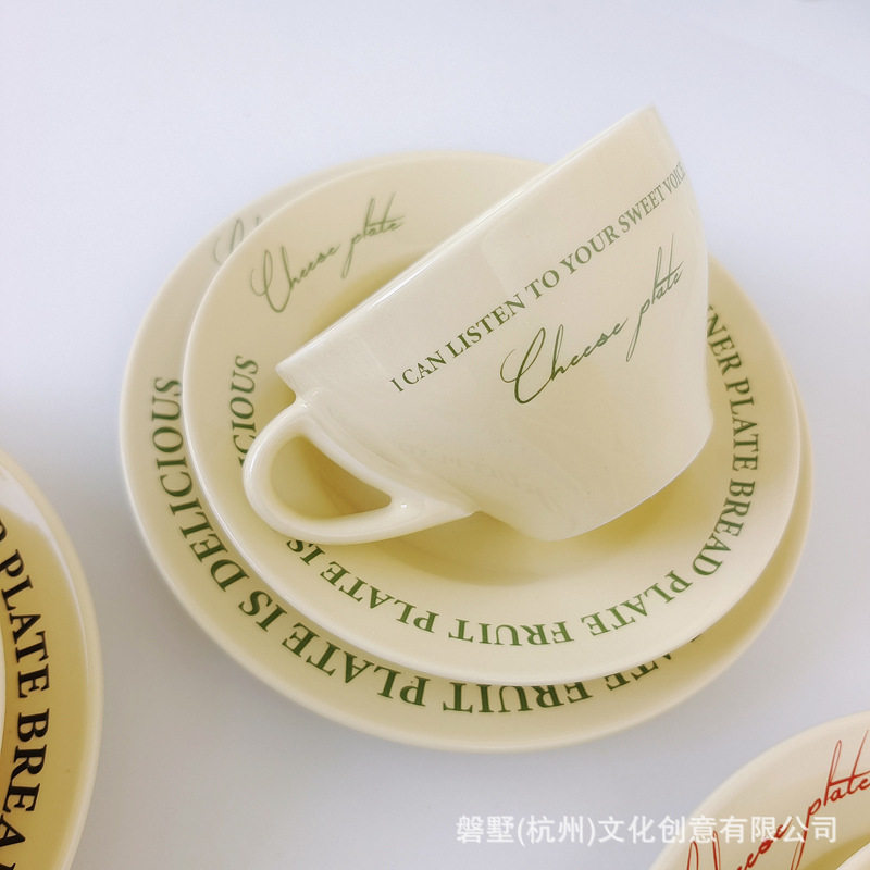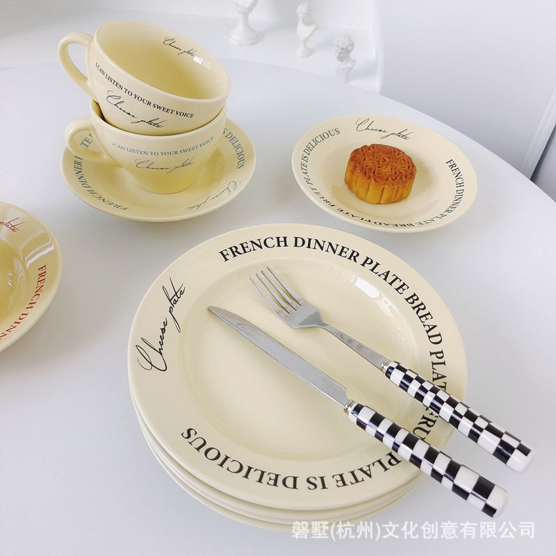 Korean ins Retro-Style French Cream Yellow Ceramic High-Quality Coffee Cup with Saucer Set