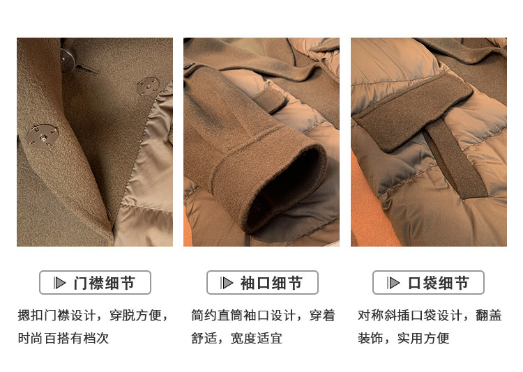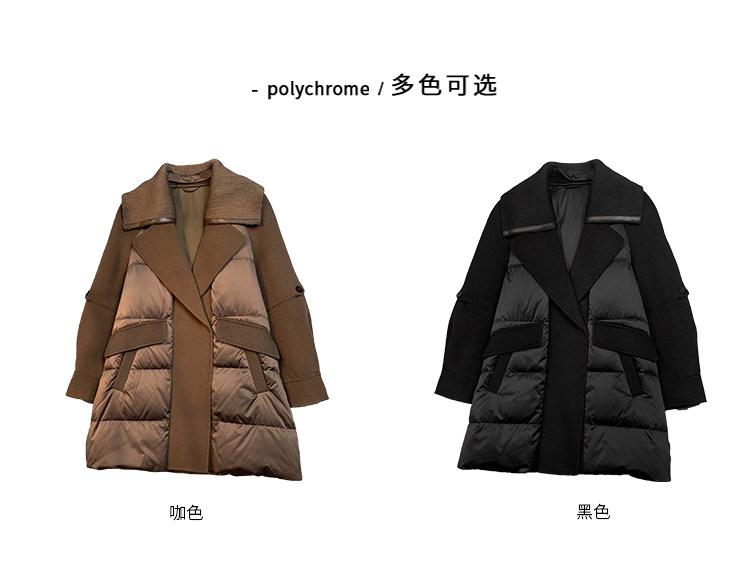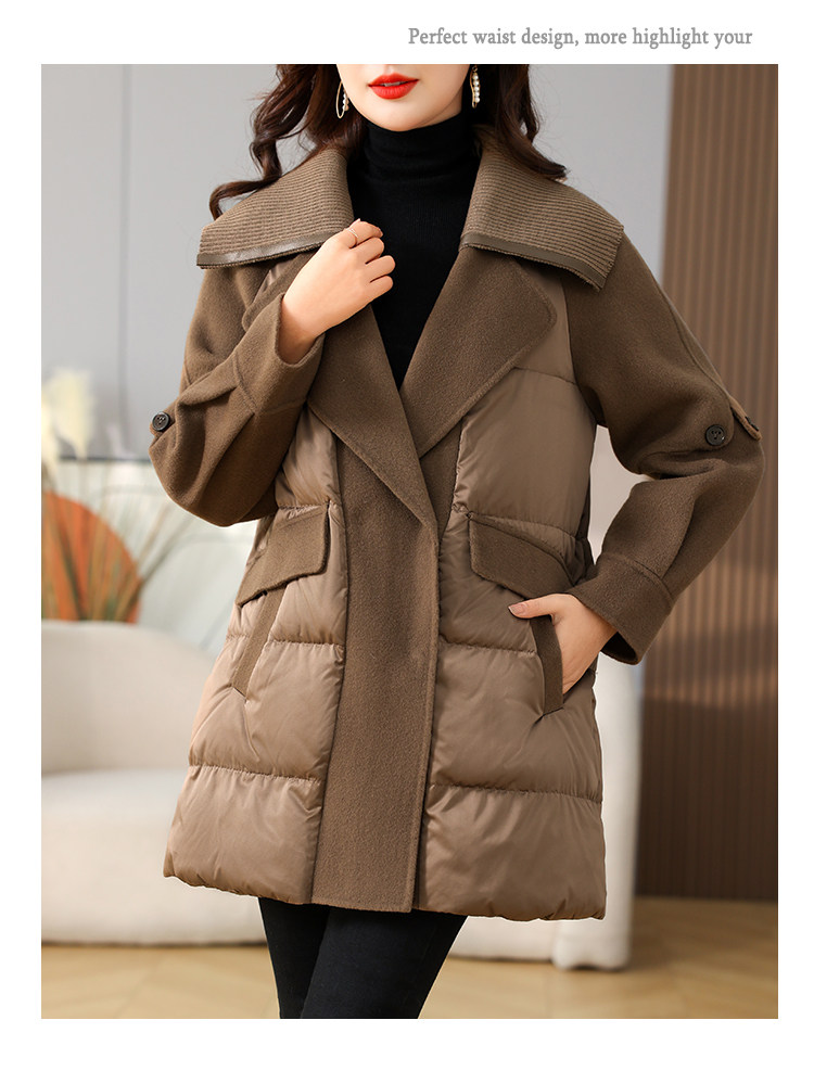 Suit Collar Design, Niche Woolen Fabric Splicing down Jacket for Women, 2023 Winter New Fashion Stylish Coat