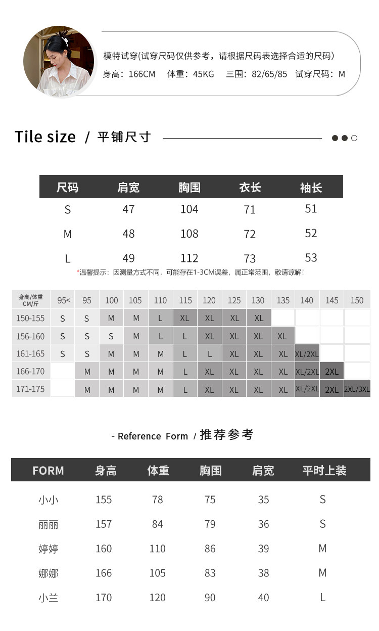 China (cm) 160-165/84-86 165-170 / 88-90 167-172 / 92-96 168-173 / 98-102 170-176 / 106-110
